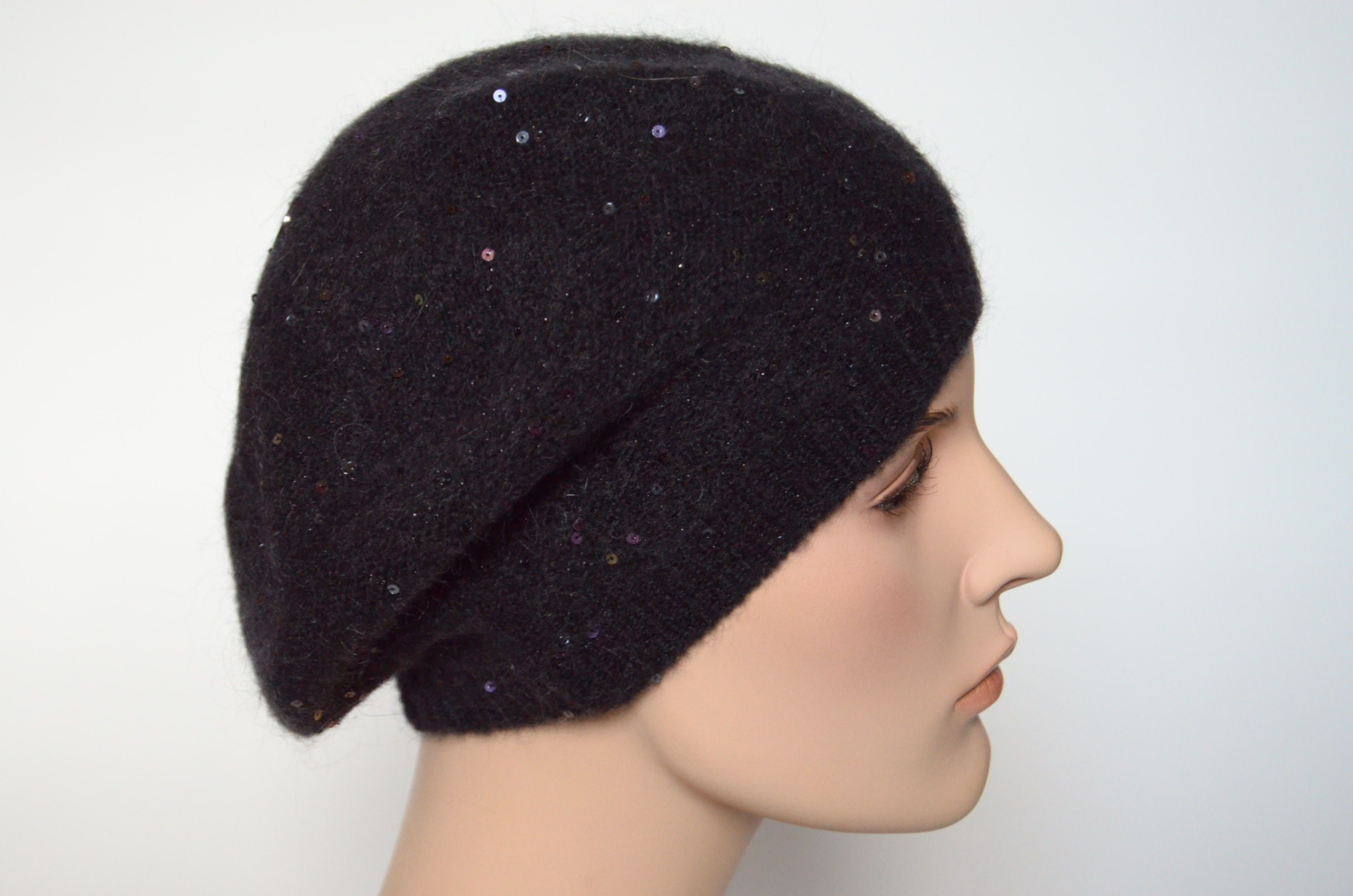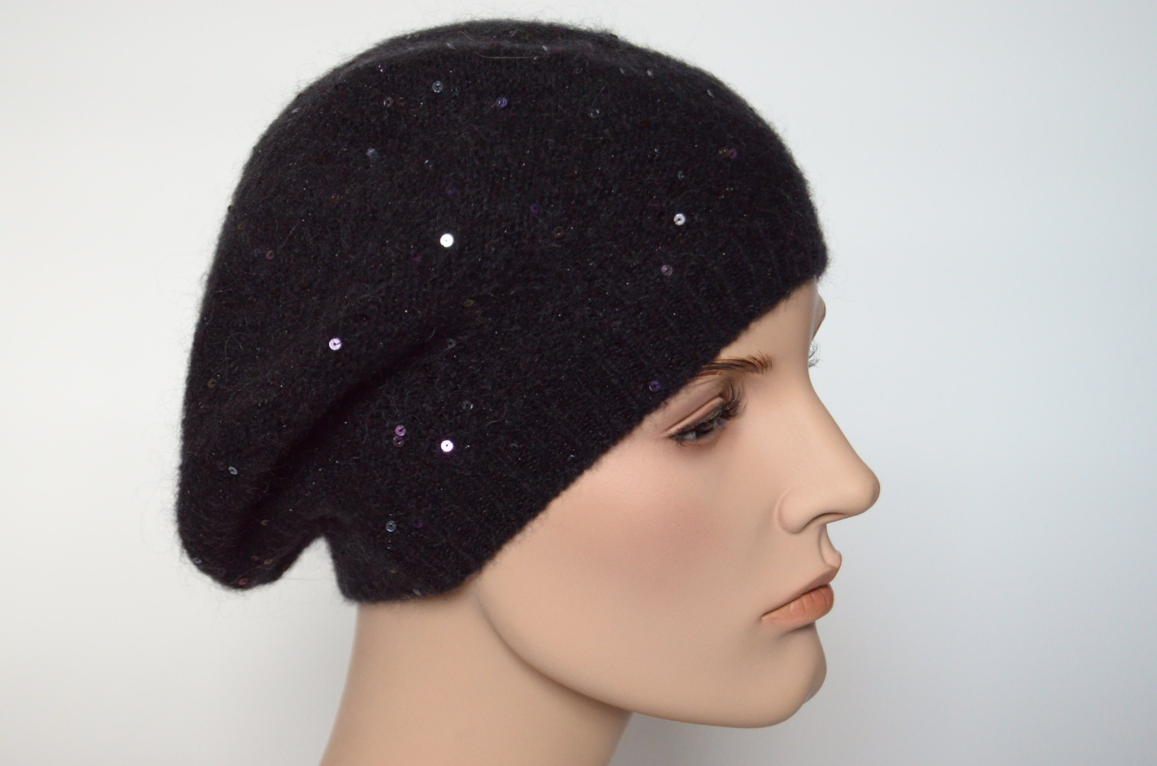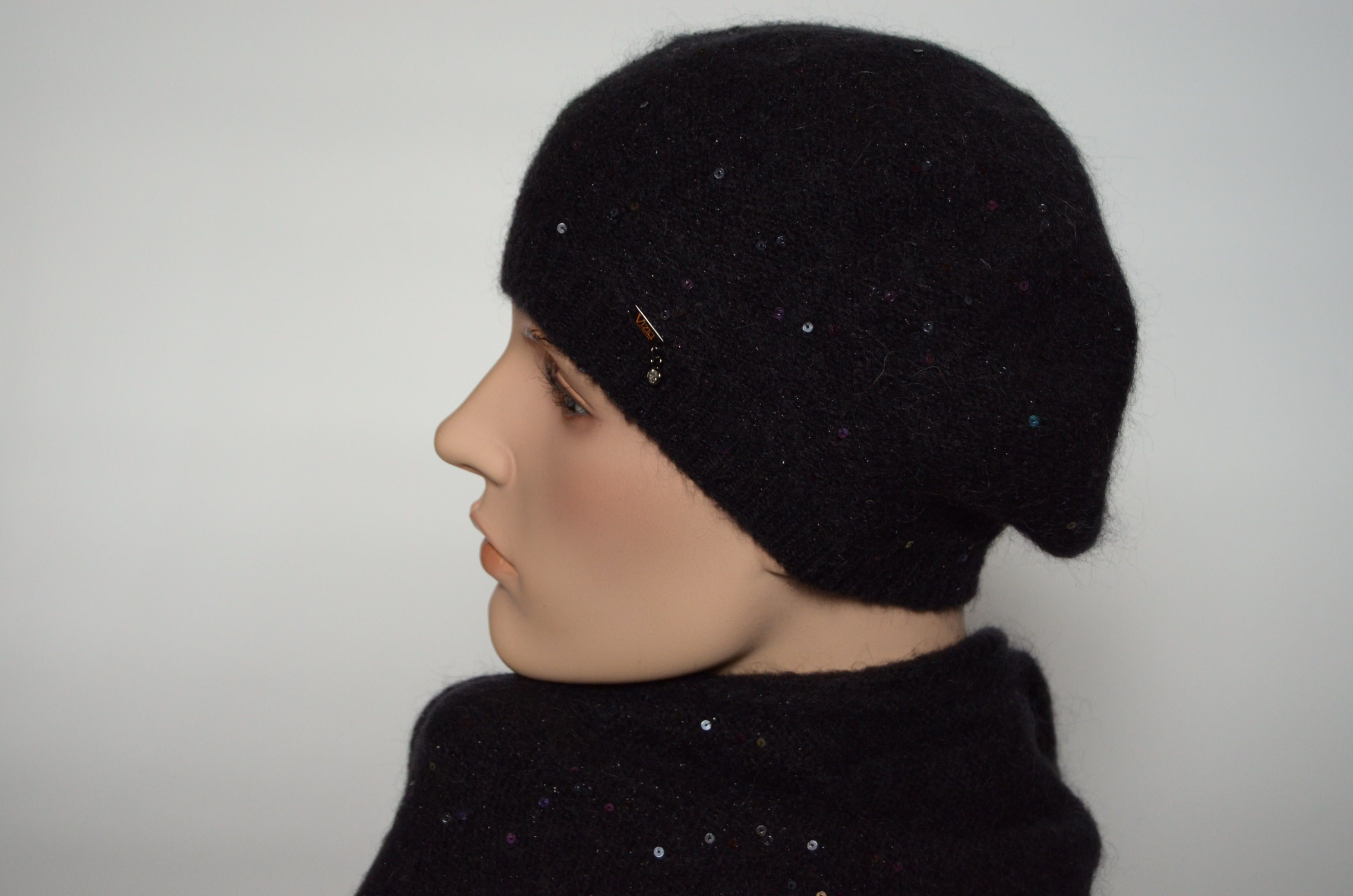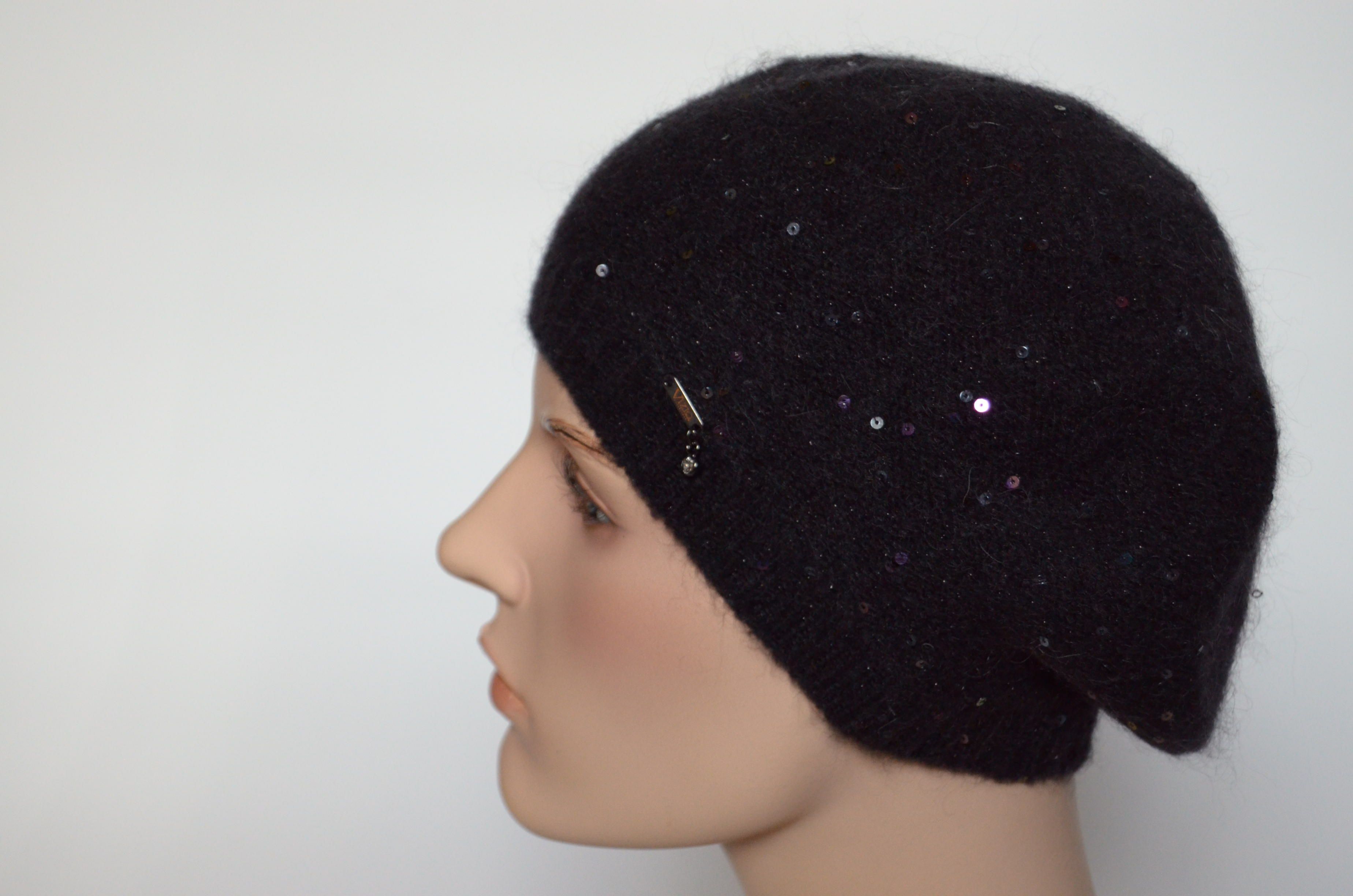 Купить женский одинарный вязаный берет черного цвета с пайетками Vizio Италия вы можете в интернет магазине итальянских шапок и беретов для женщин с доставкой по Москве и России