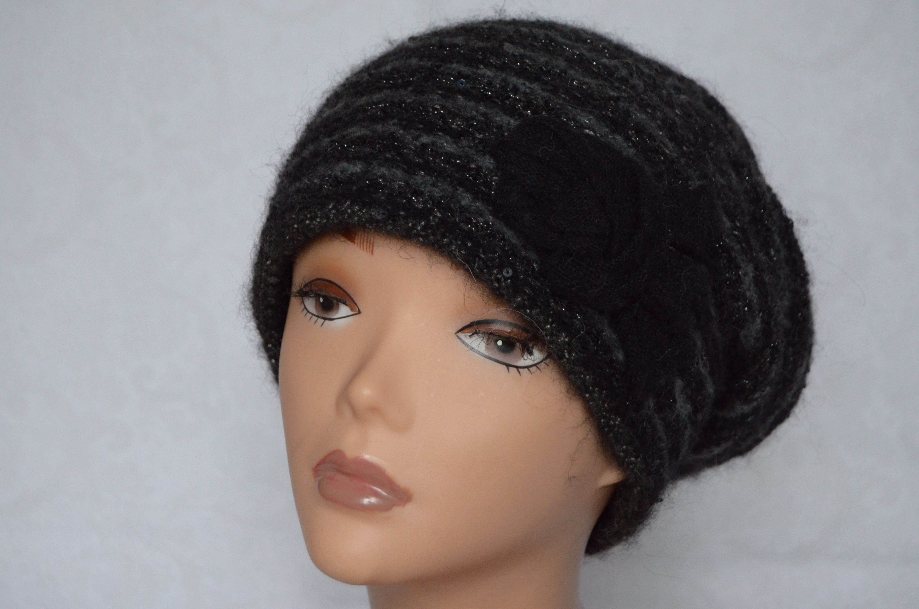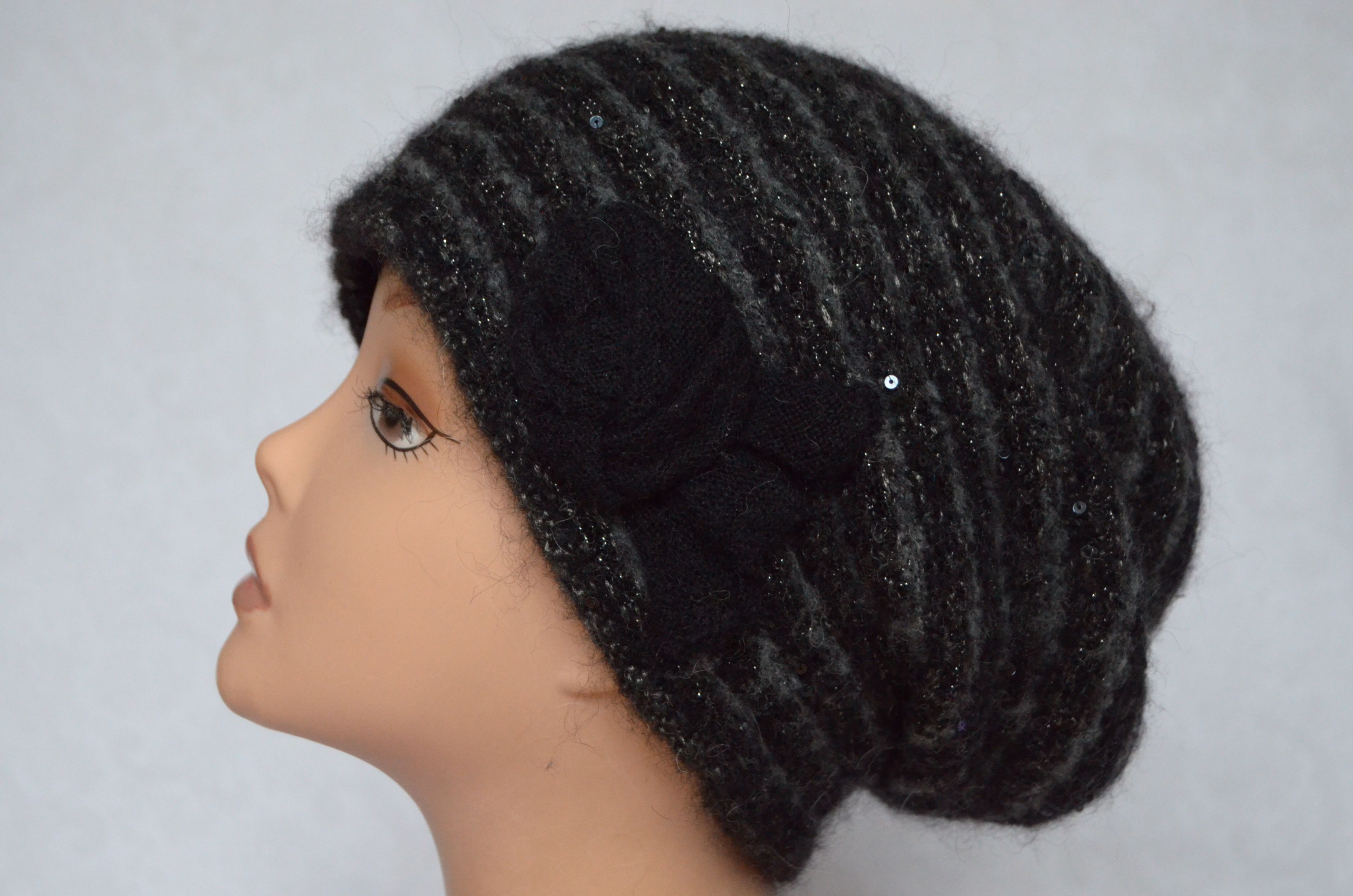 Женский вязаный берет с пайетками Vizio Италия 6507 черного цвета купить в магазине стильных итальянских головных уборов для женщин с доставкой по Москве и России