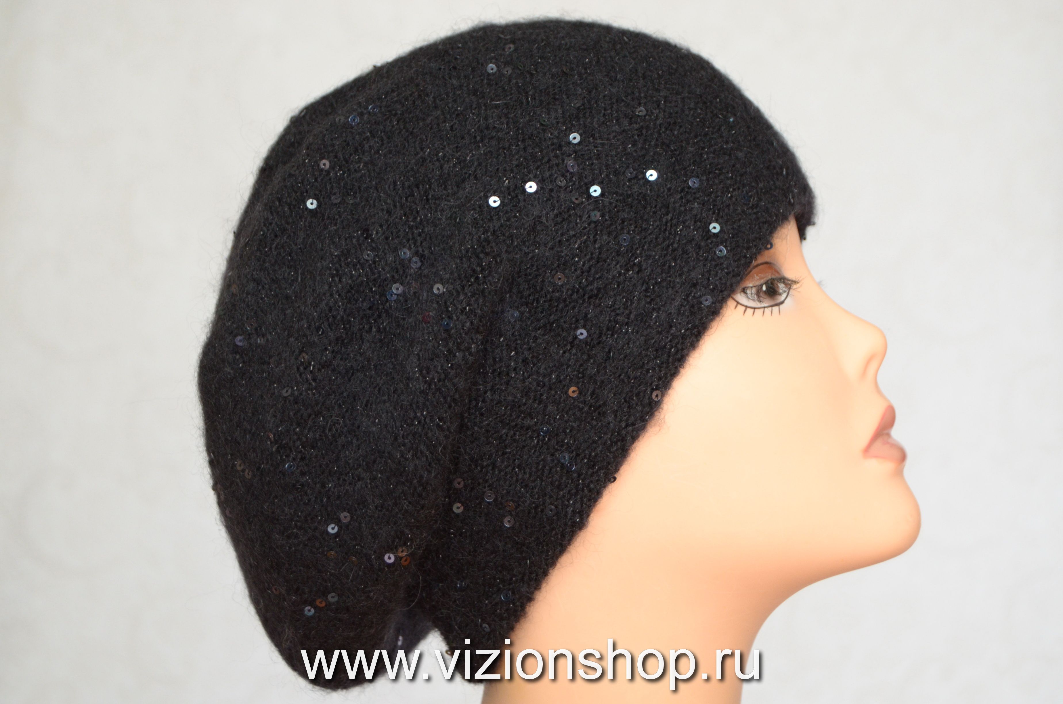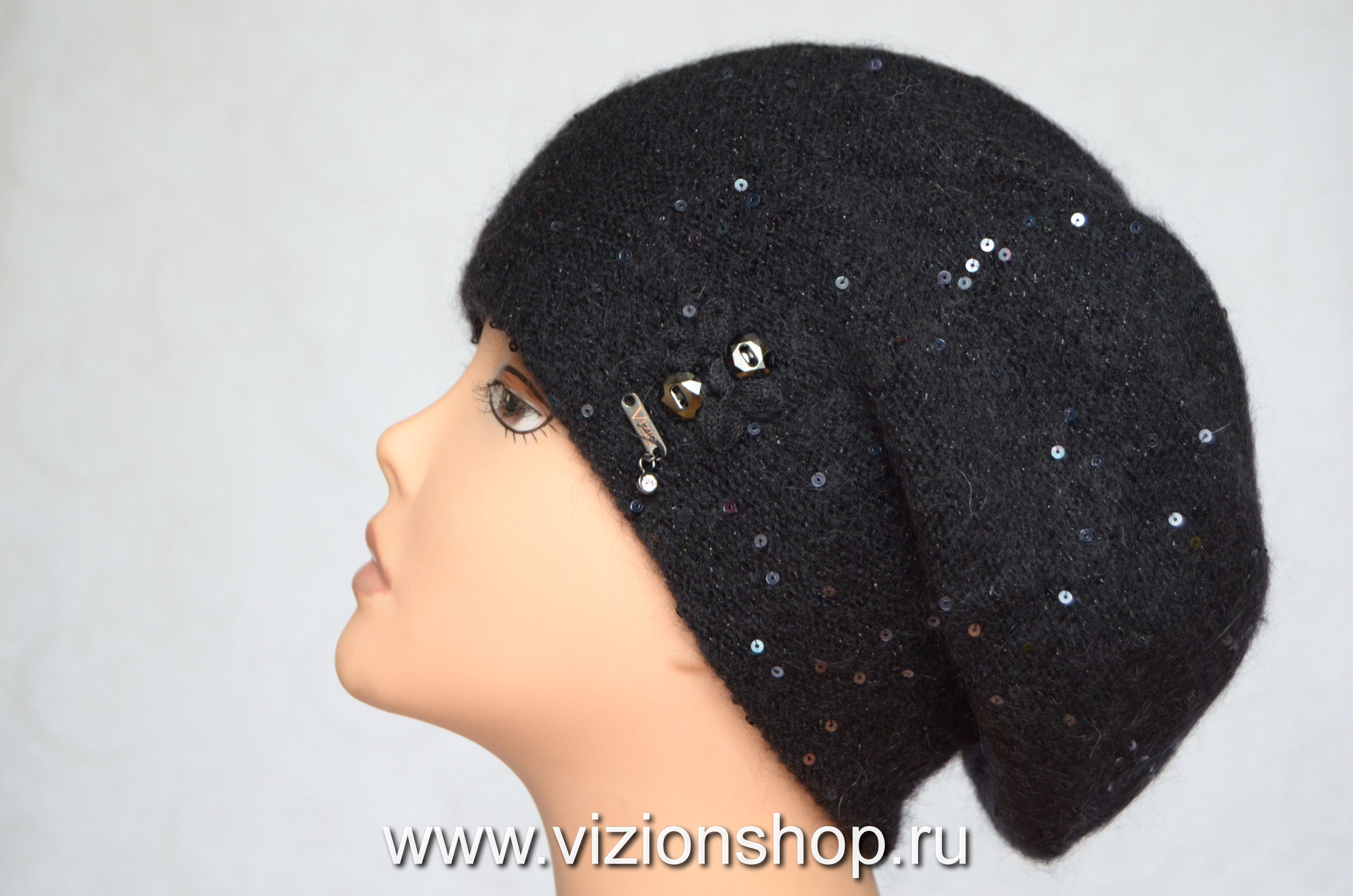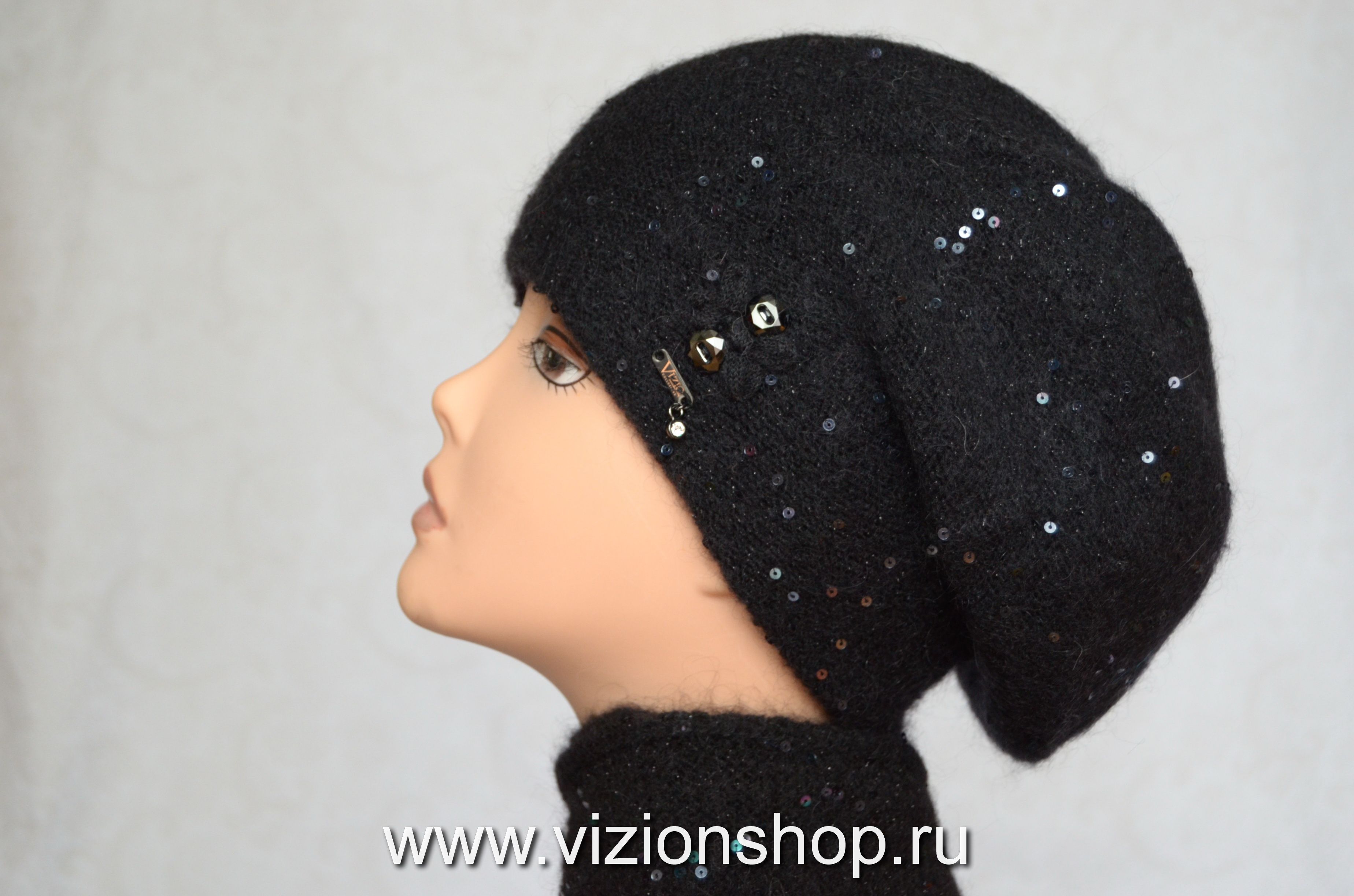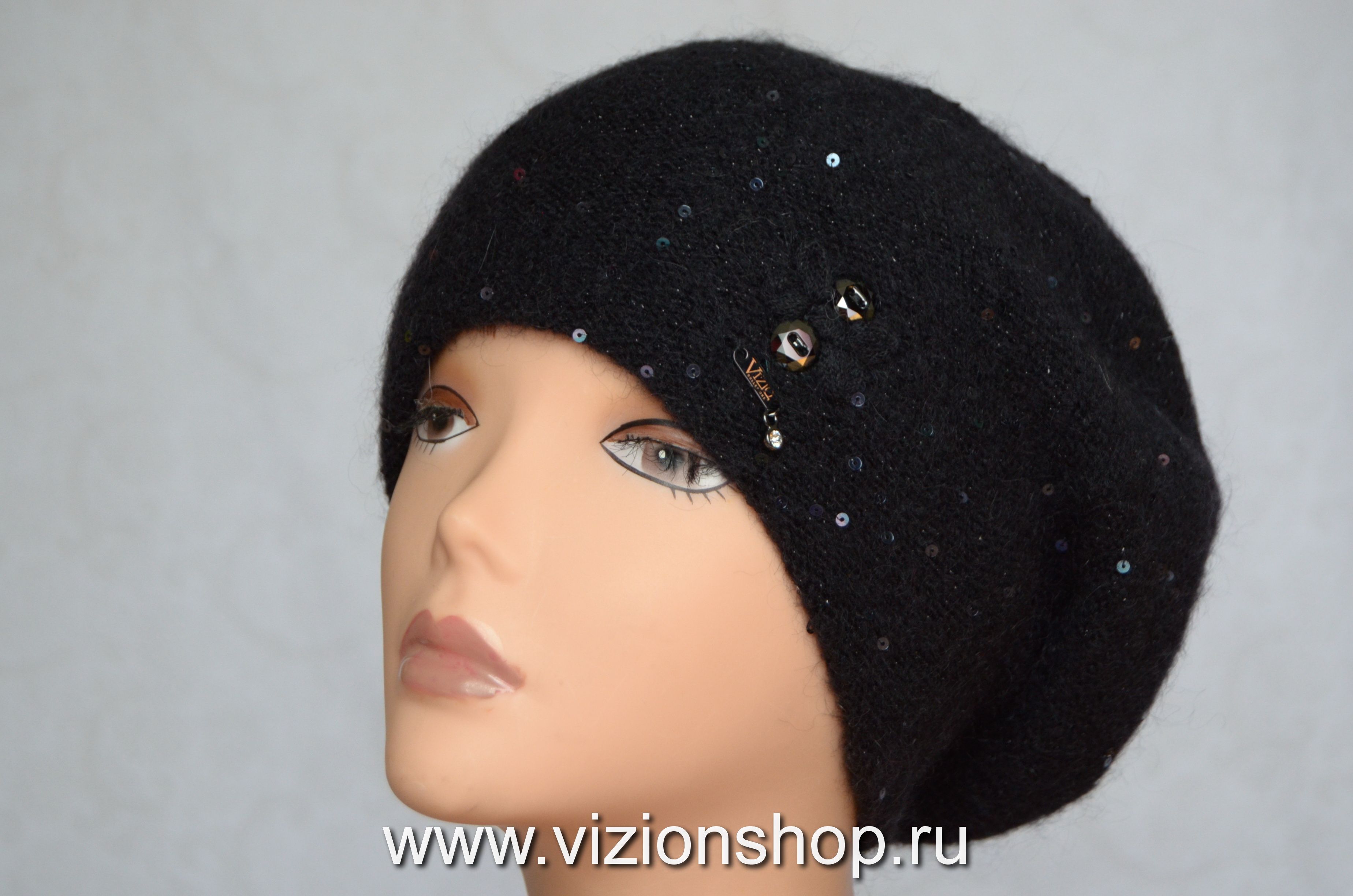 Купить черные итальянские вязаные береты для женщин Vizio в интернет магазине женских головных уборов Италии в Москве и России