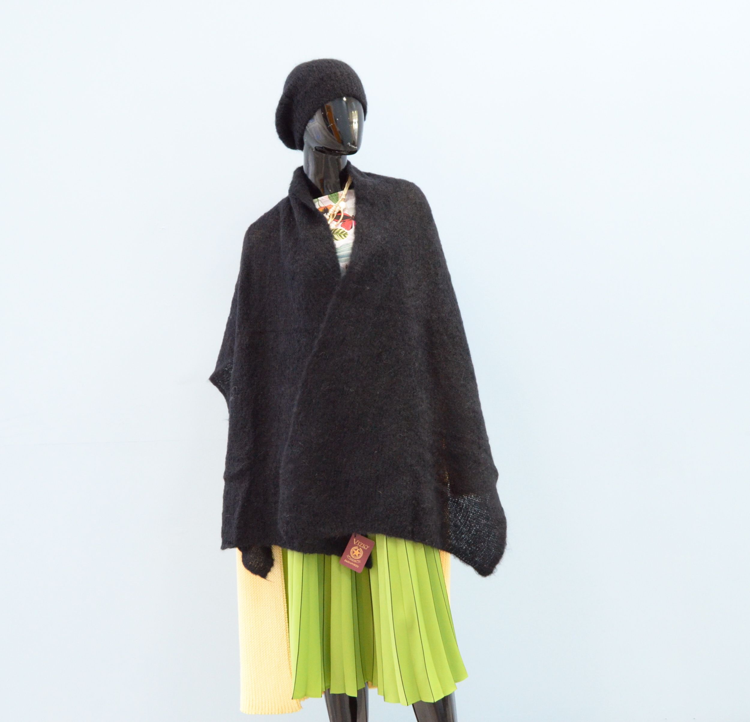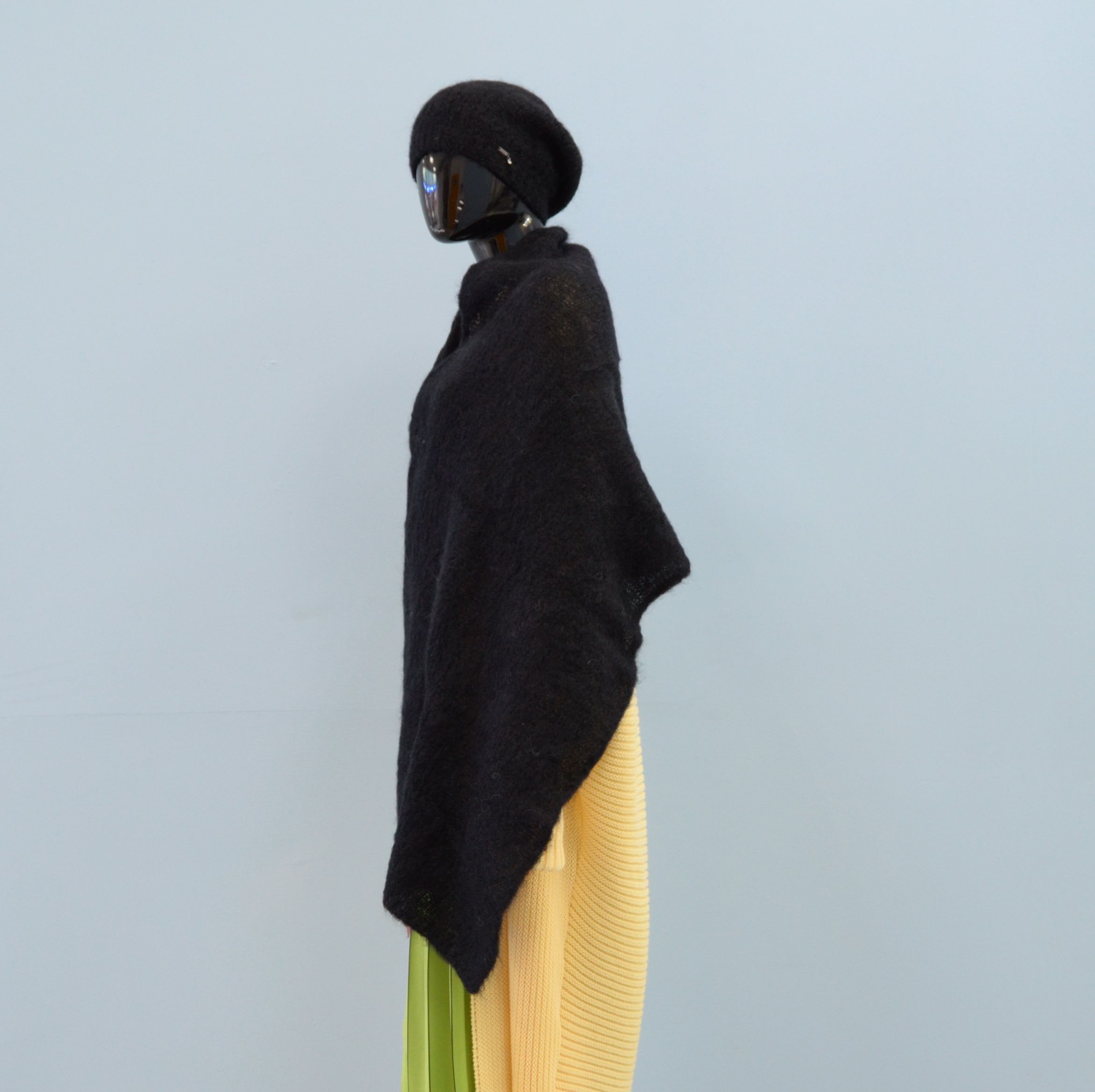 Приобрести черный мохеровый вязаный палантин женский Vizio Италия в интернет магазине итальянских шарфов и шапок Vizio Collezione
