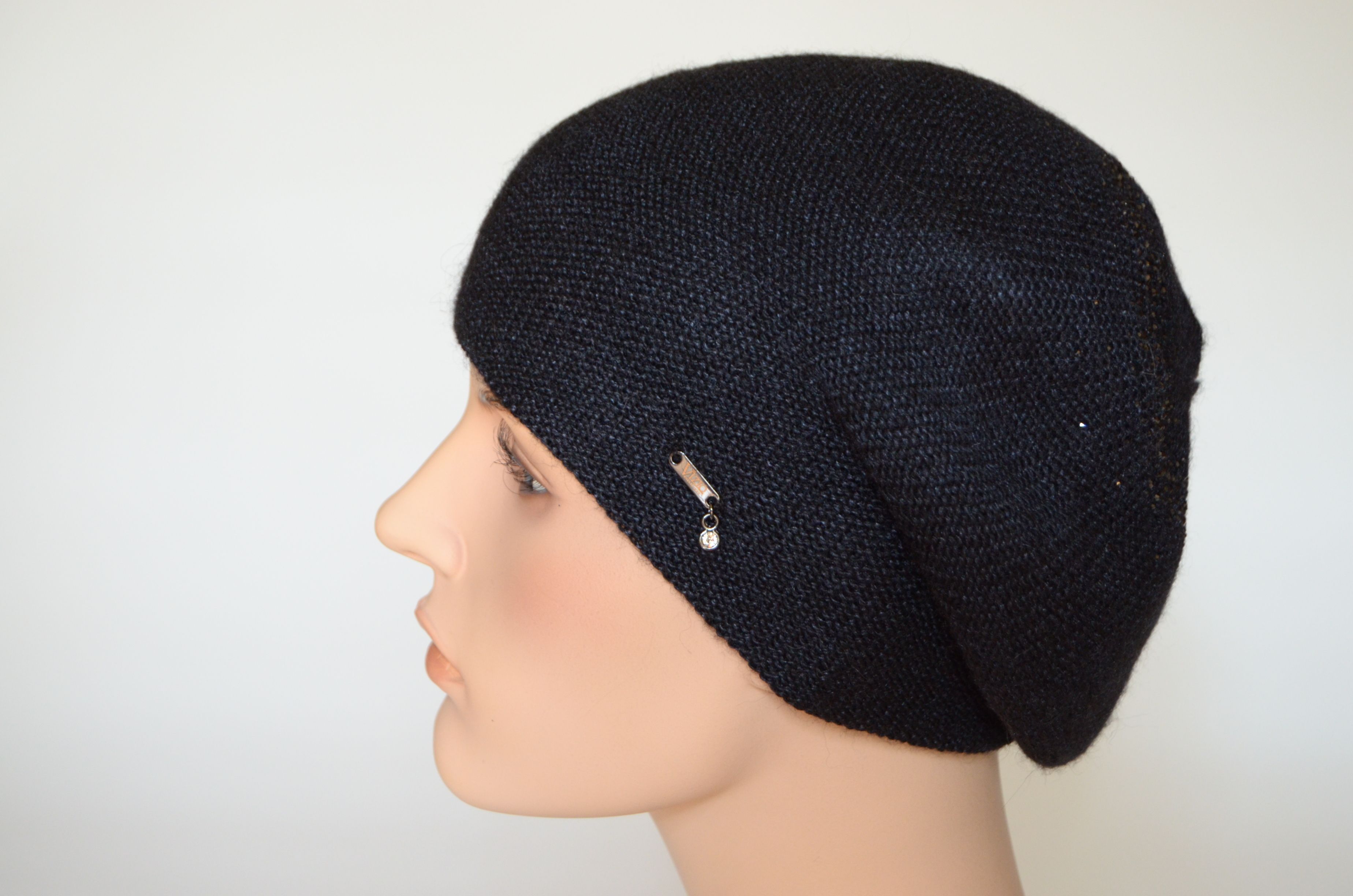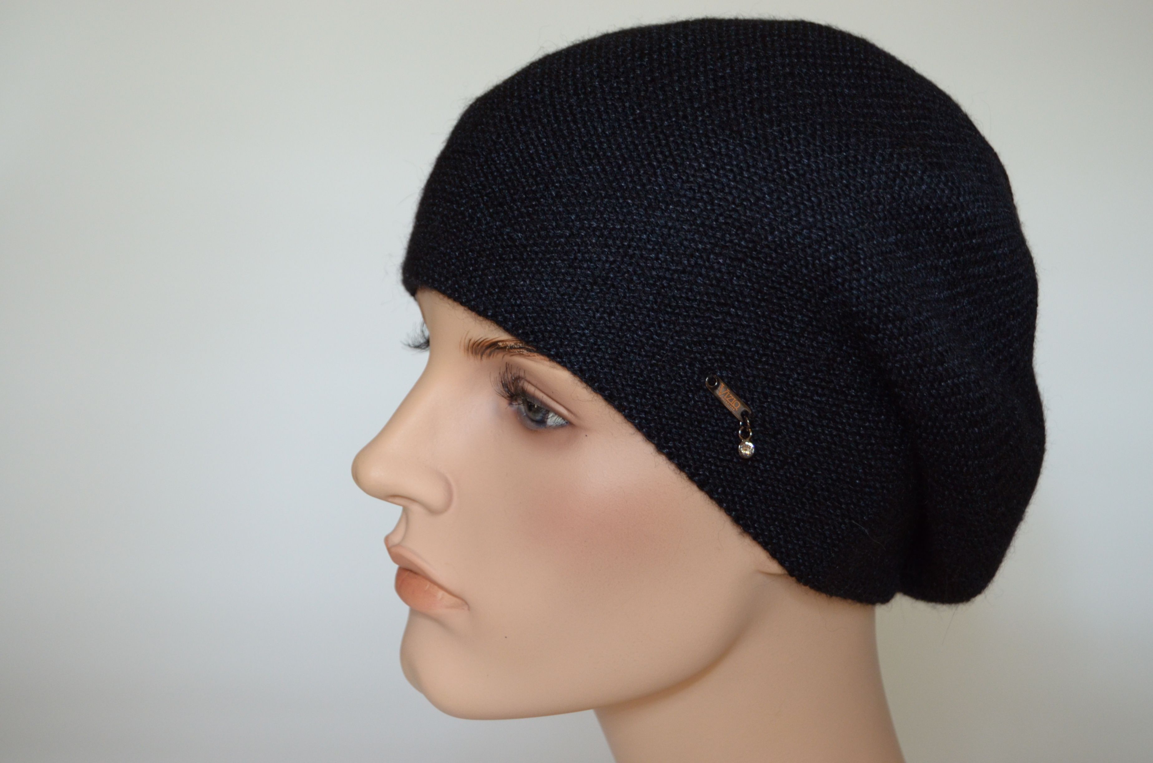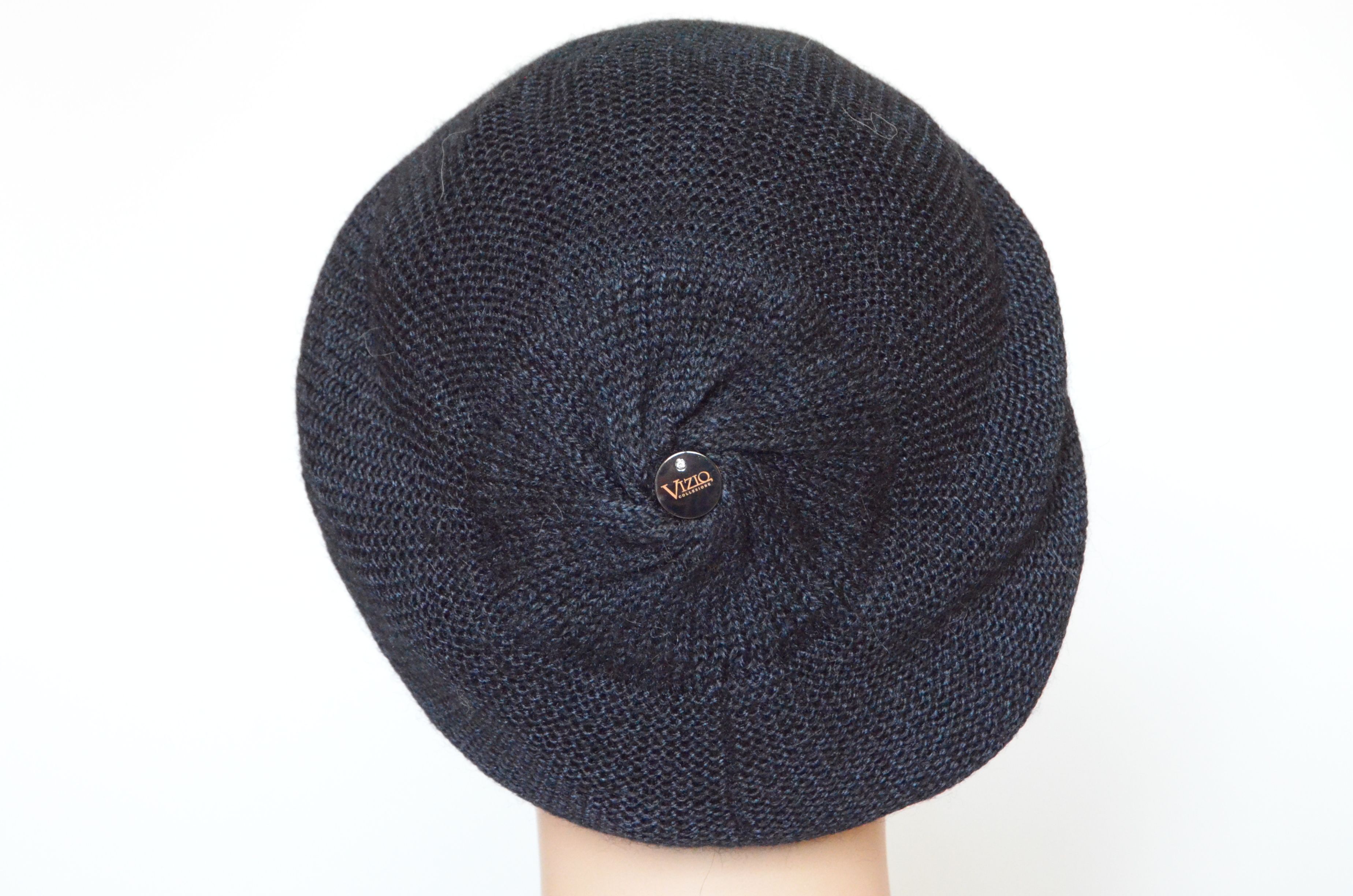Вязаный черный берет из альпака и шелка для женщин Vizio Италия 7000 зимняя коллекция женских головных уборов Vizio Collezione 2021 - 2022 купить в интернет магазине итальянских беретов и шапок Визио