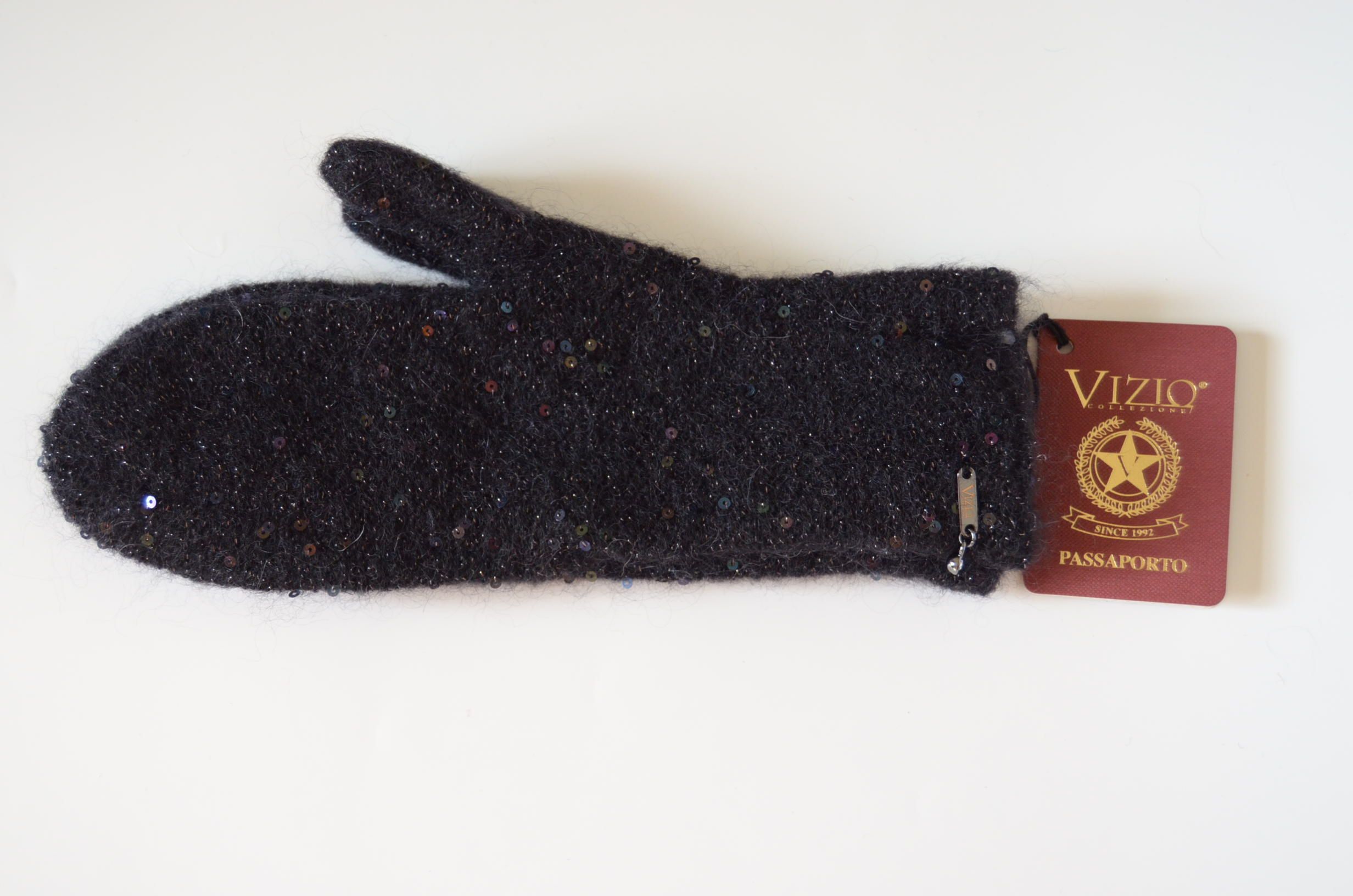 Купить итальянские женские вязаные варежки с пайетками черного цвета Vizio вы можете в интернет магазине головных уборов Визио в Москве и с доставкой по России