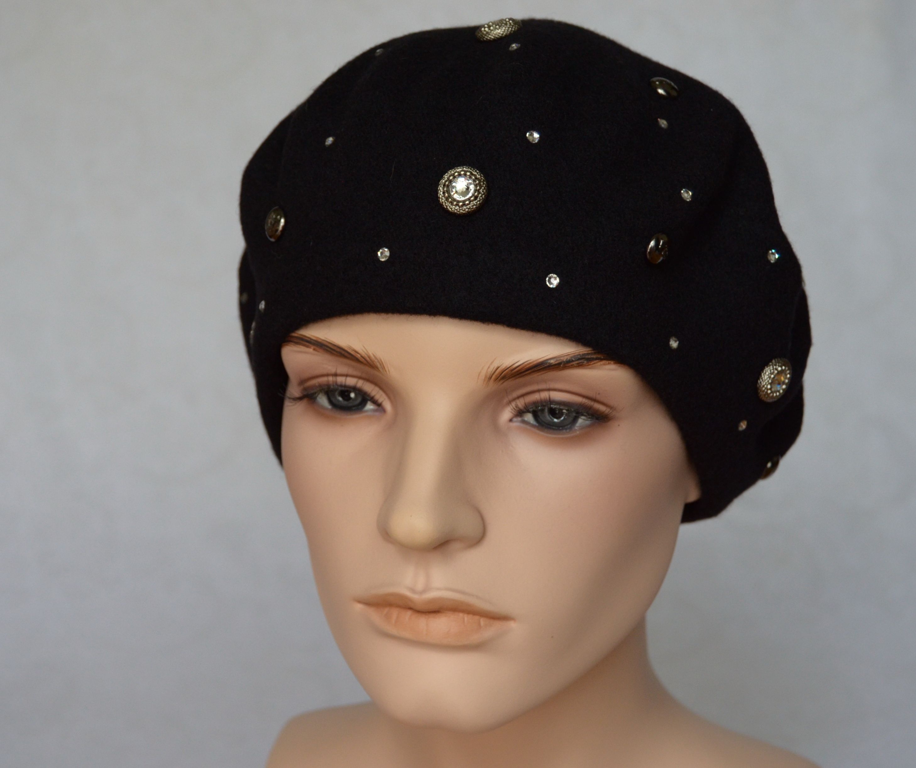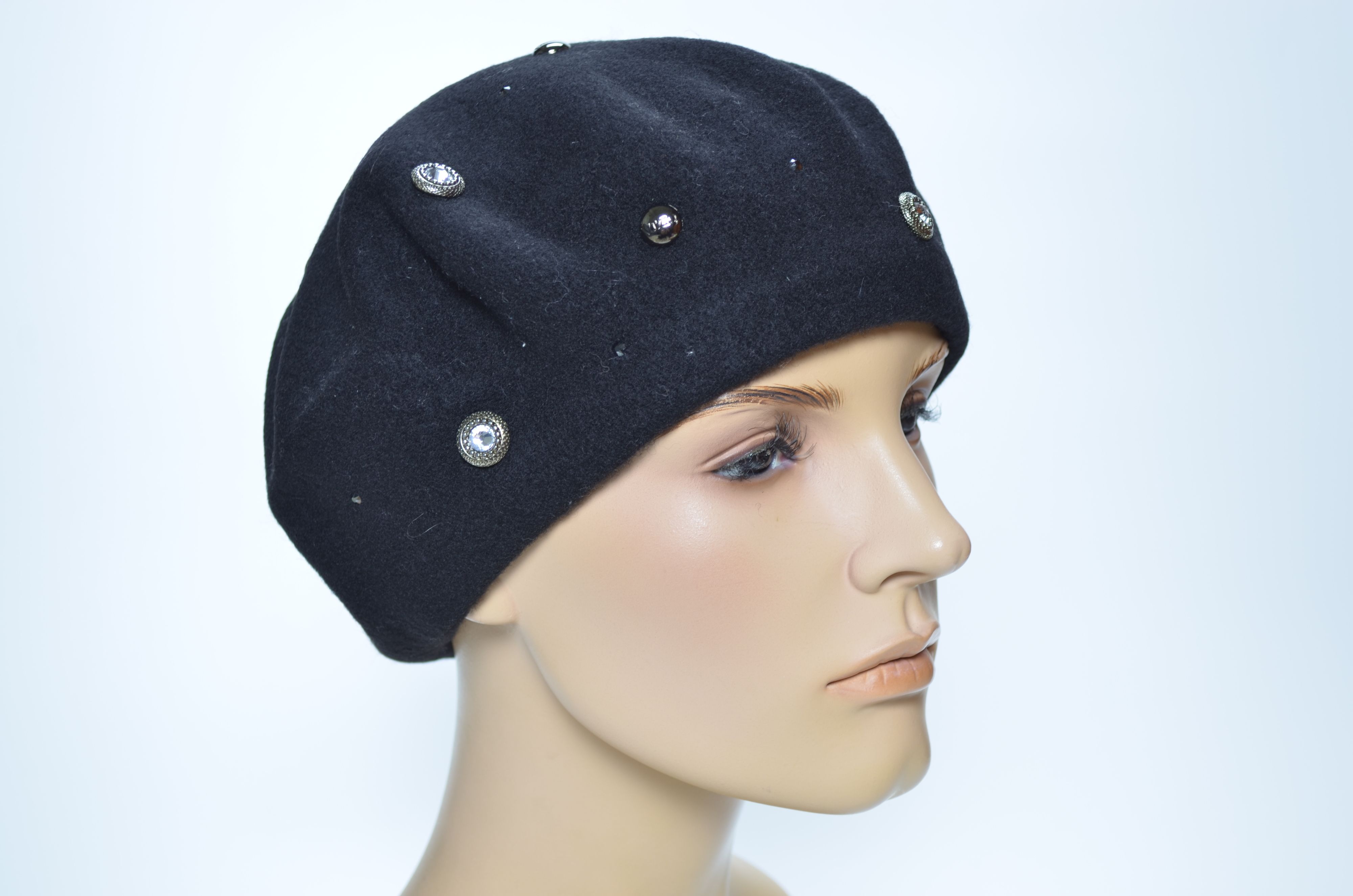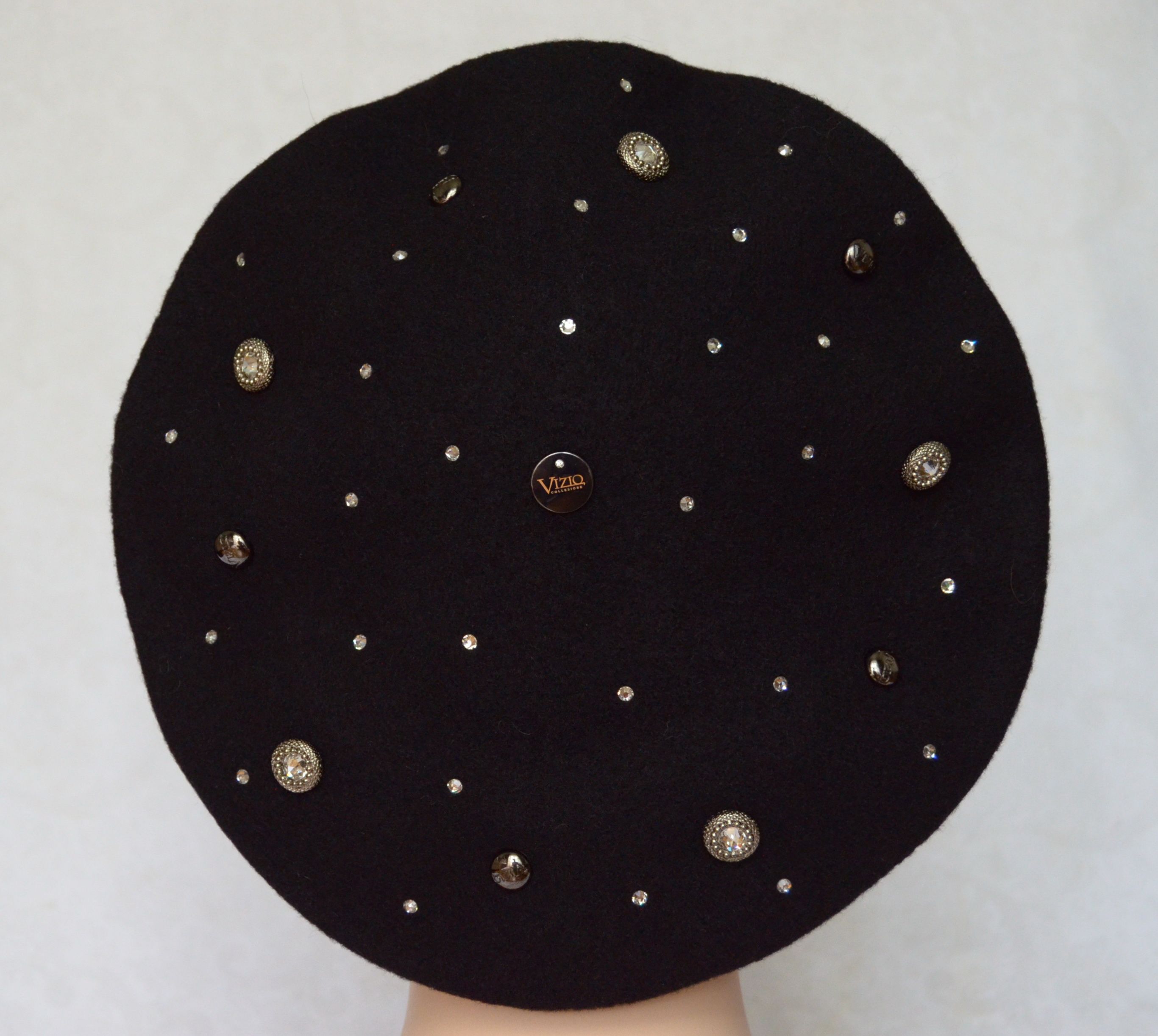 Берет черный женский Италия Vizio 3633 фетровый со стразами swarovski купить в интернет магазине вязаных головных уборов для женщин в Москве или с доставкой почтой России