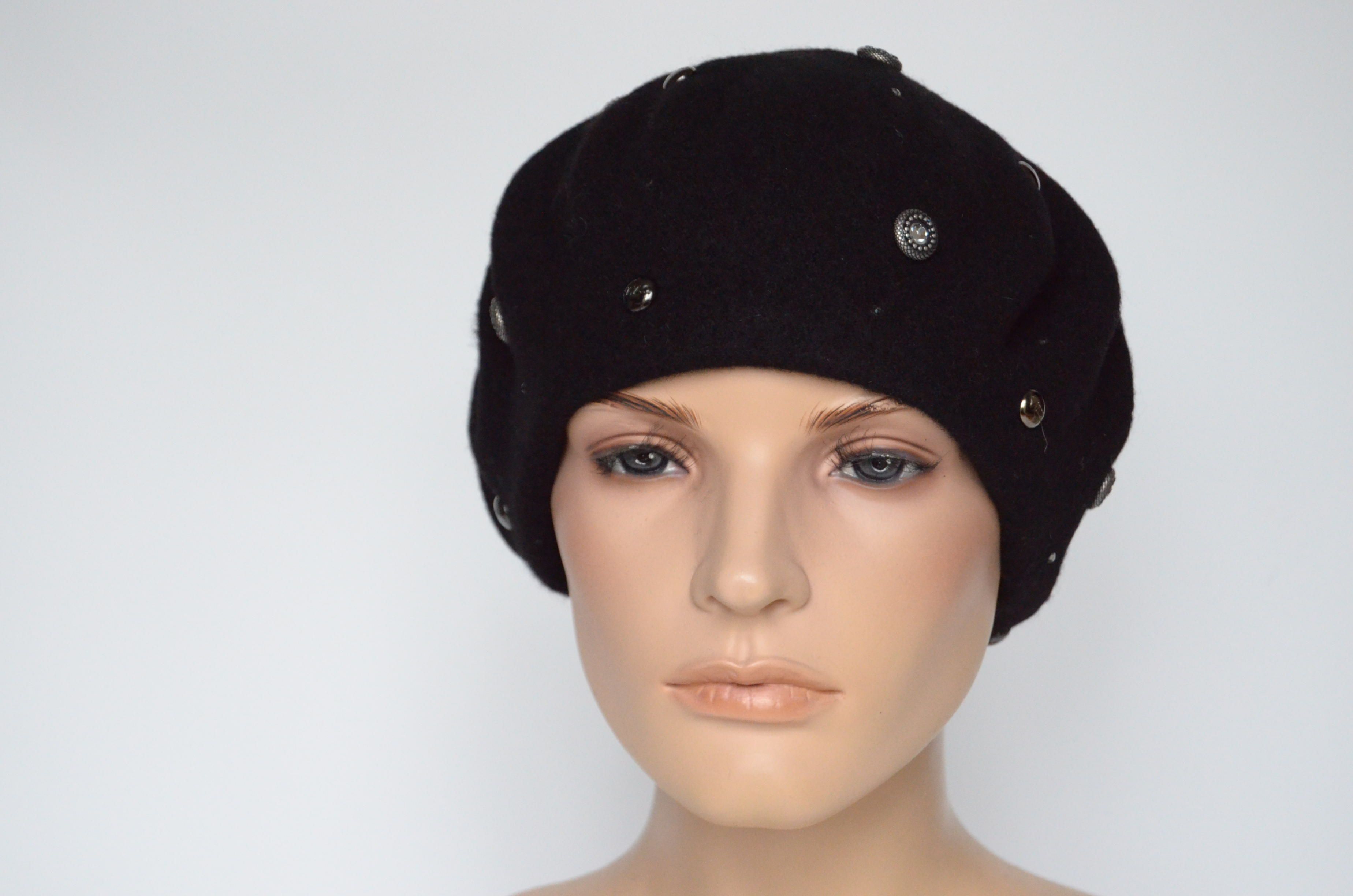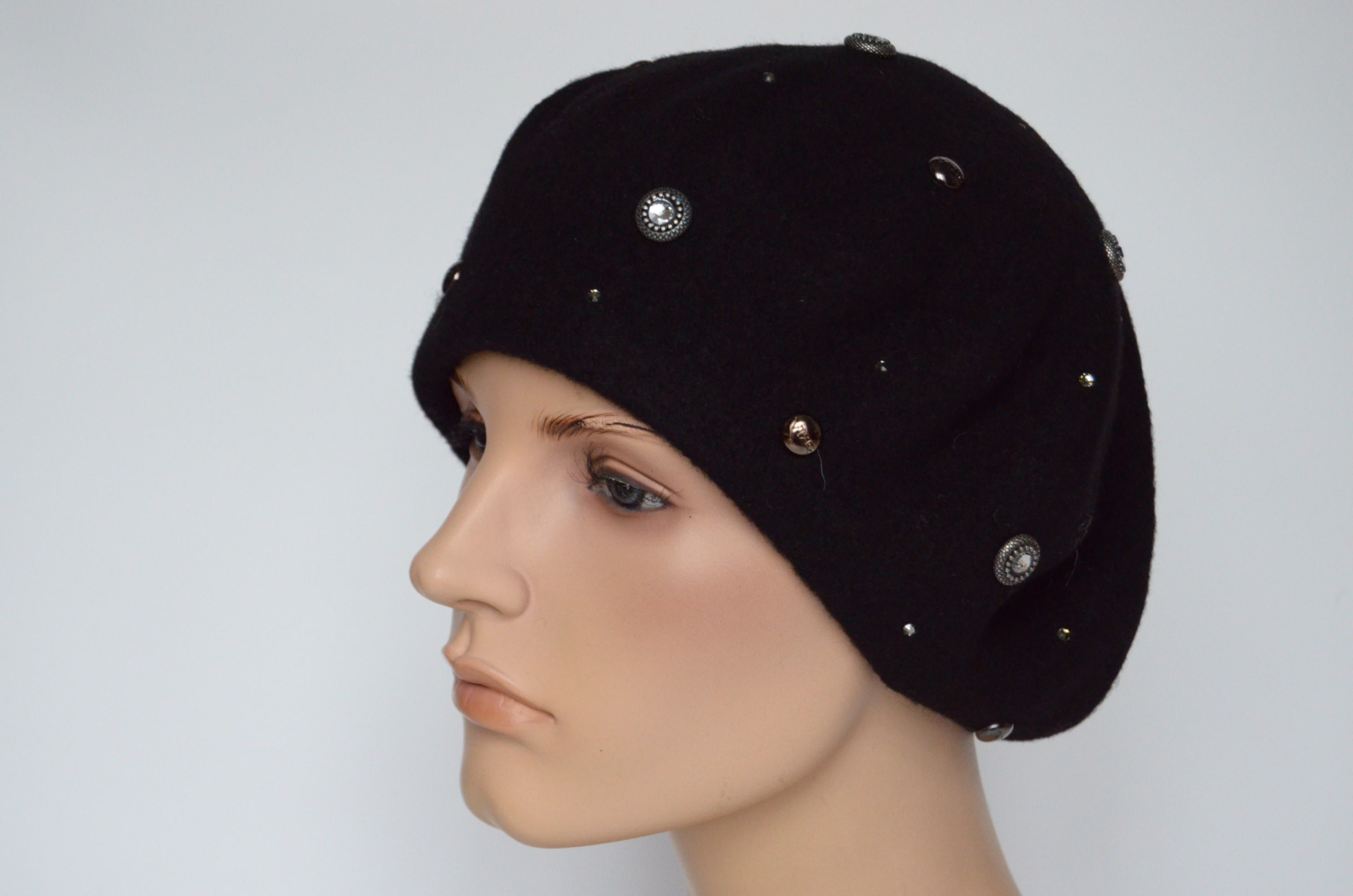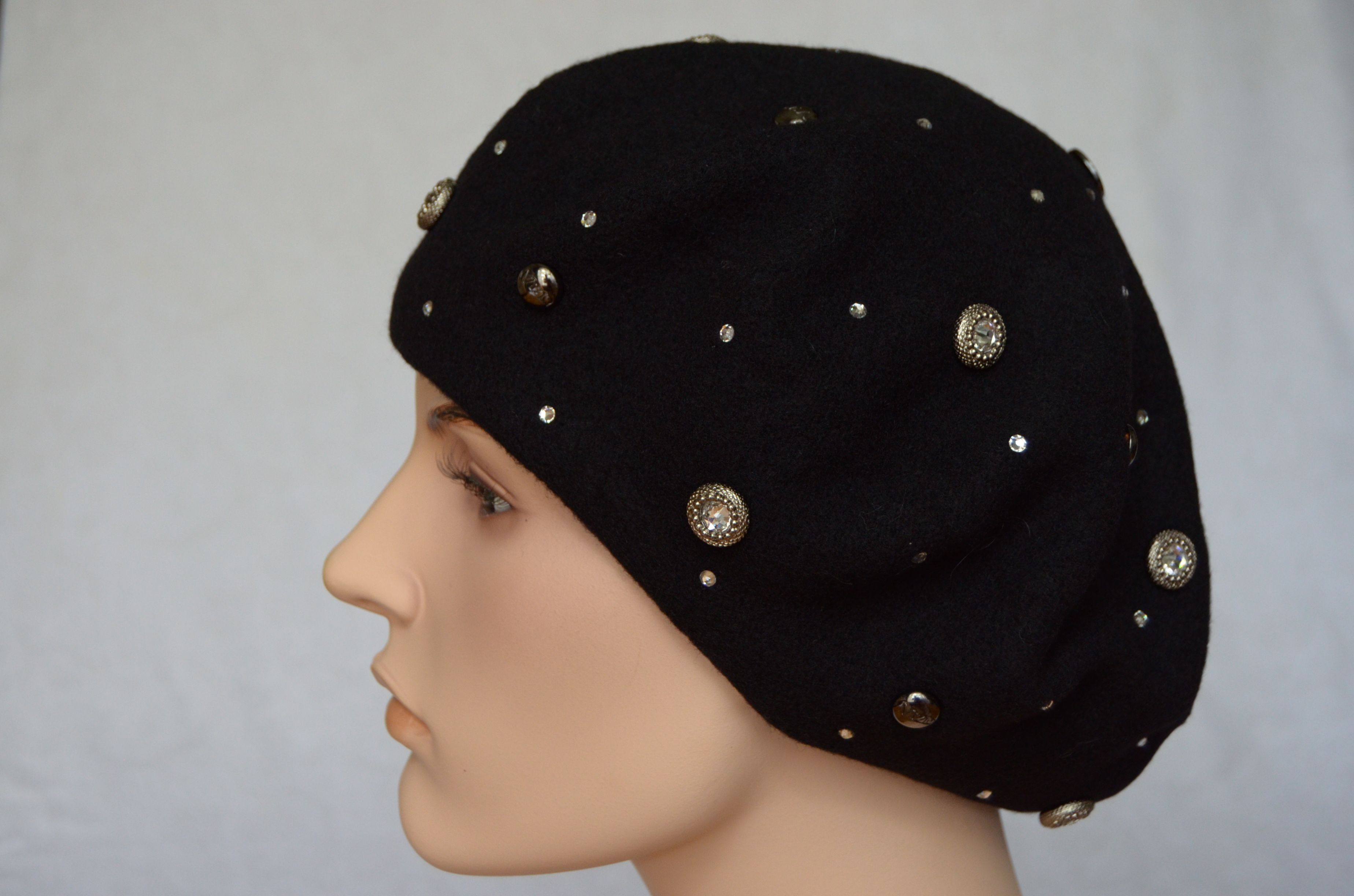 Берет черный женский Италия Vizio 3633 фетровый со стразами swarovski купить в интернет магазине вязаных головных уборов для женщин в Москве или с доставкой почтой России