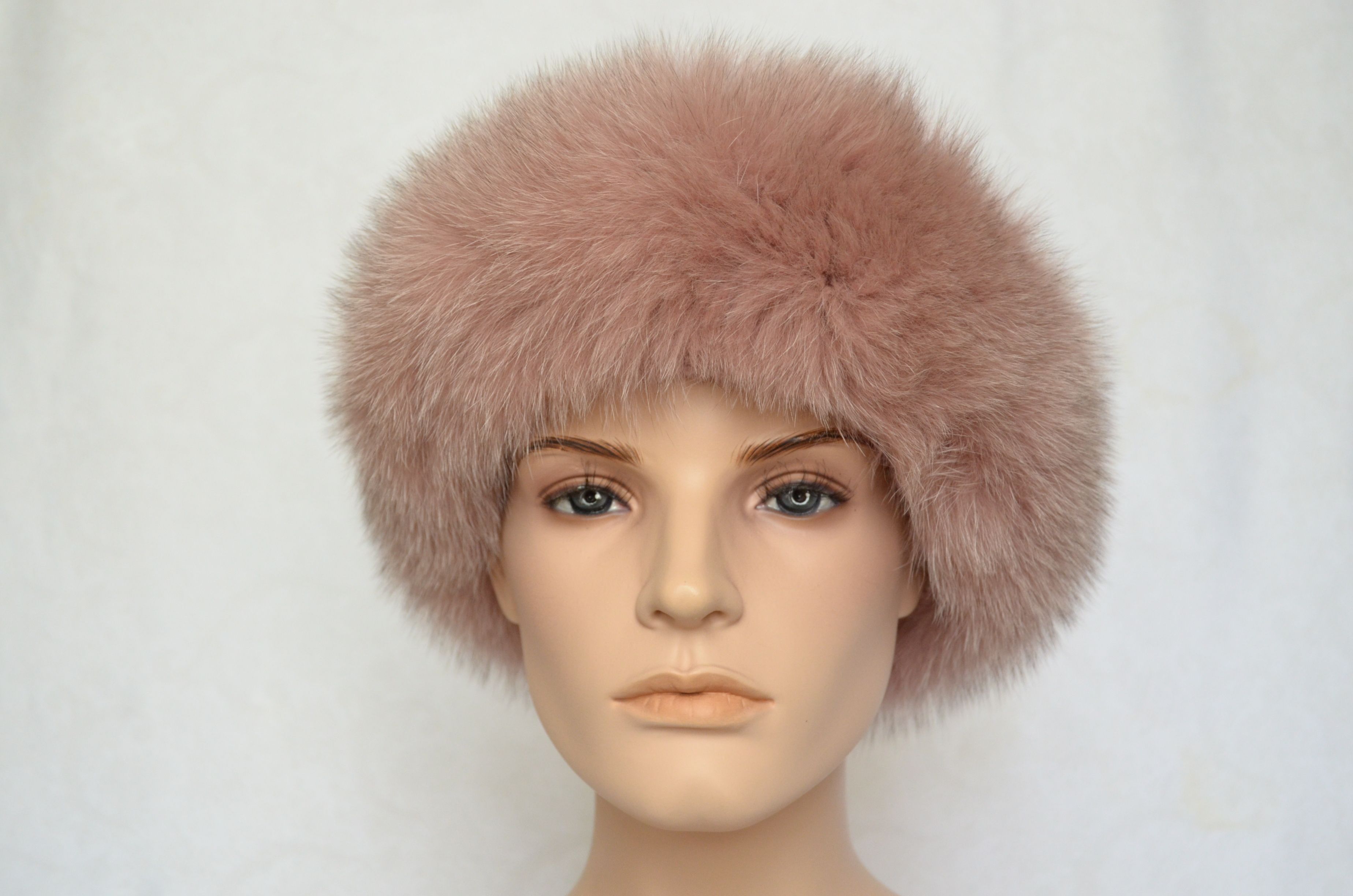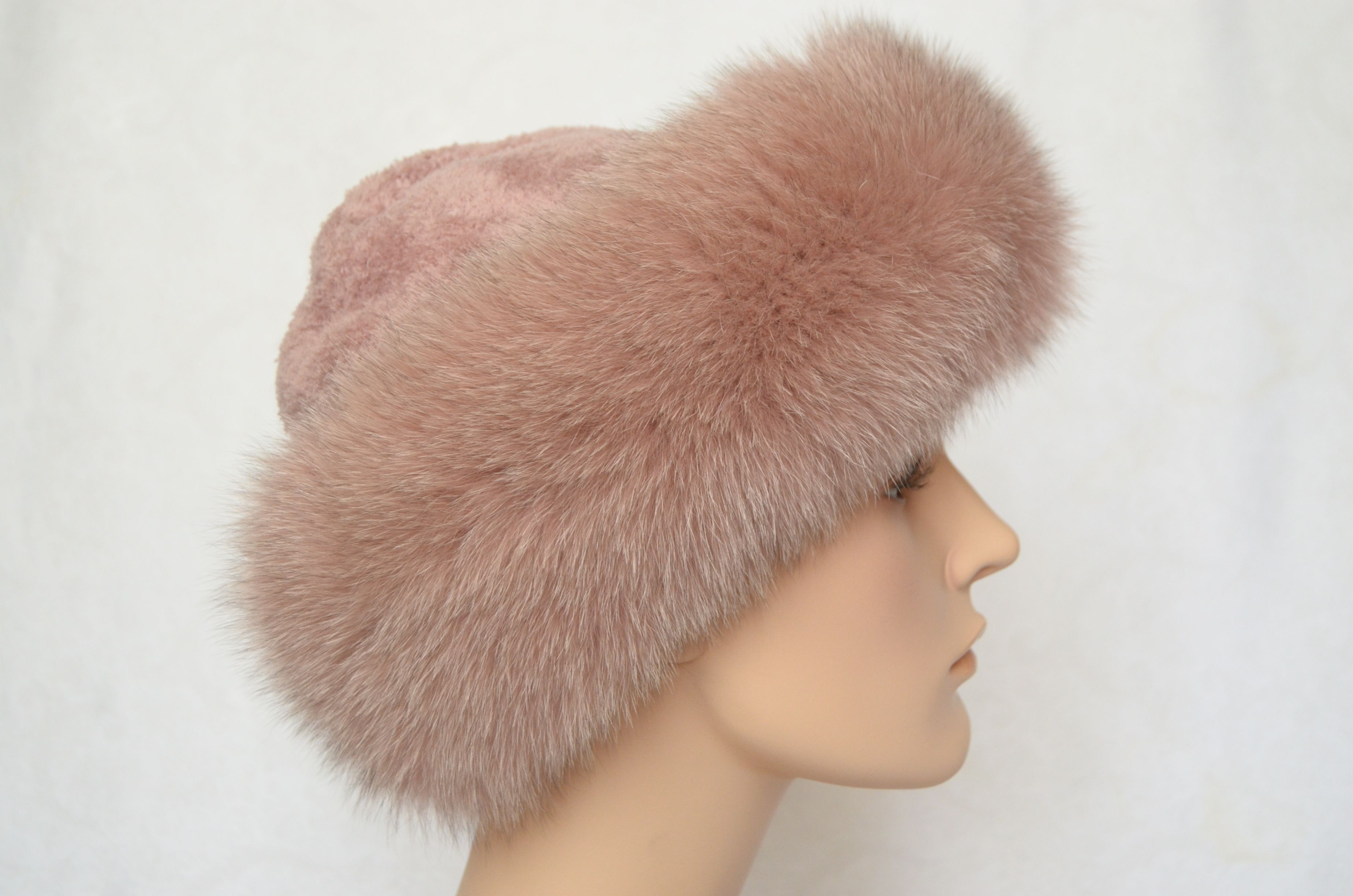 Кашемировая вязаная итальянская шапка с натуральным мехом песца Vizio Италия 6750 розовая купить из новой коллекции дизайнерских вязаных шапок Визио с меховой отделкой
