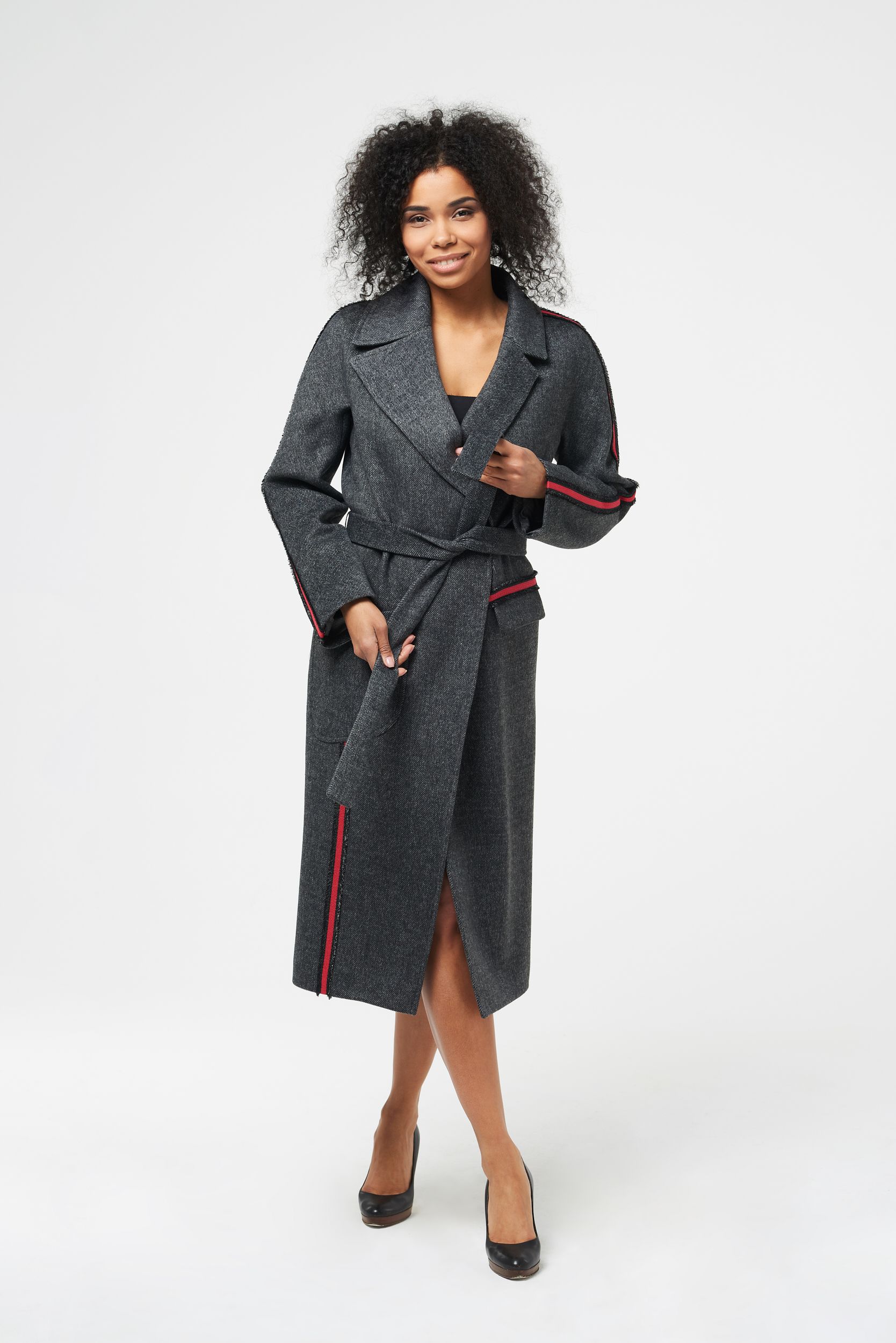 Приобрести женское драповое пальто с лампасами Флирт вы можете в магазине шерстяных пальто для женщин в Москве