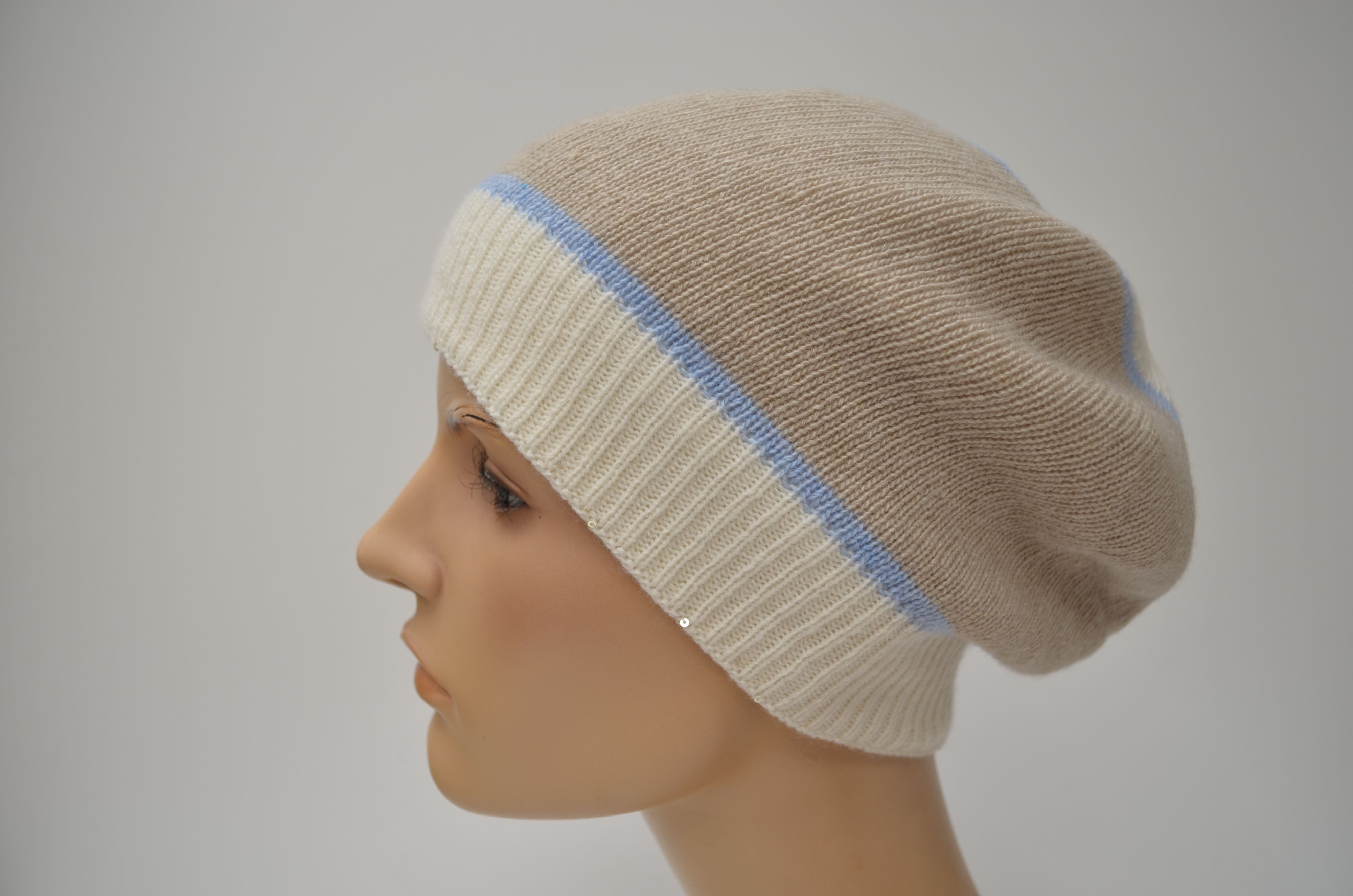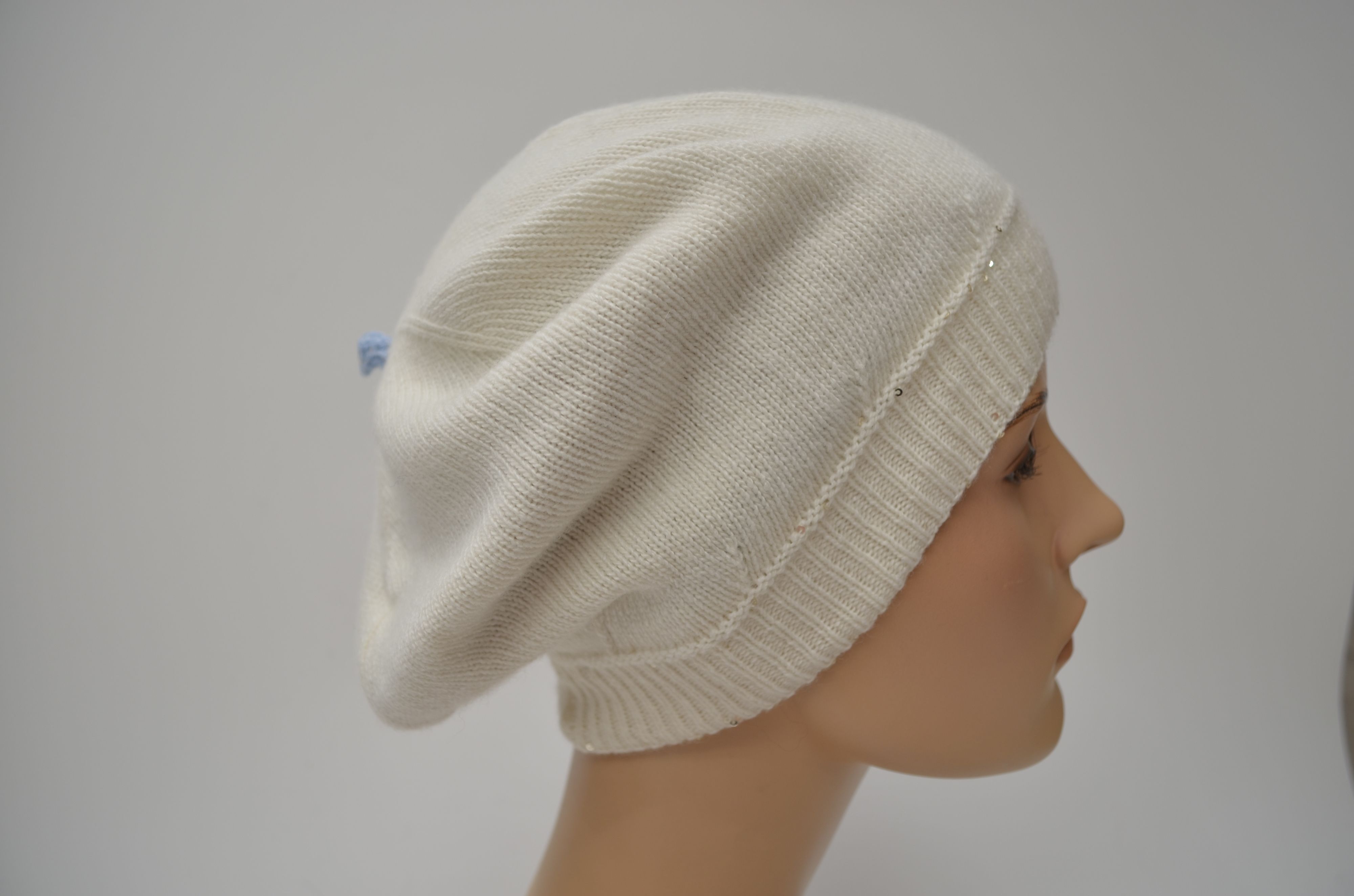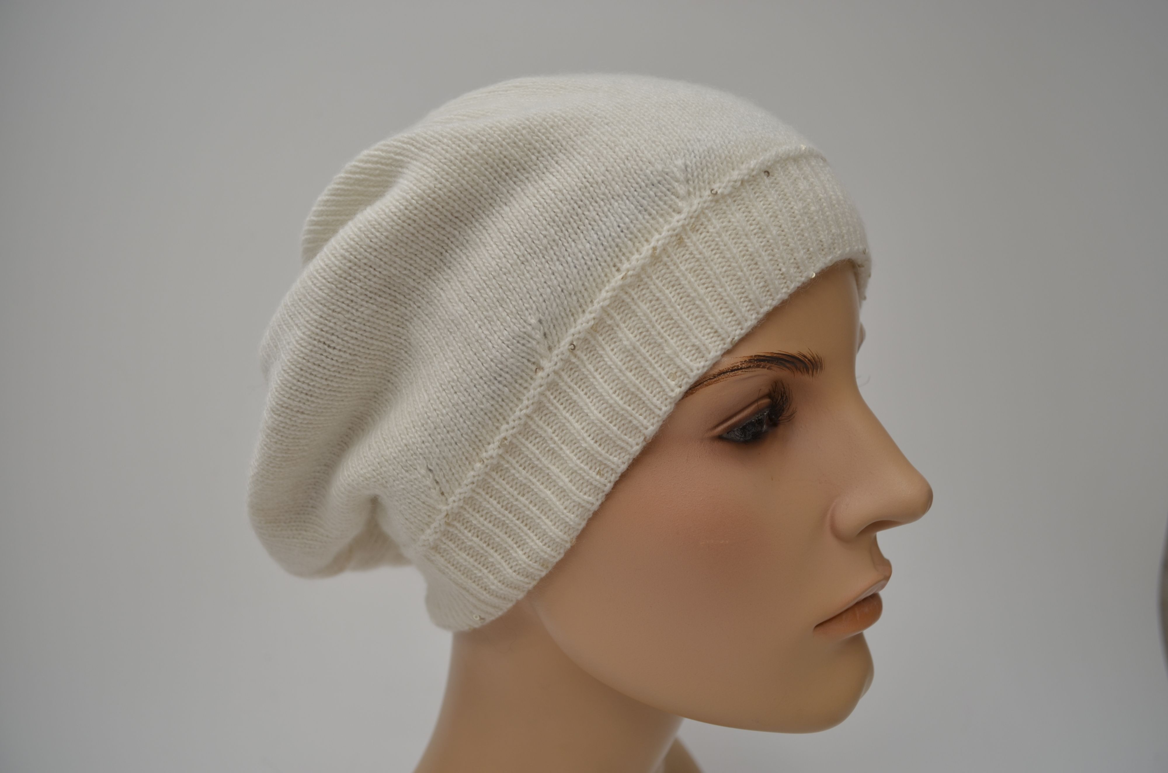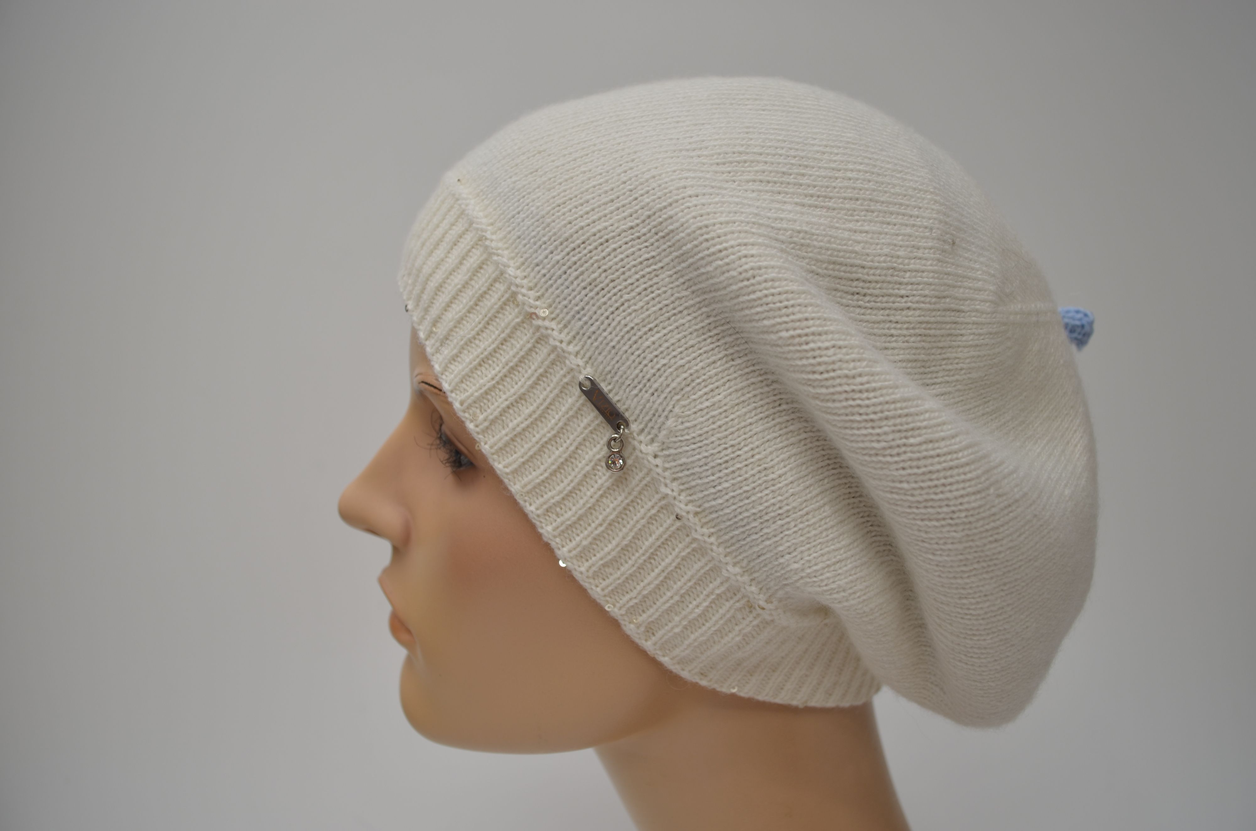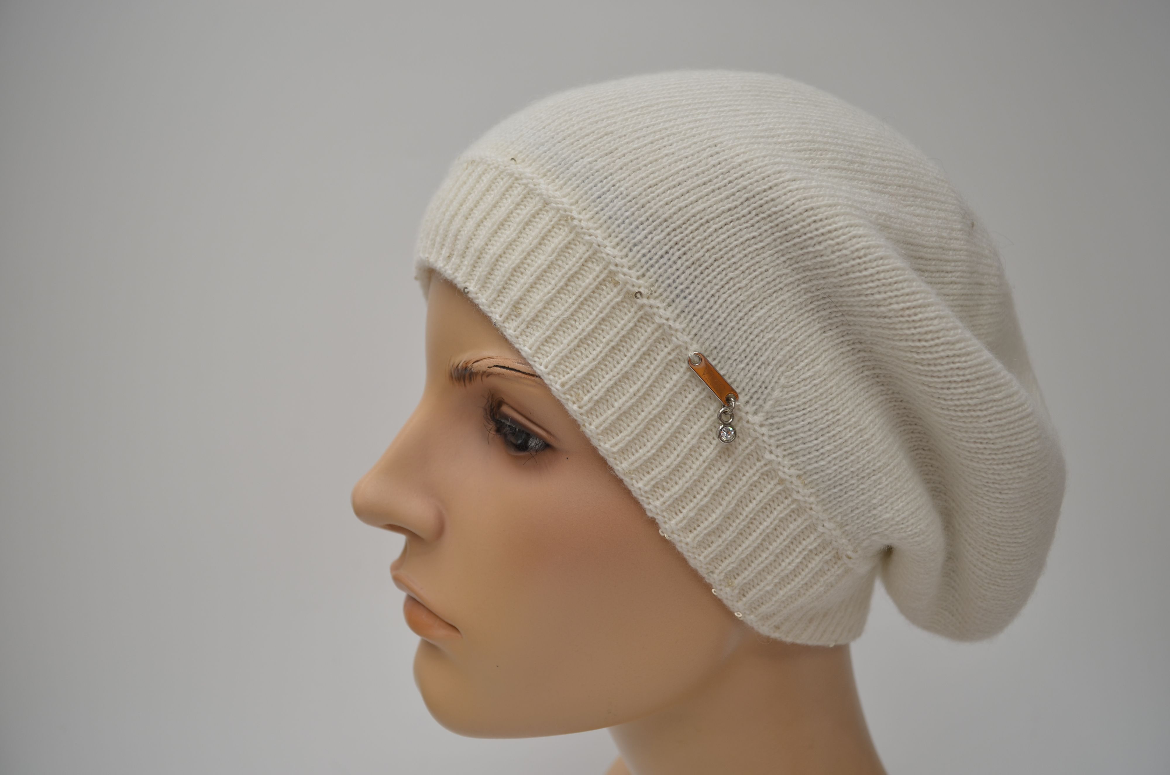 Зимний берет вязаный женский белый из мериноса и кашемира осень зима 2025 - 2026