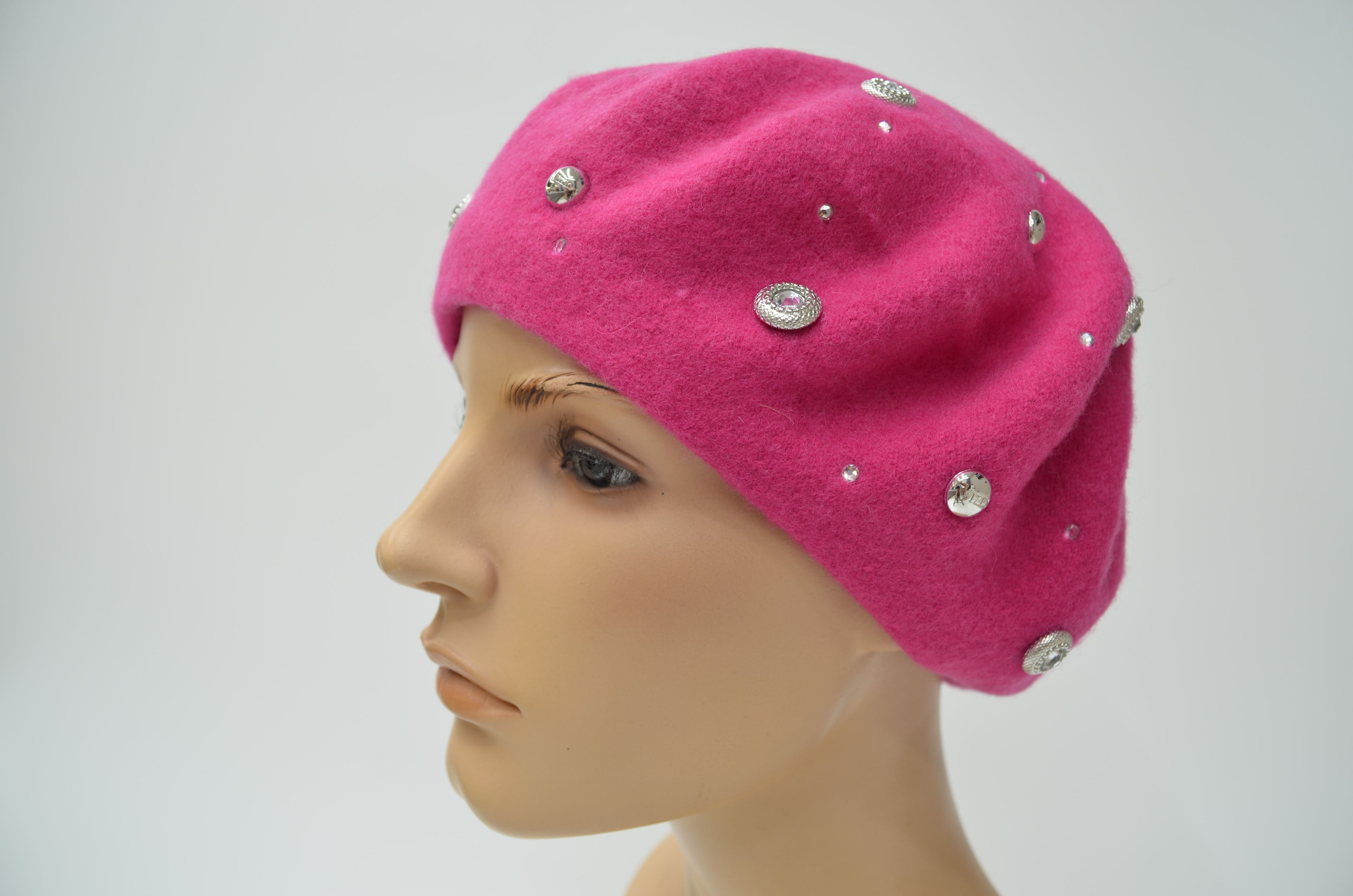 Фетровый берет цвета фуксия со стразами сваровски для женщин