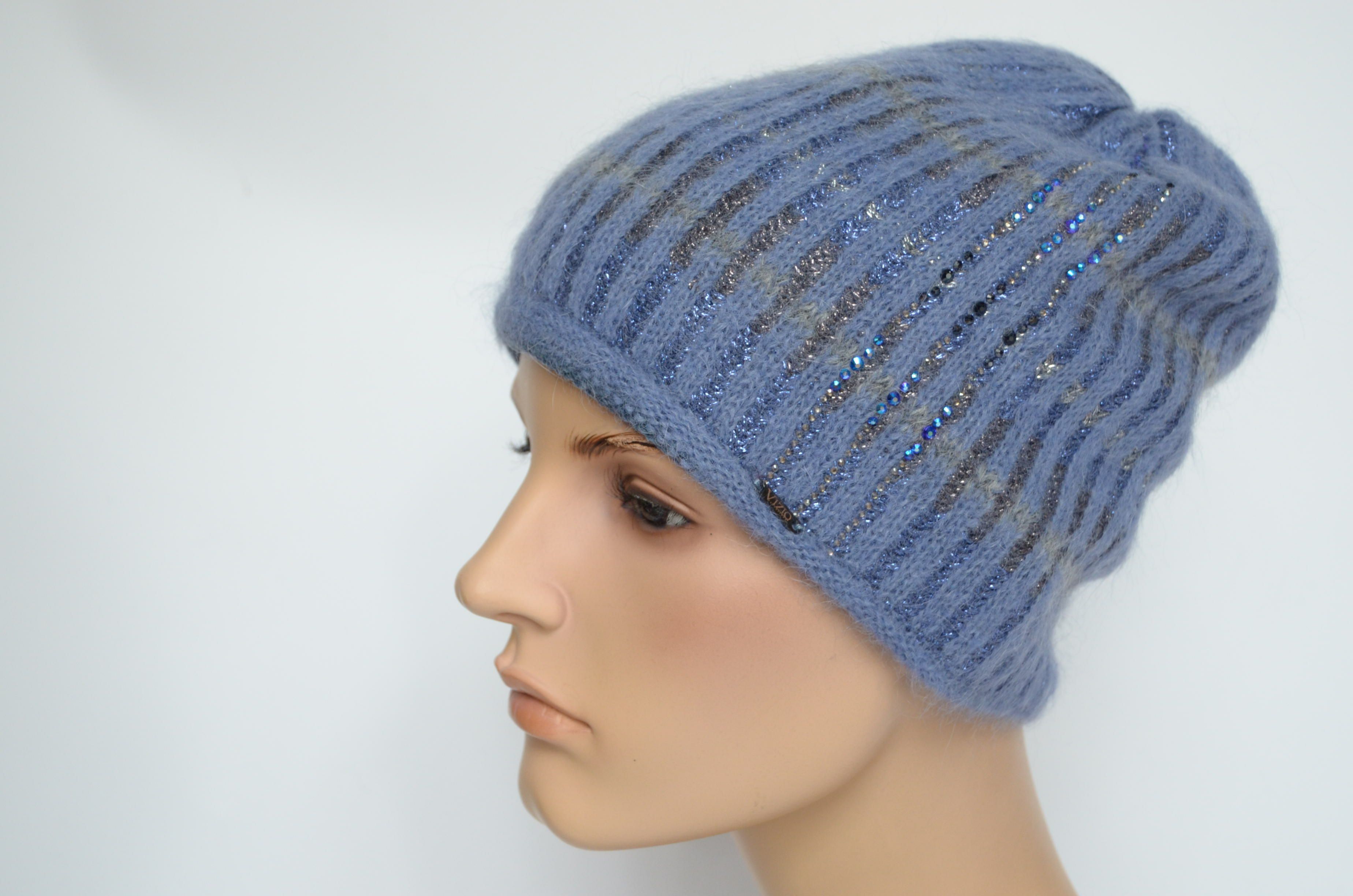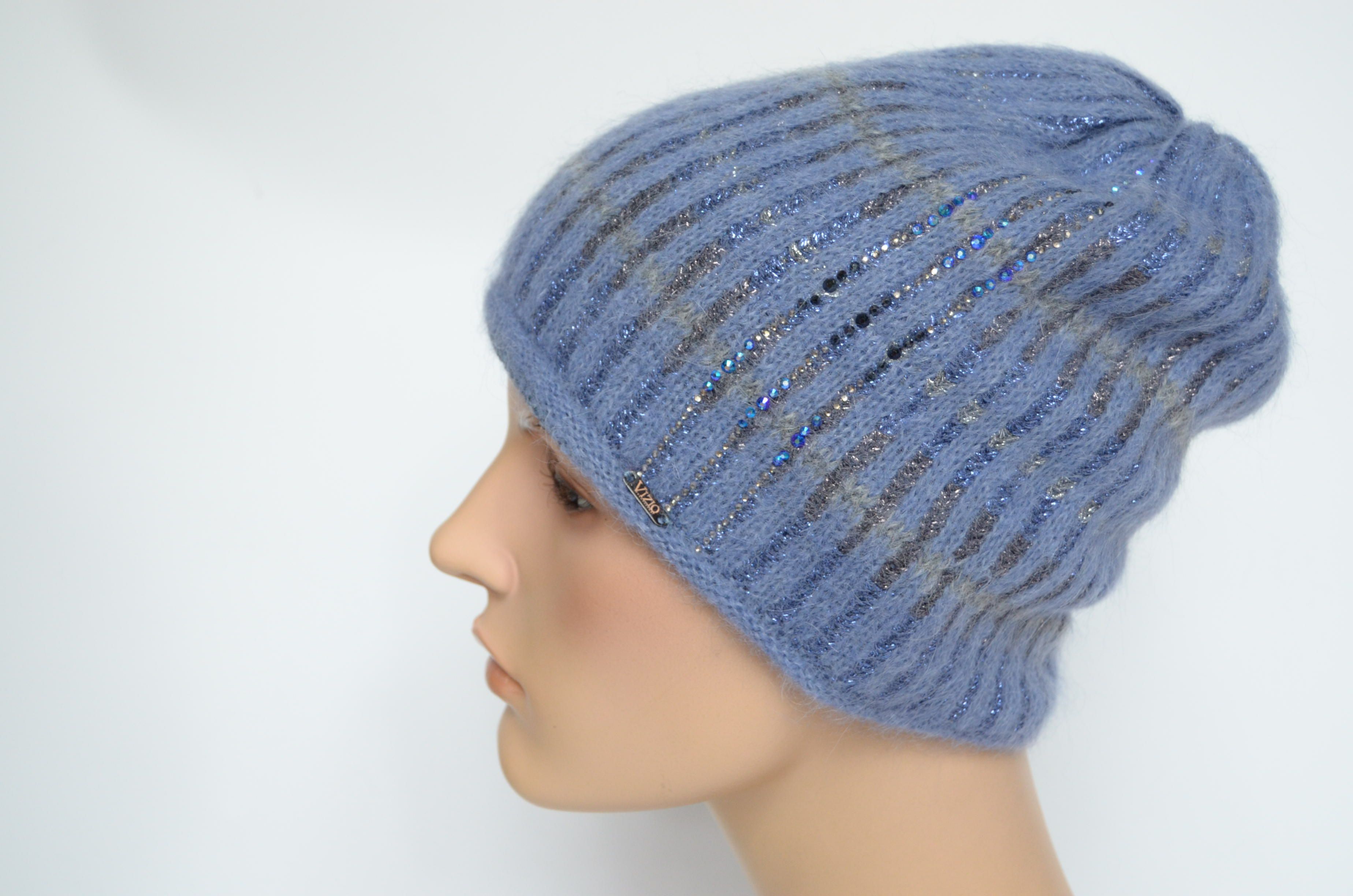 Итальянская фиолетовая вязаная шапка со стразами Vizio Италия 8007 CY зима 2022 - 2023 купить в Москве и России интернет магазин головных уборов Италии Визио