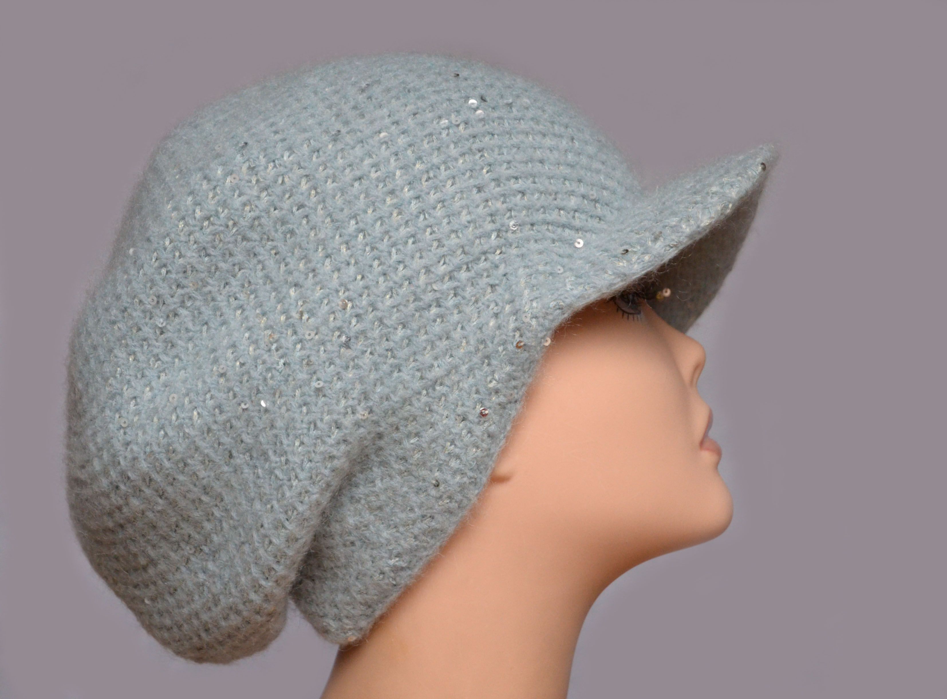 Vizio 6161 итальянская кепка вязаная зимняя с пайетками голубая купить в интернет магазине женских кепок Италии