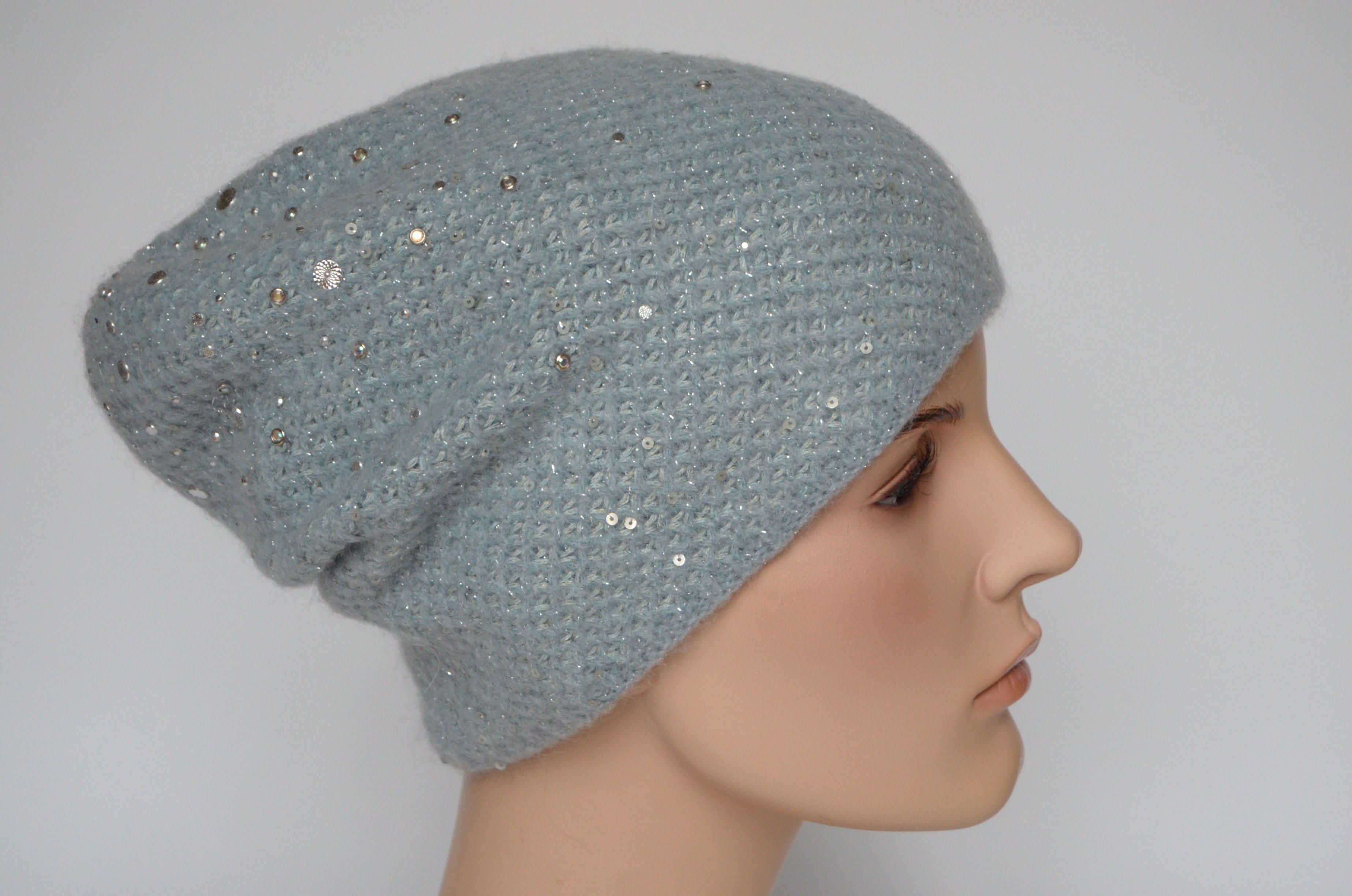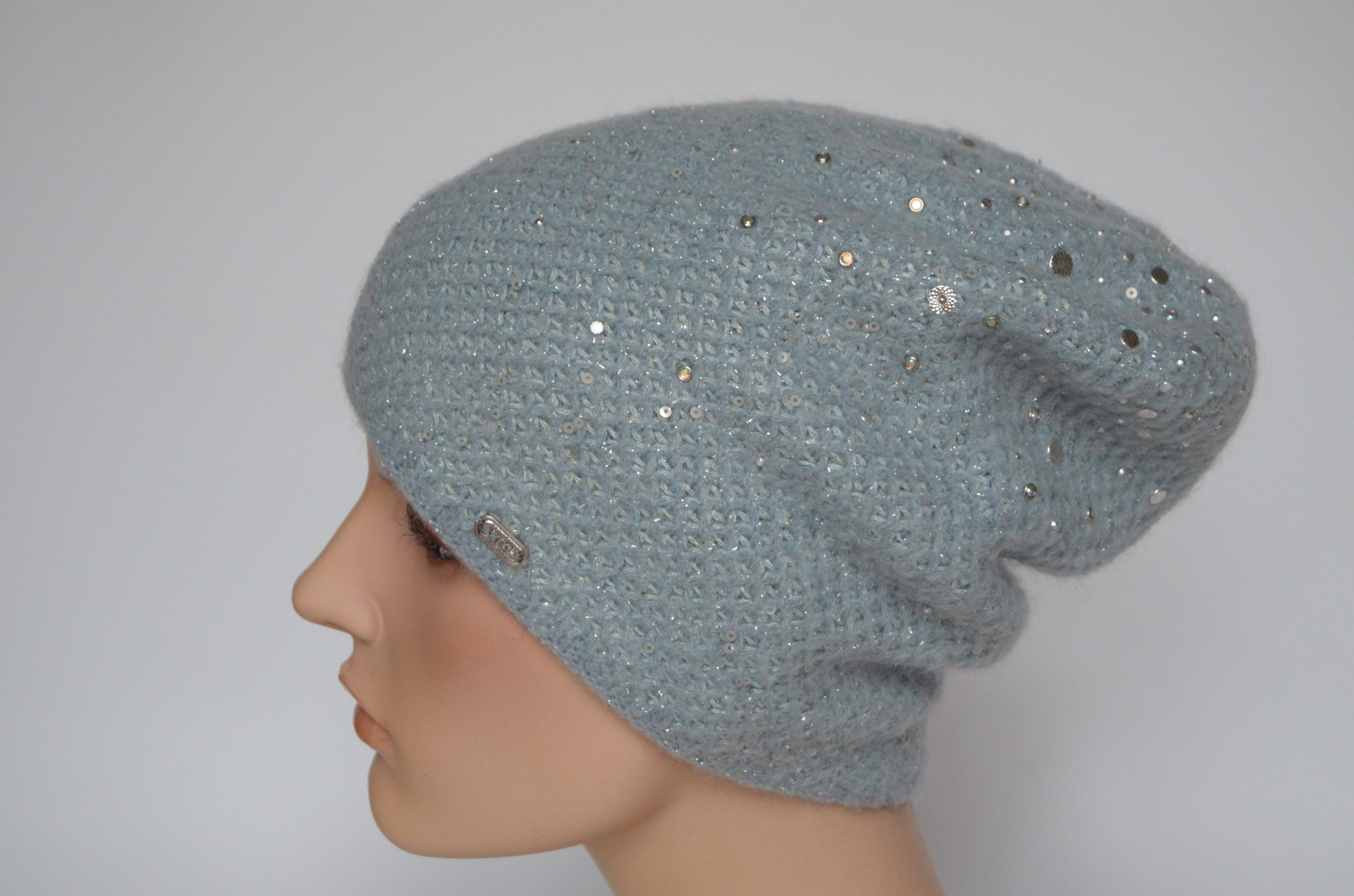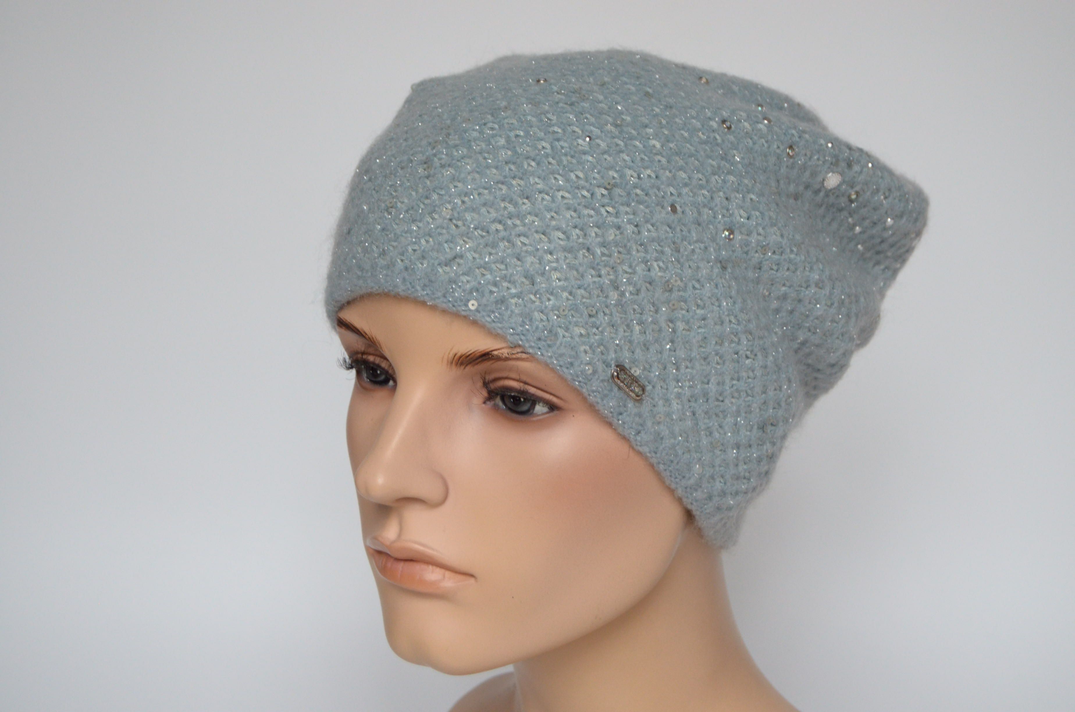 Шапка голубого цвета вязаная для женщин Италия Визио Vizio 6161 коллекция вязаных женских головных уборов Vizio Collezione купить в интернет магазине женских шапок и беретов