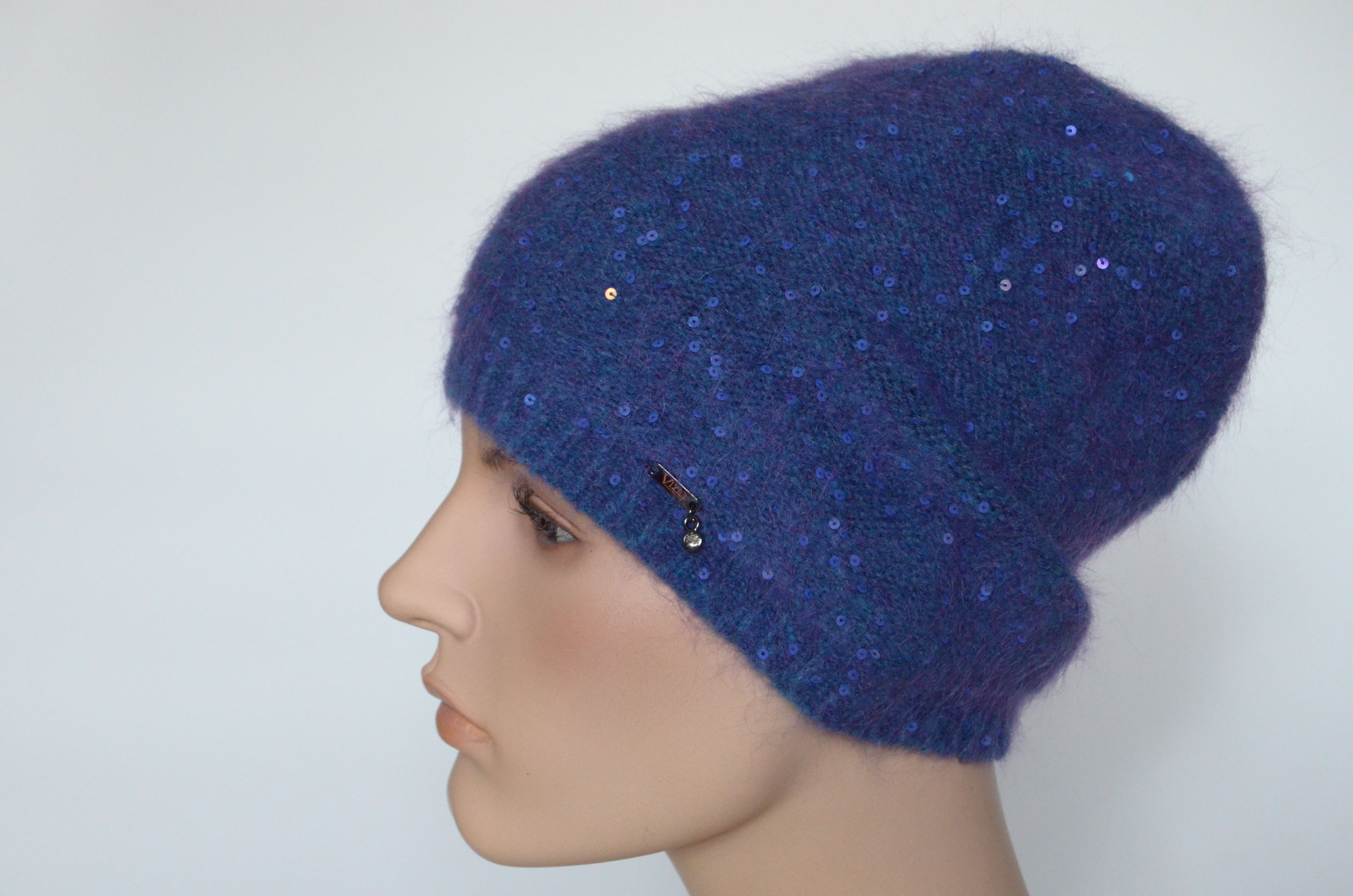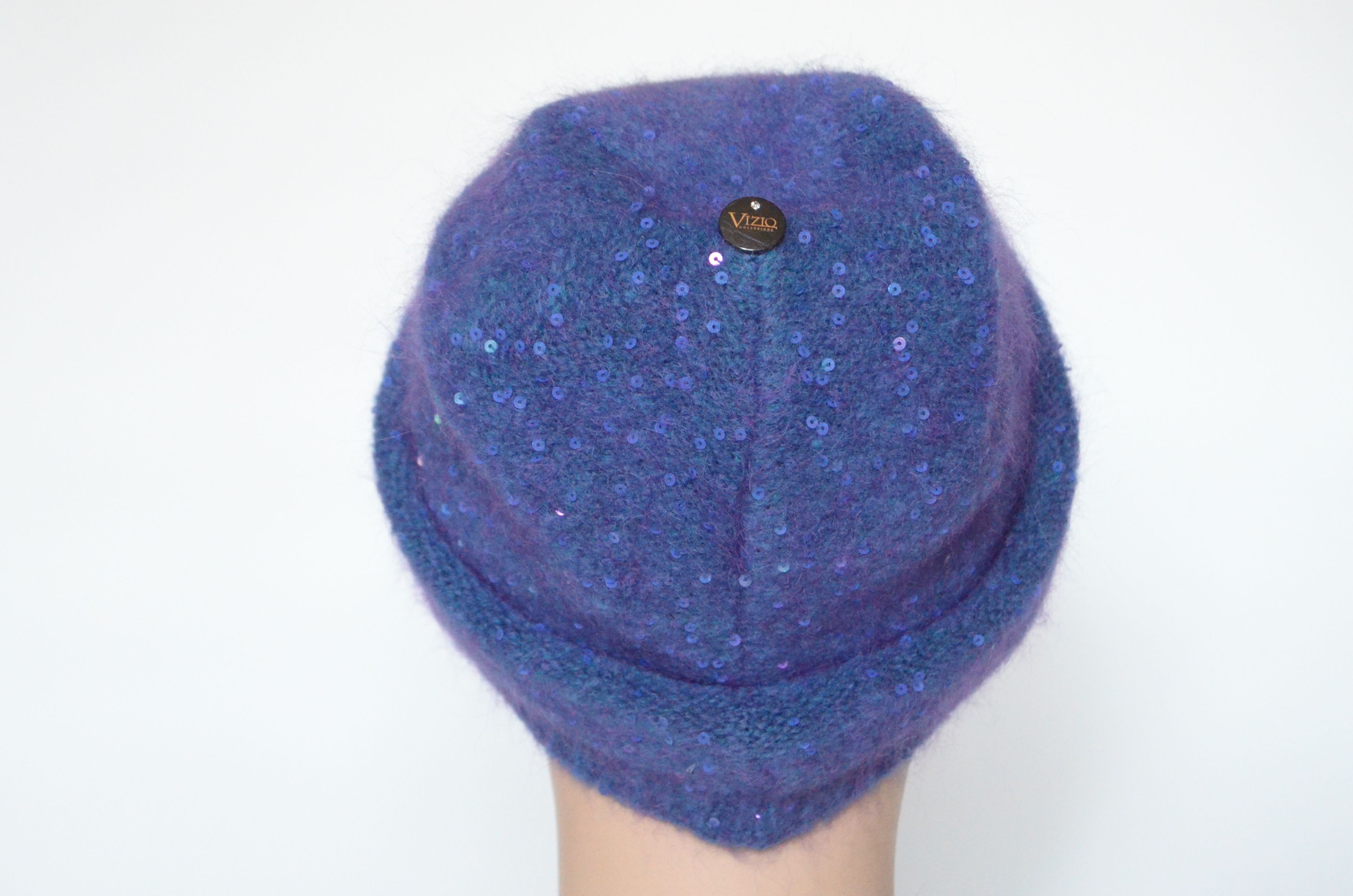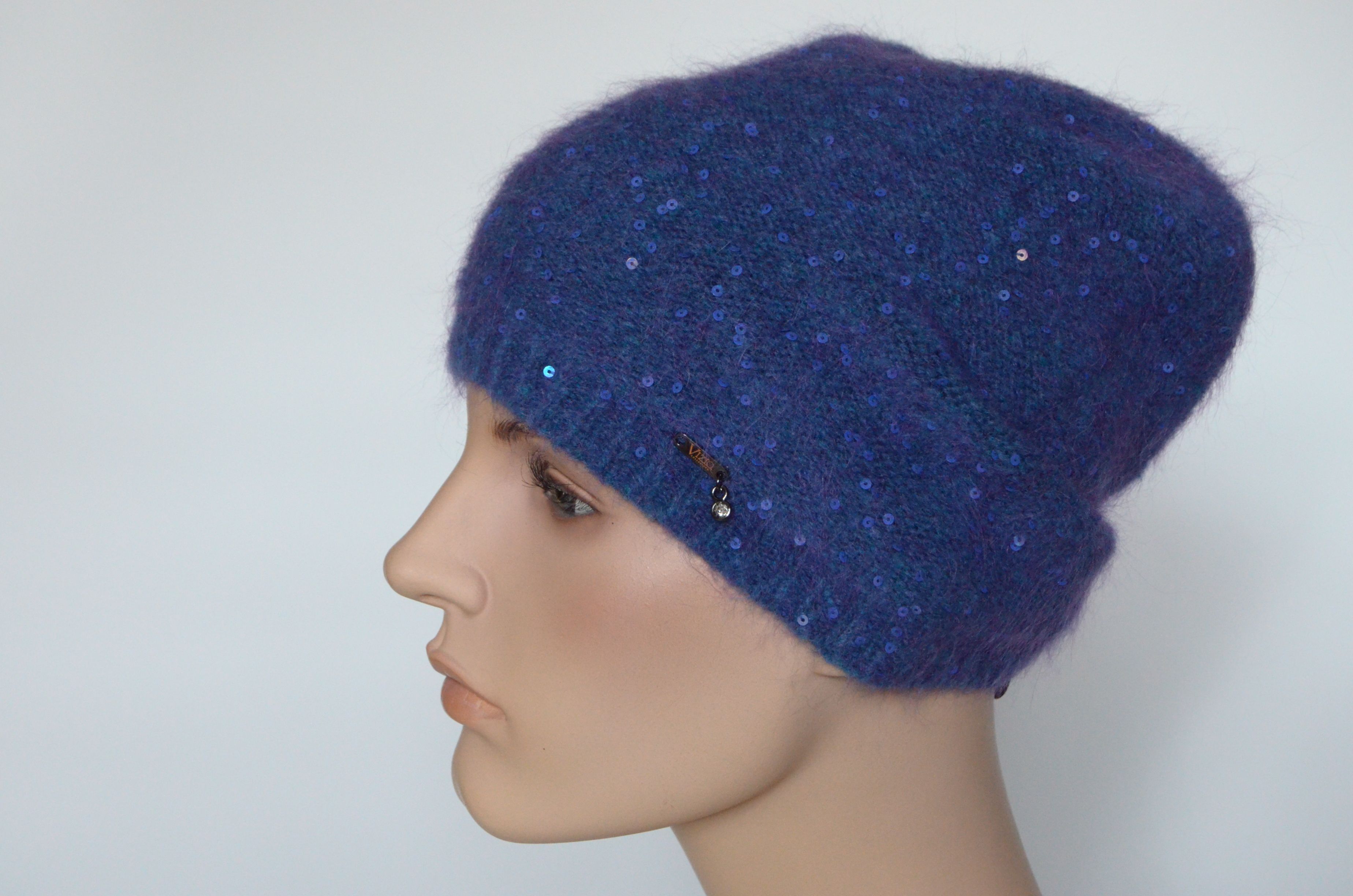 Голубая шапка тонкая зимняя с пайетками для женщин Vizio Италия 6948 купить из новой коллекции итальянских женских шапок Визио для женщин осень - зима - весна 2021 - 2022
