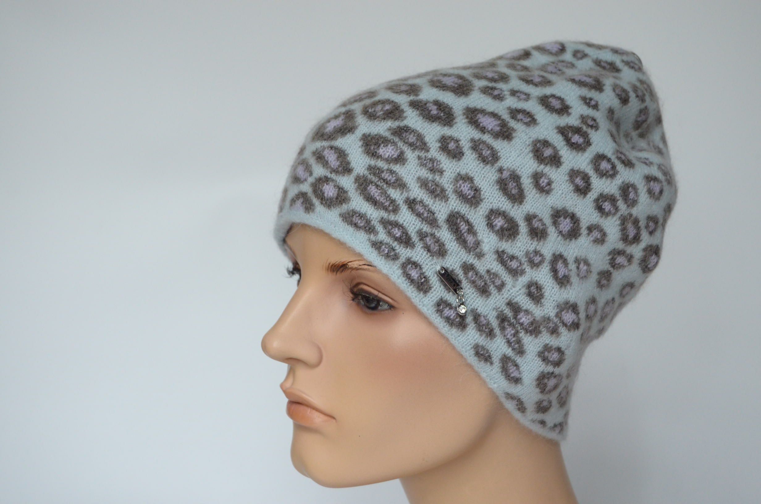 Купить голубую шапку вязаную женскую леопард в интернет магазине итальянских шапок и беретов Vizio Collezione с доставкой по Москве и России
