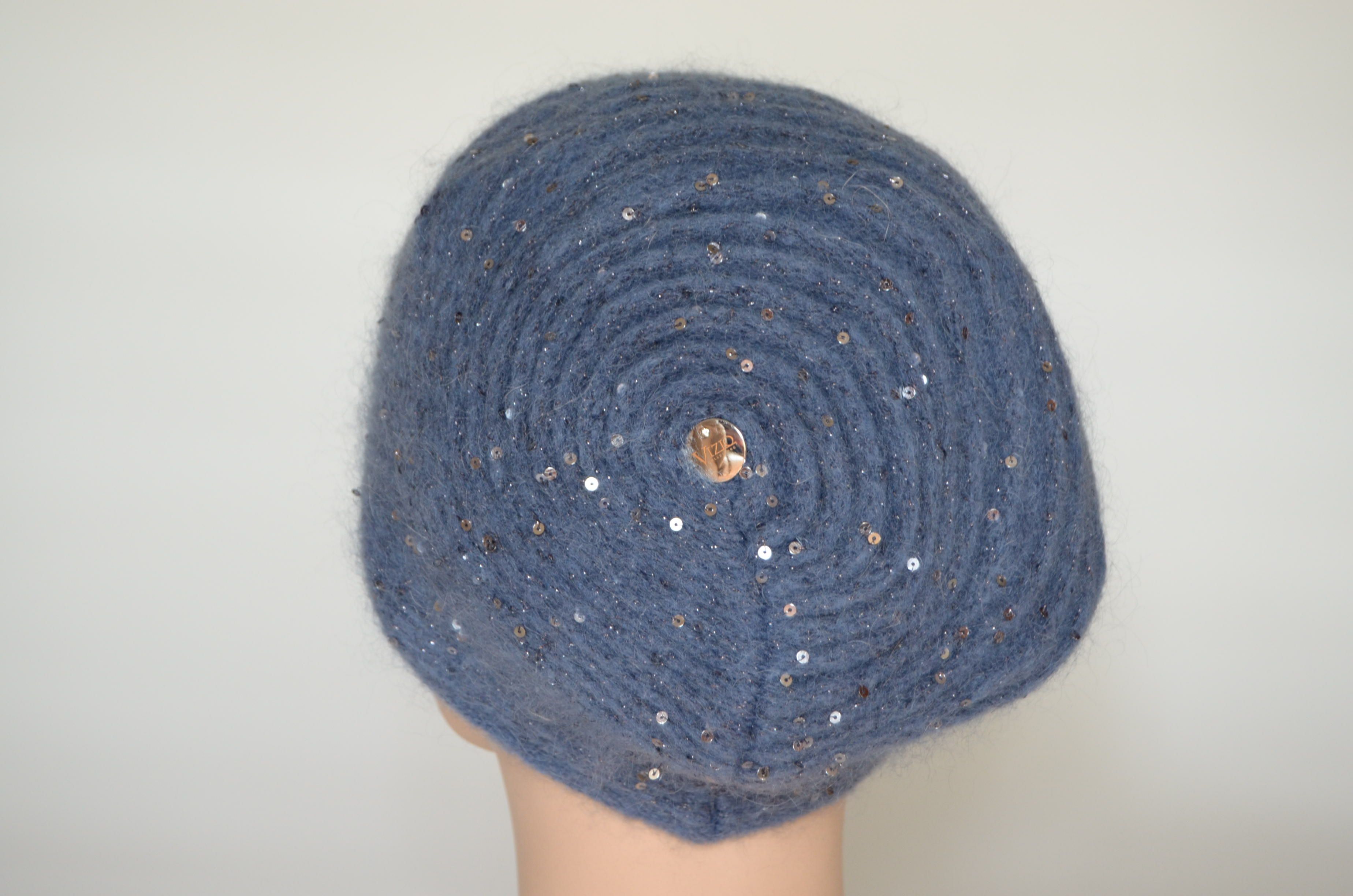 Приобрести голубой берет женский вязаный полосами с пайетками Vizio Италия осень - зима 2021 - 2022 в интернет магазине итальянских шапок и беретов для женщин