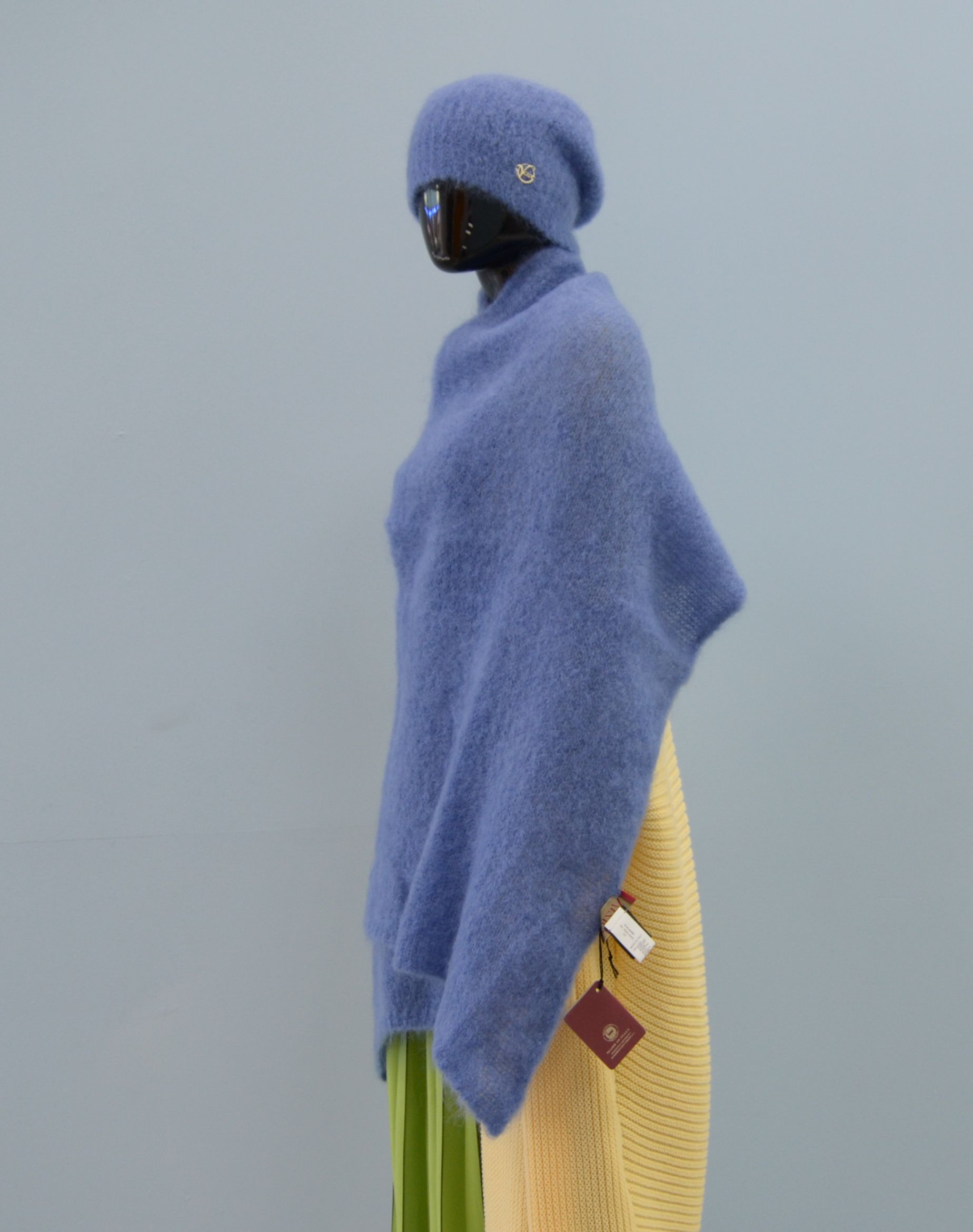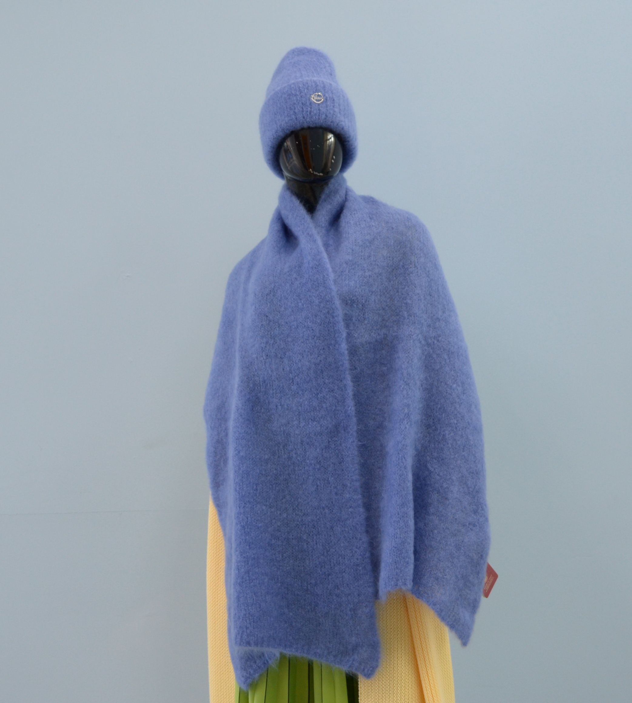Приобрести мохеровый вязаный голубой палантин женский Vizio Италия в интернет магазине итальянских шарфов и шапок Vizio Collezione