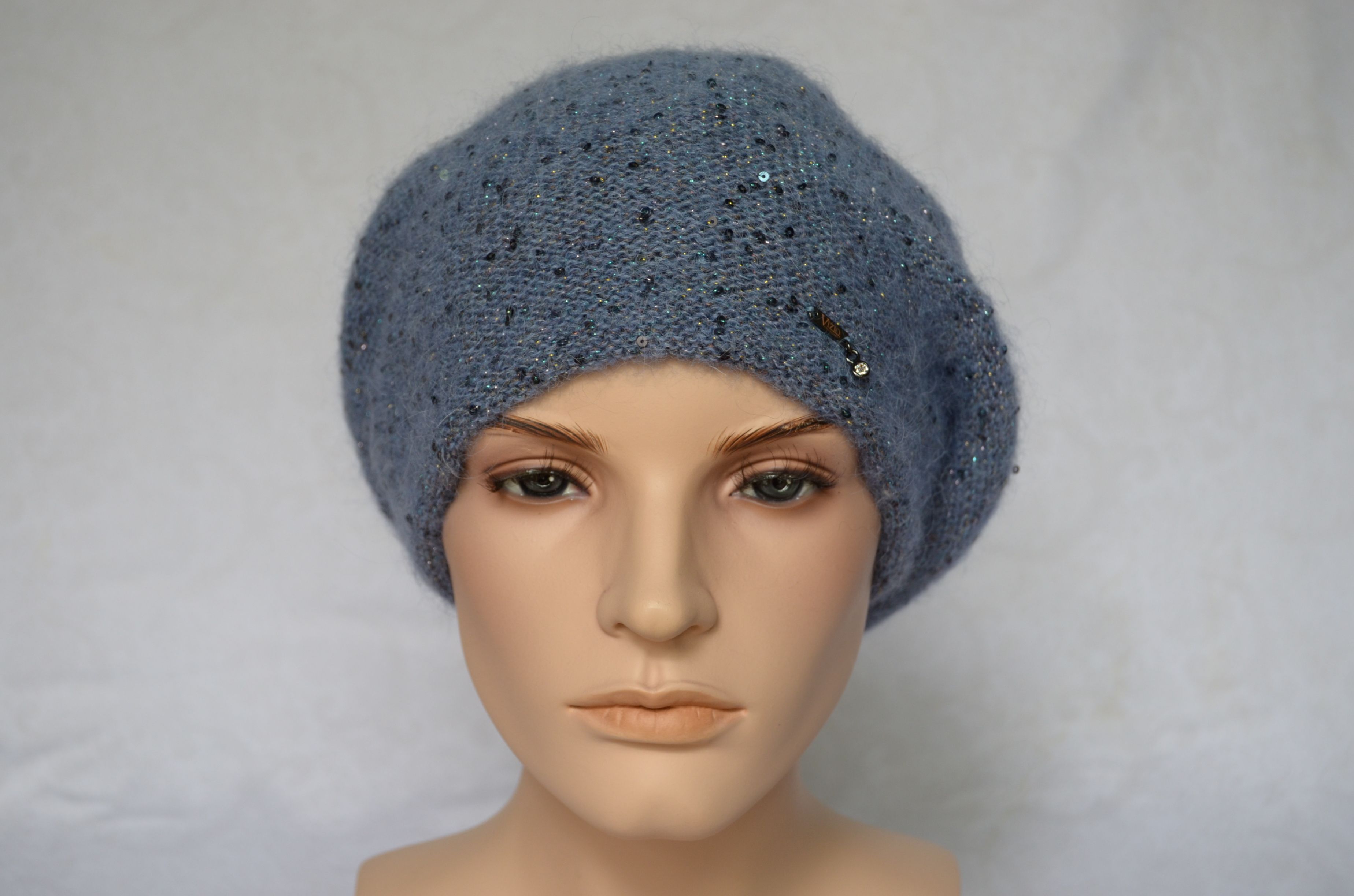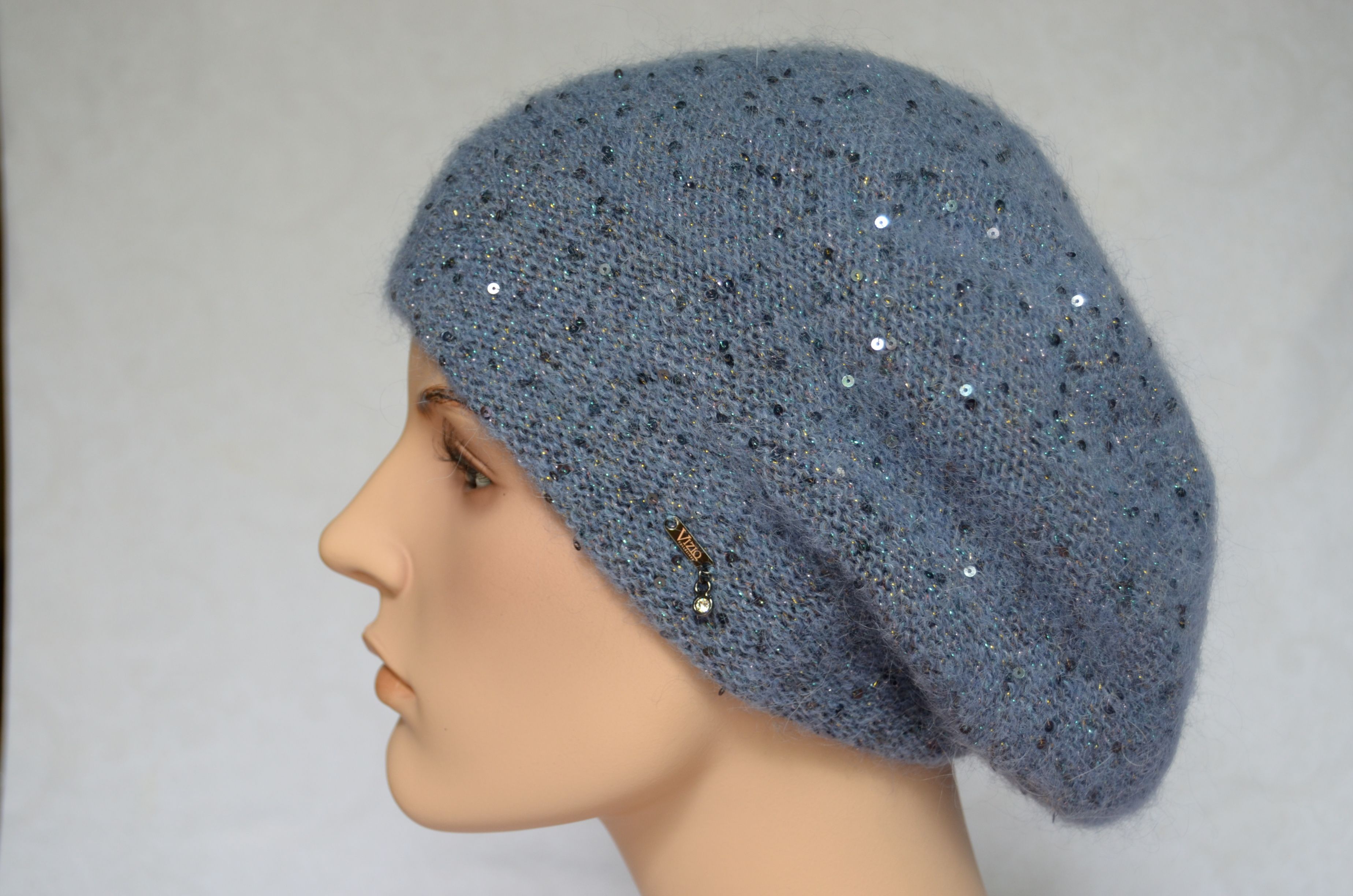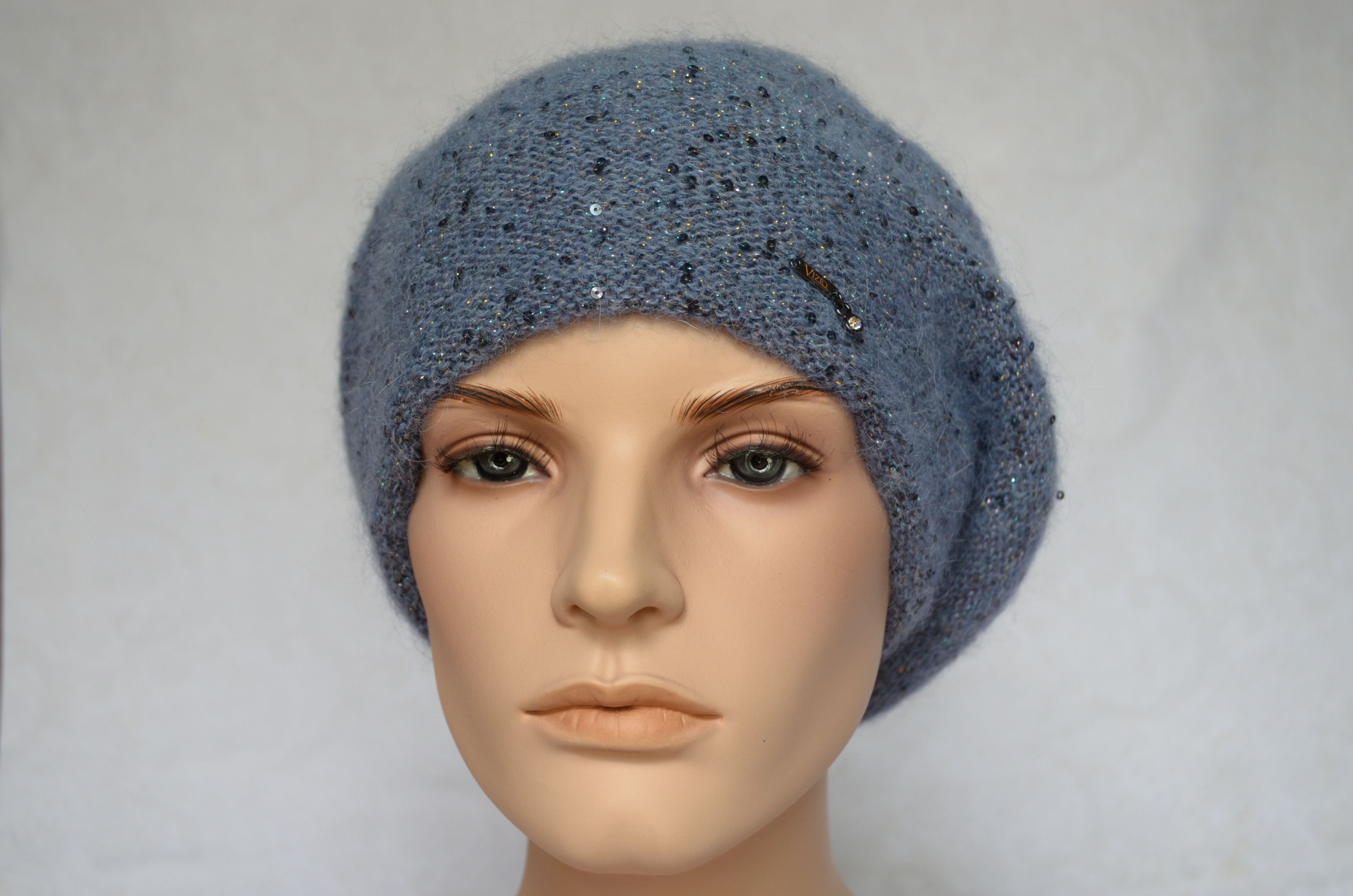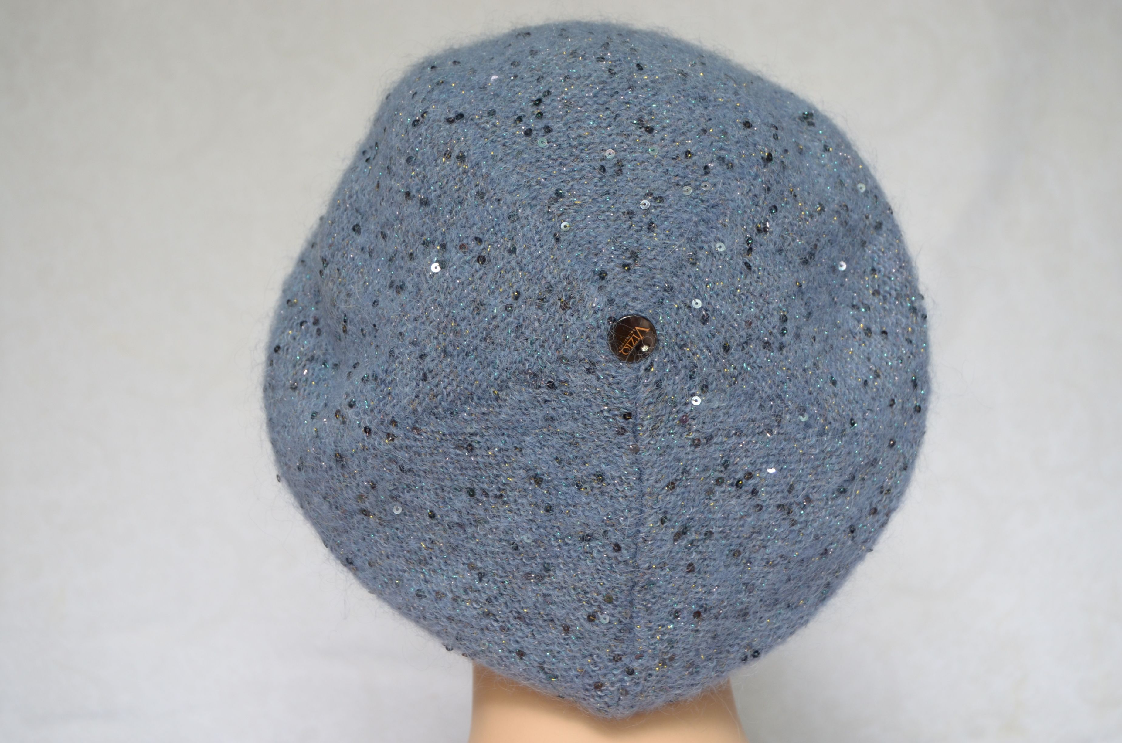 Голубой вязаный берет с пайетками для женщин Vizio Италия 6917 зимняя коллекция женских беретов зима 2021 - 2022 купить в интернет магазине итальянских головных уборов для женщин Визио с доставкой по Москве и России