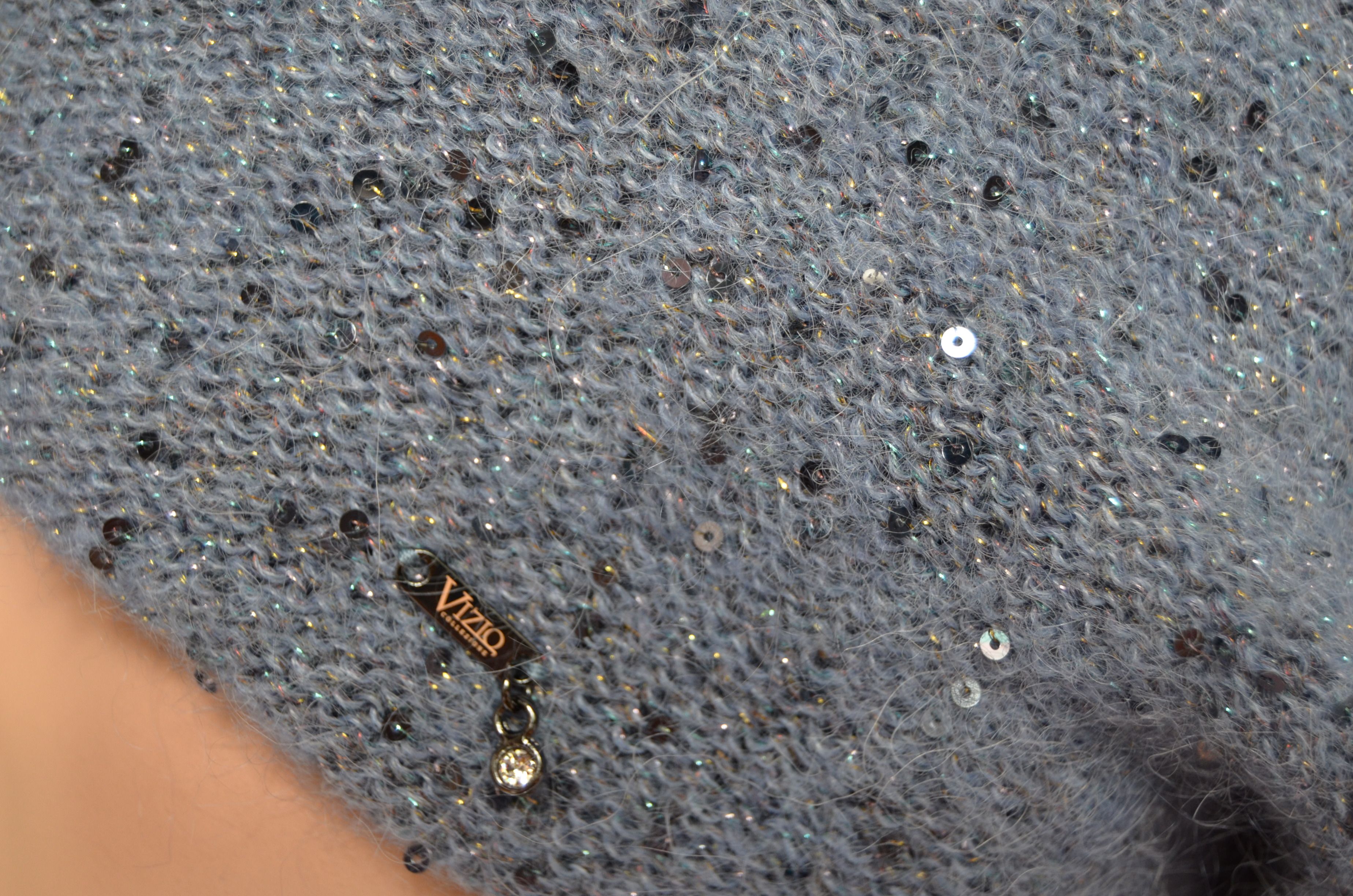 Вязаный зимний берет голубого цвета с пайетками для женщин Vizio Италия 6917 новая коллеция итальянских женских головных уборов Визио осень - зима 2021 - 2022