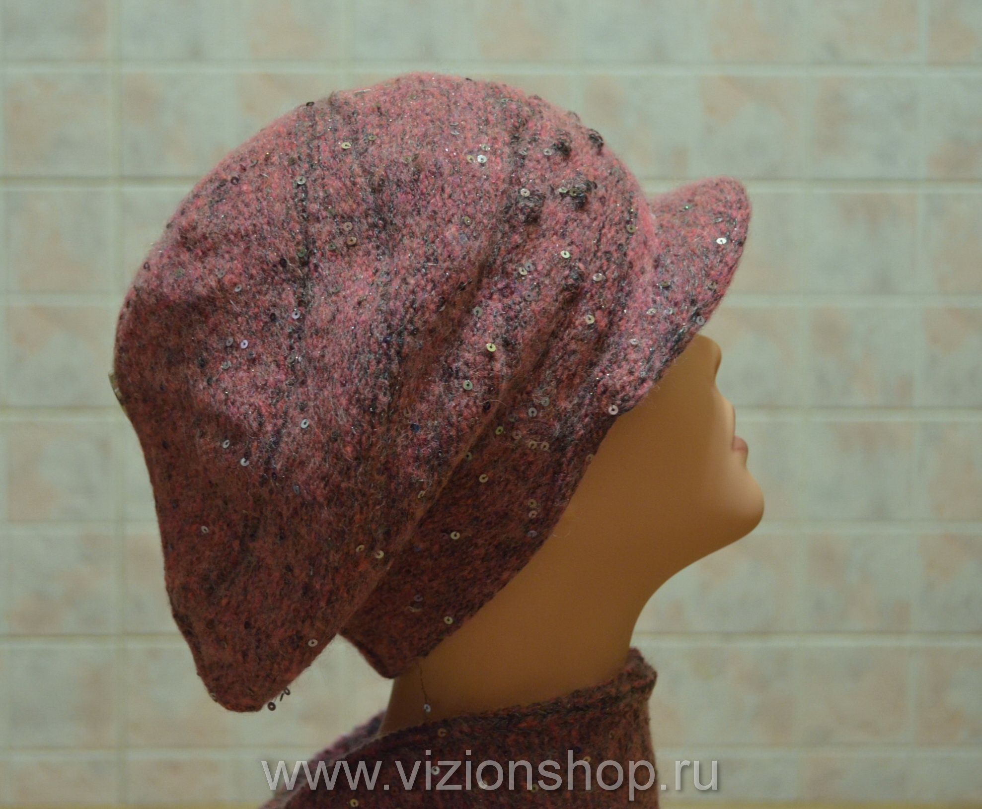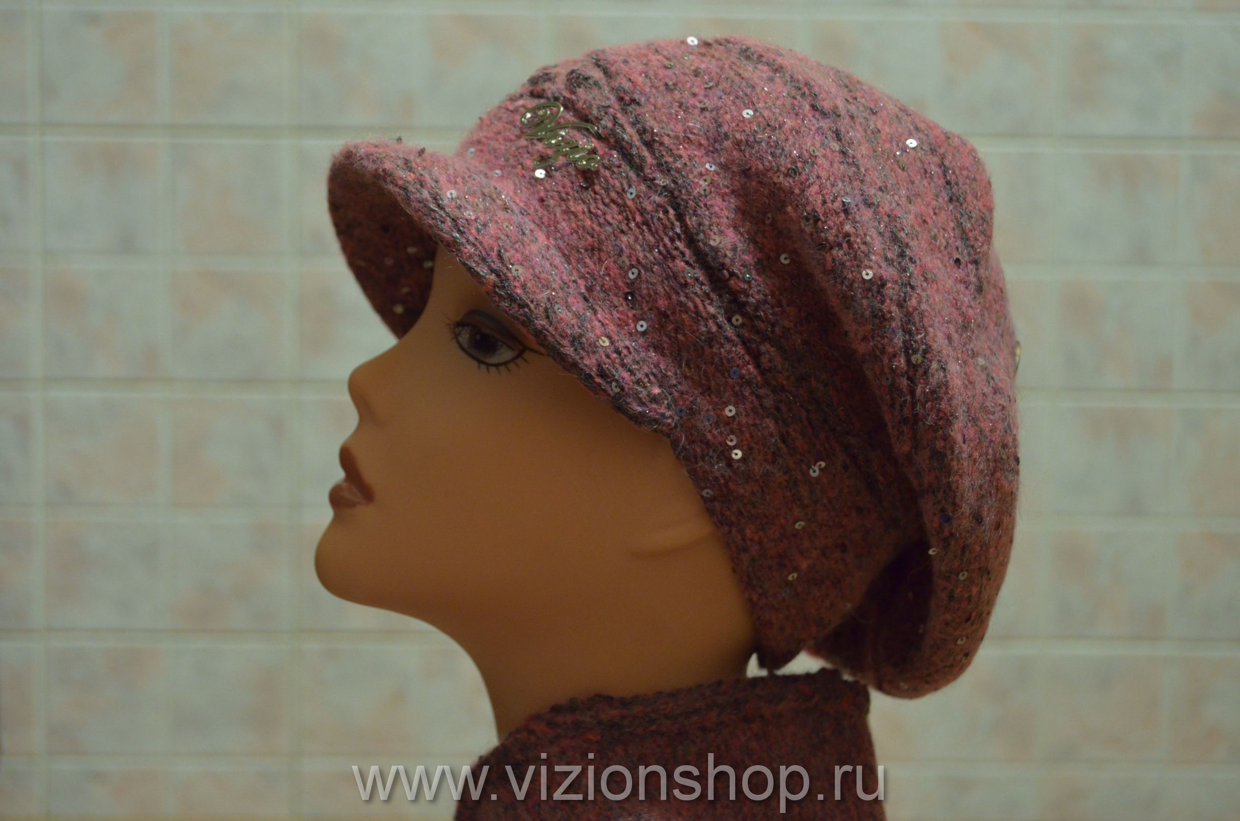Кепка итальянская женская с пайетками и шарф Италия Vizio 5312 розового цвета цвета