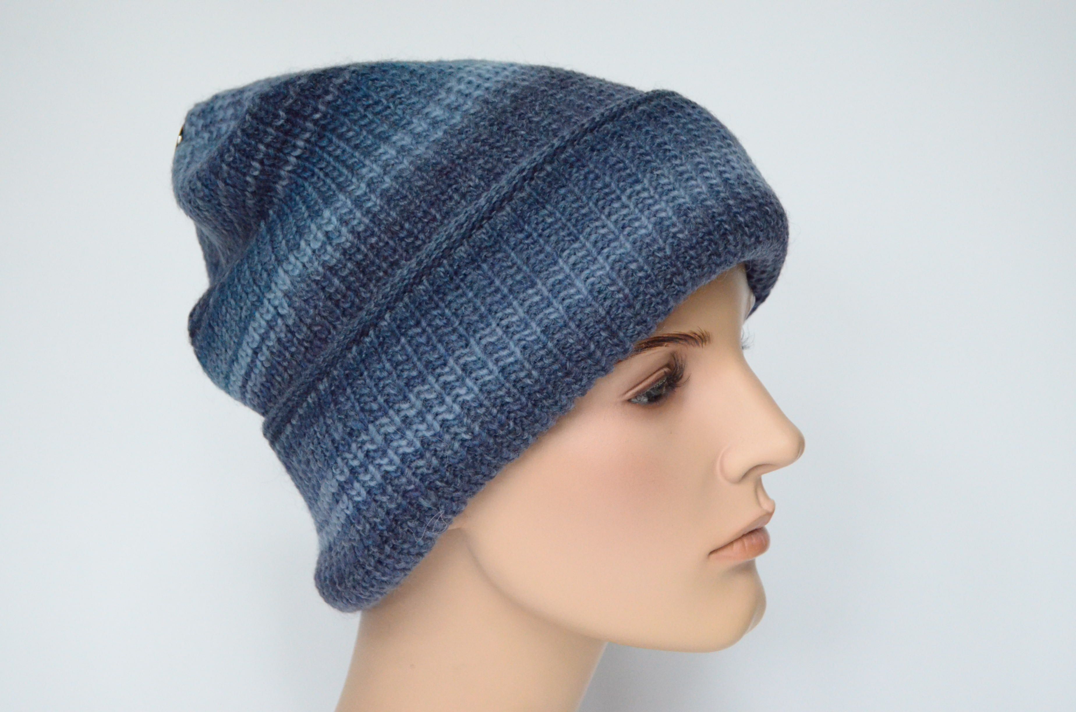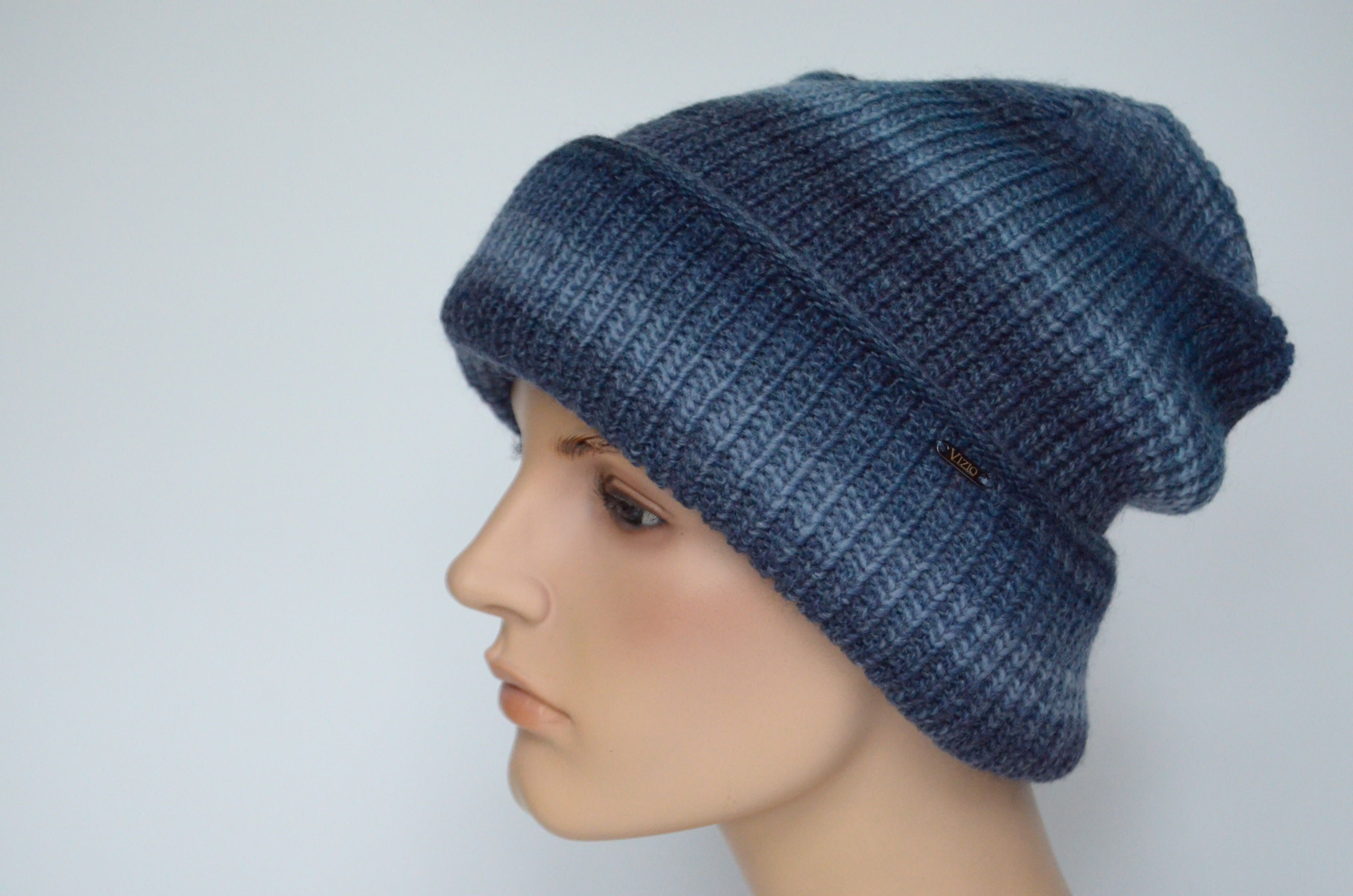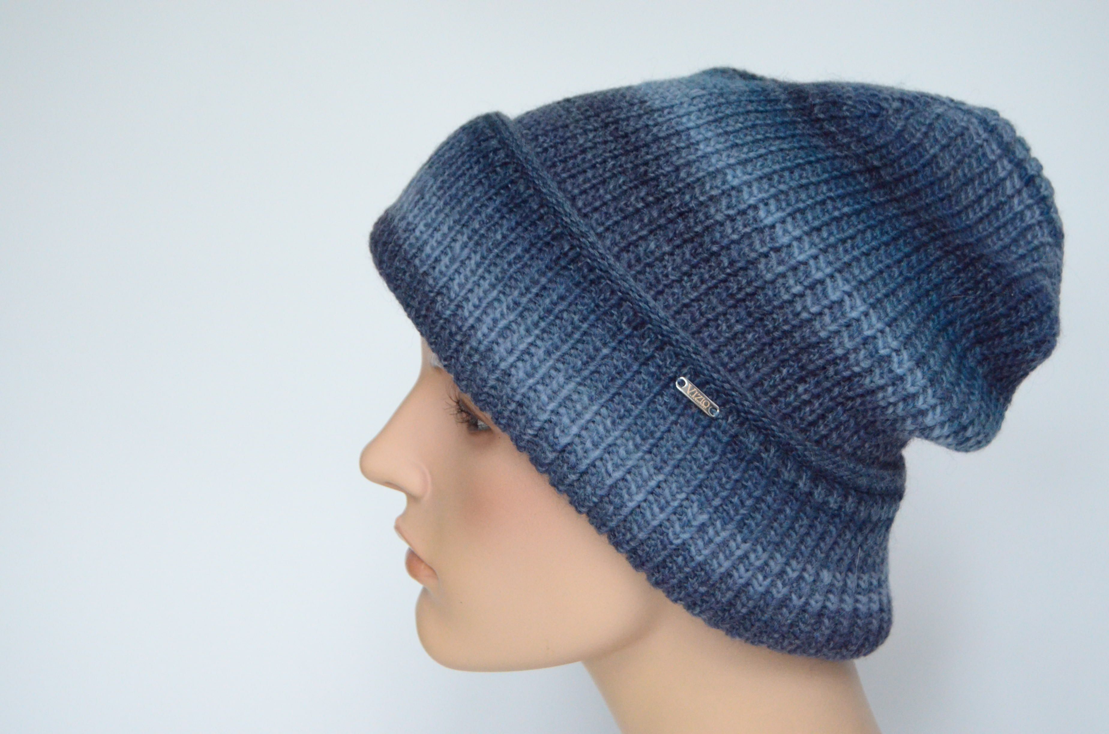 Вязаная женская синяя шапка с отворотом Италия Vizio 110 CRY зимняя шапка итальянского производителя головных уборов Vizio Collezione зима 2022 - 2023