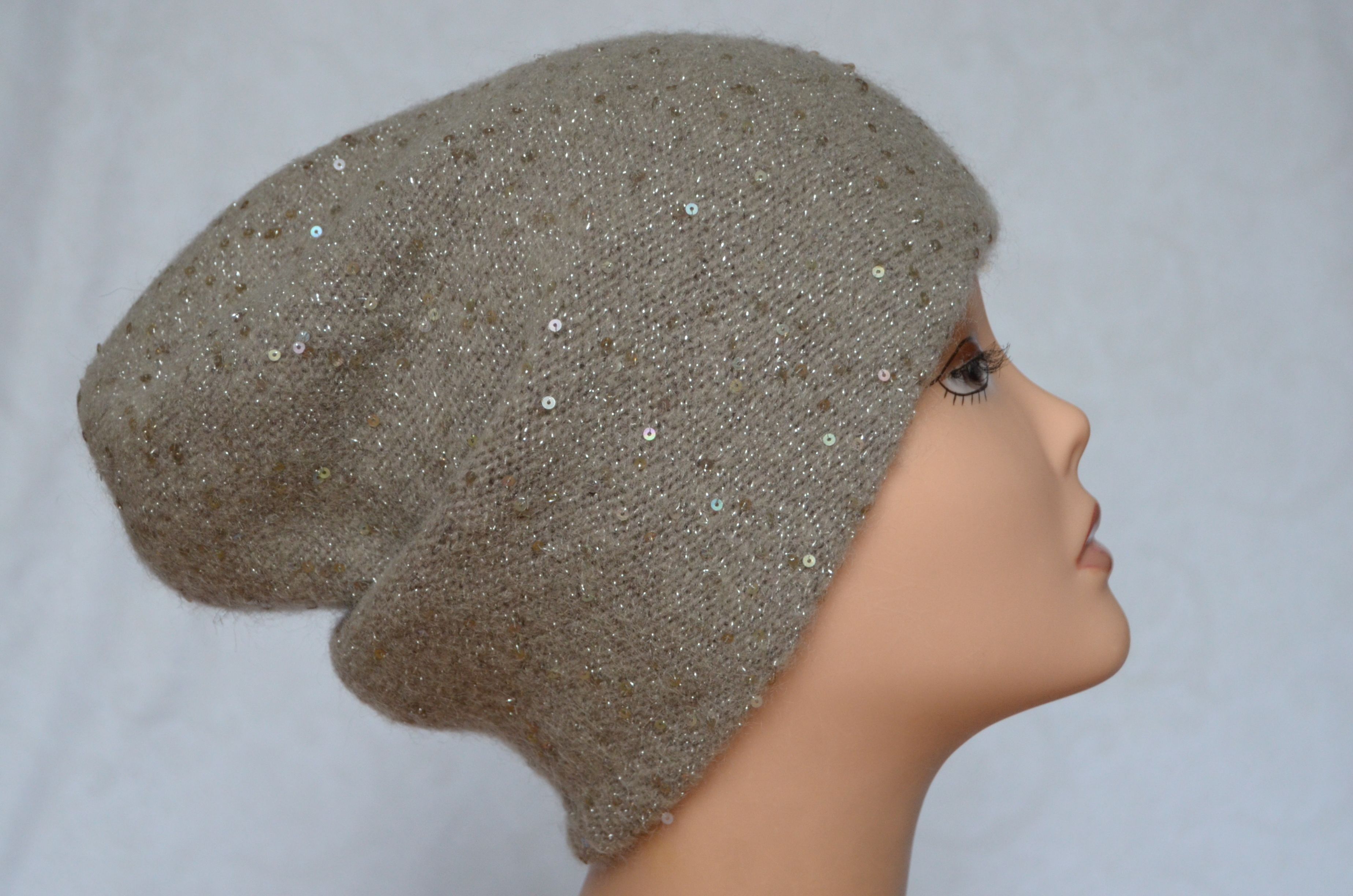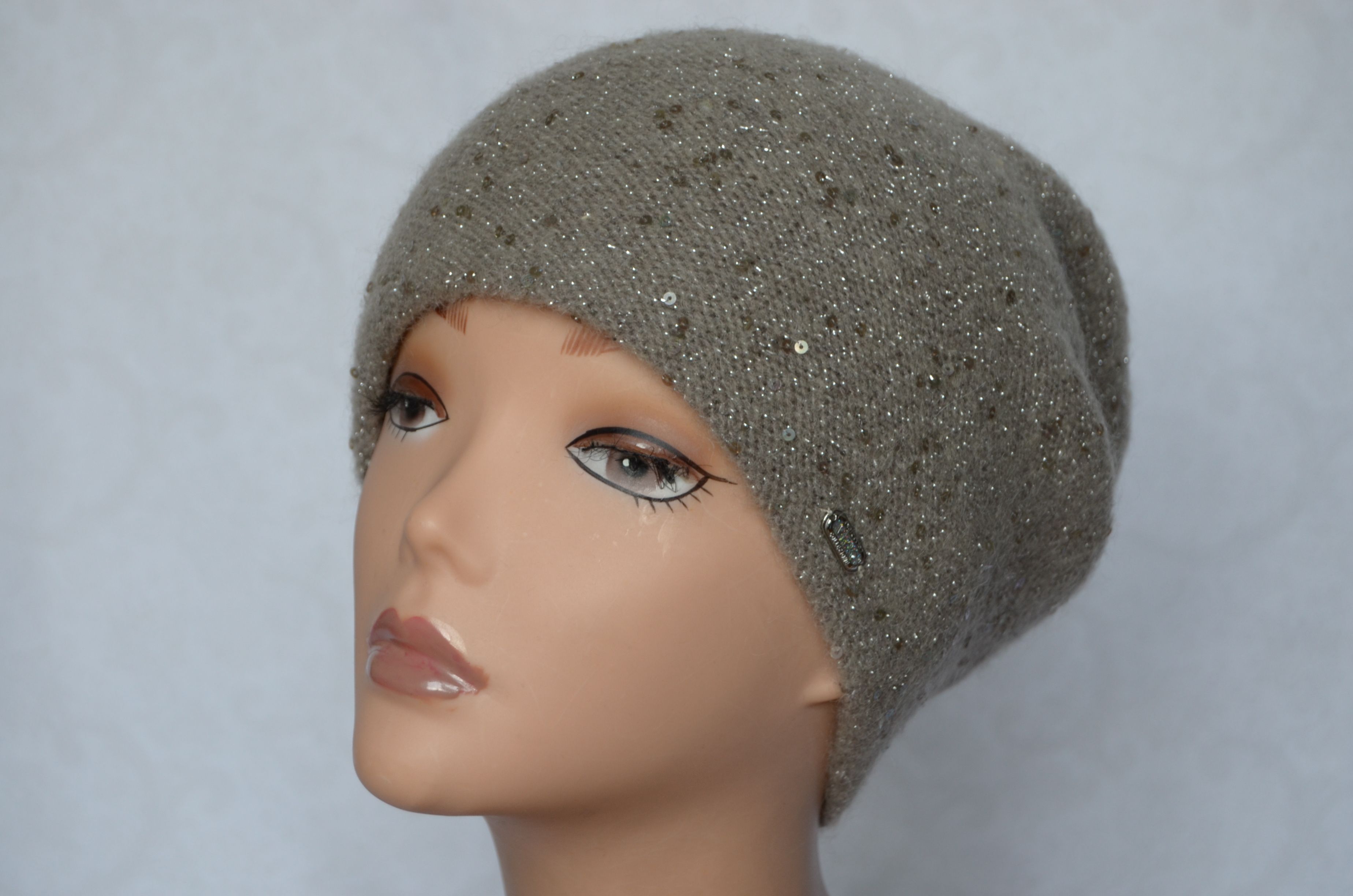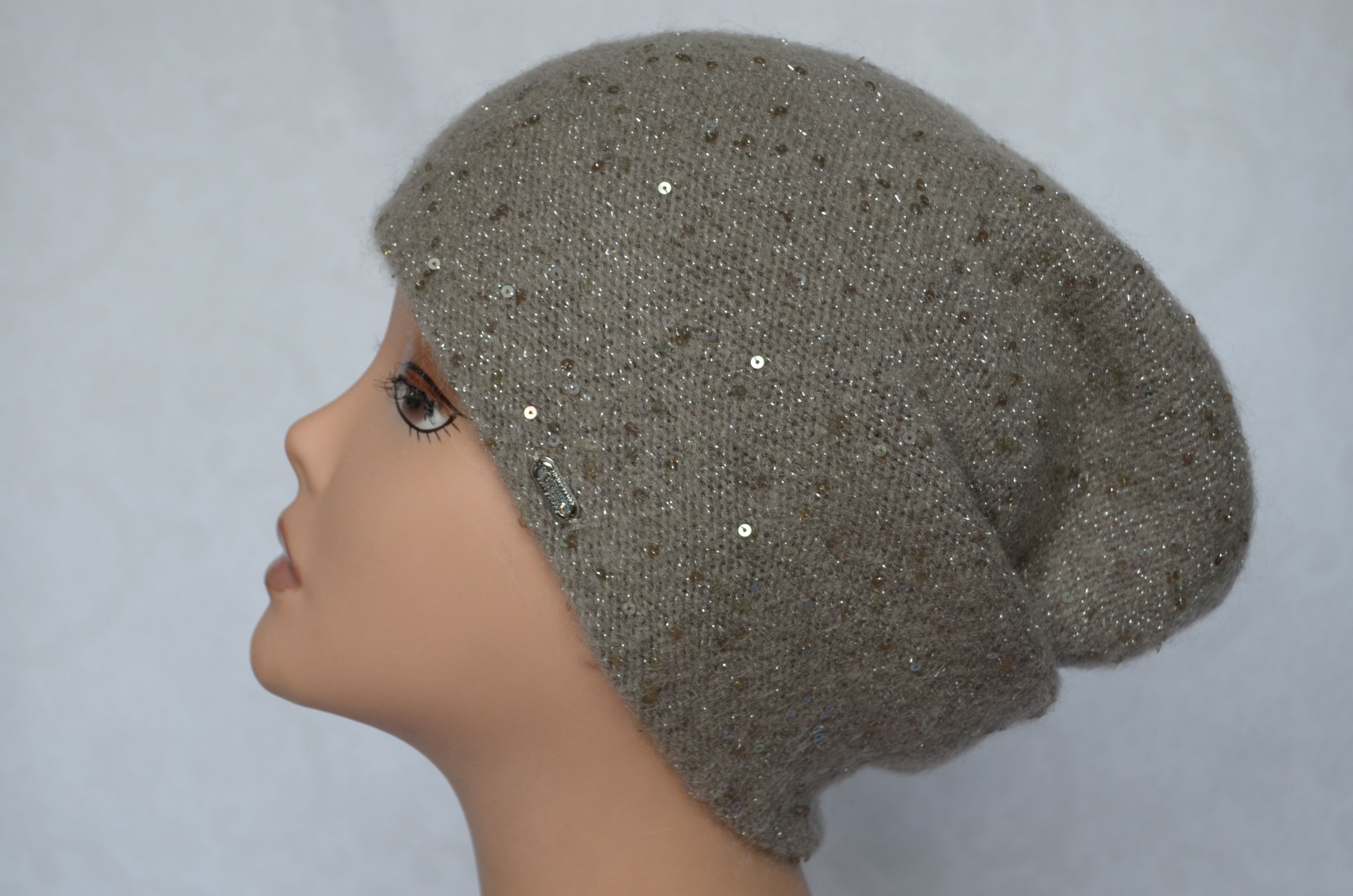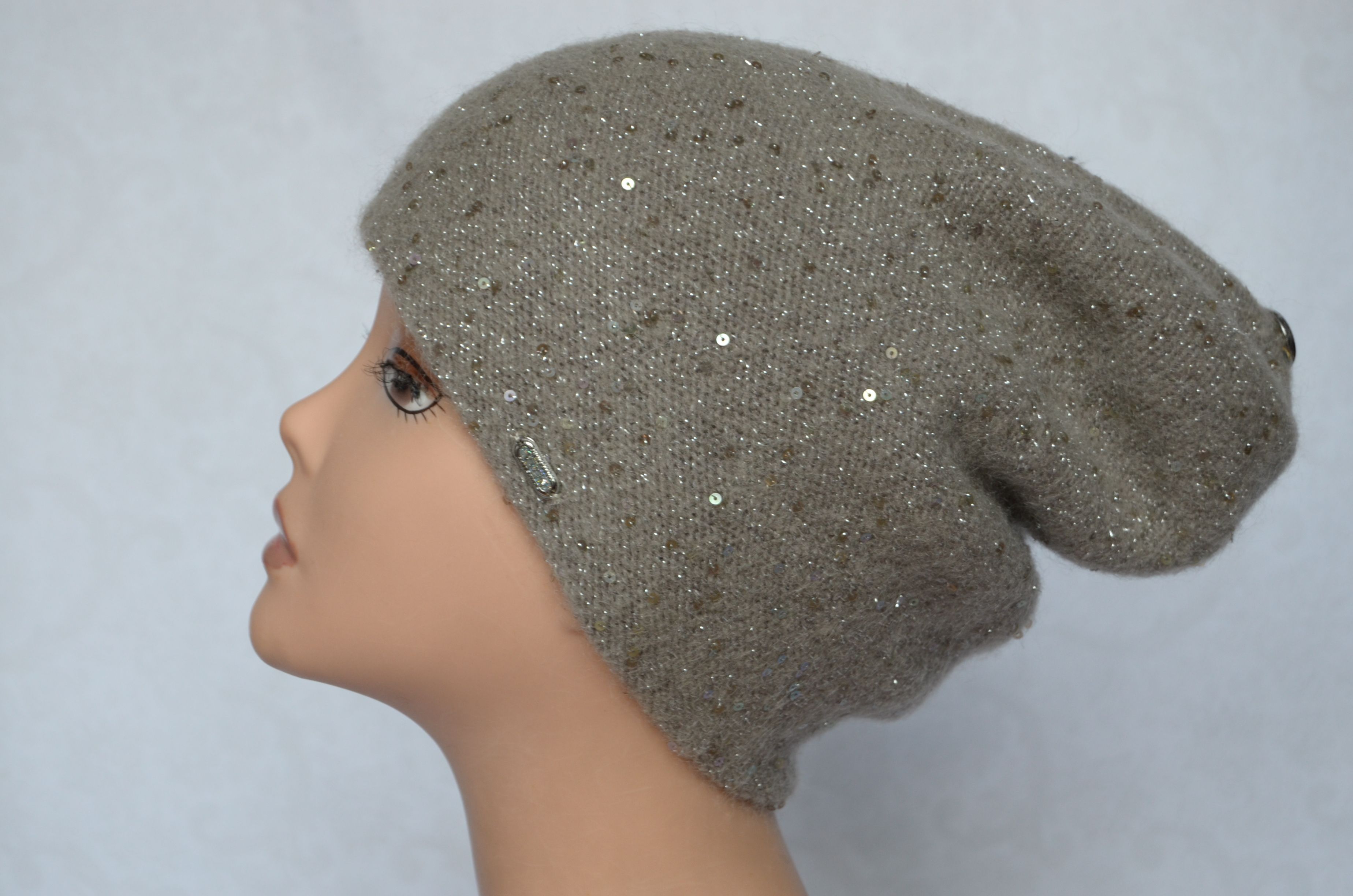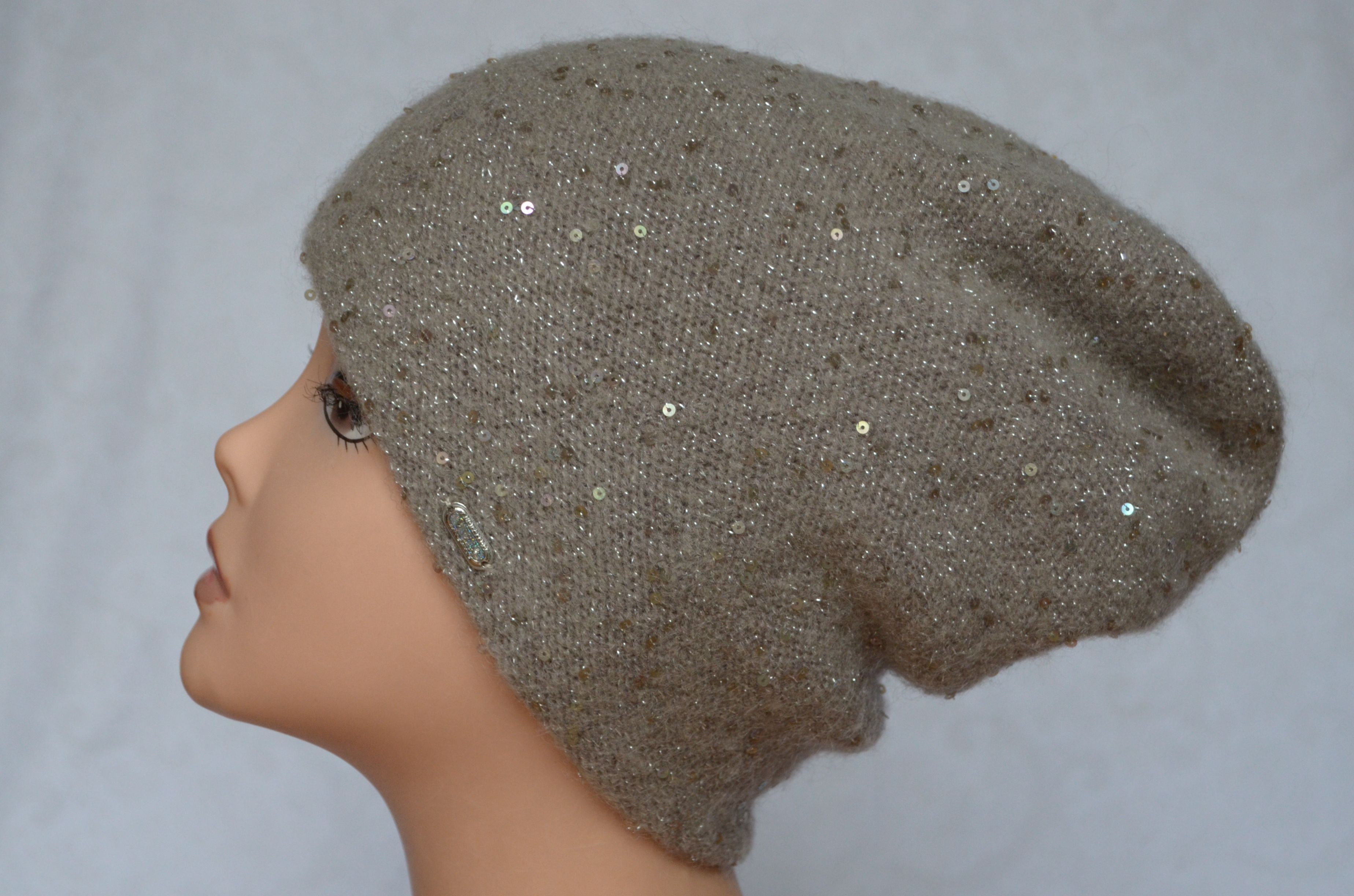 Состав шапки: мохер 35 %, полиамид 25 %, шерсть 32 %, пайетки, полиэстер 6 %, эластан 2 %