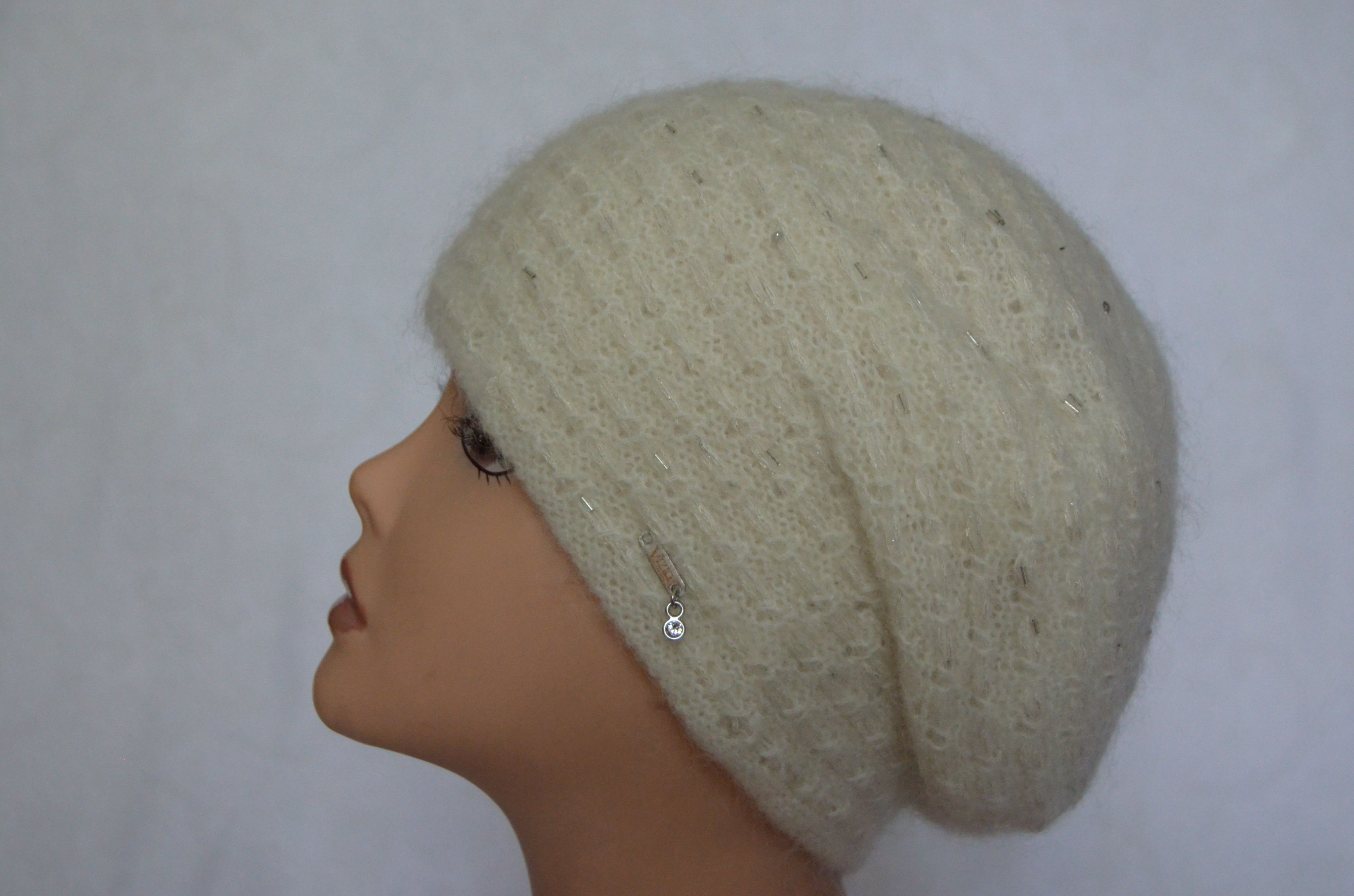 Зимний берет вязаный с украшениями стеклярусом для женщин Италия Vizio 6726 коллекция итальянских беретов и шапок Vizio Collezione в магазине женских головных уборов в Москве и с бесплатной доставкой по России