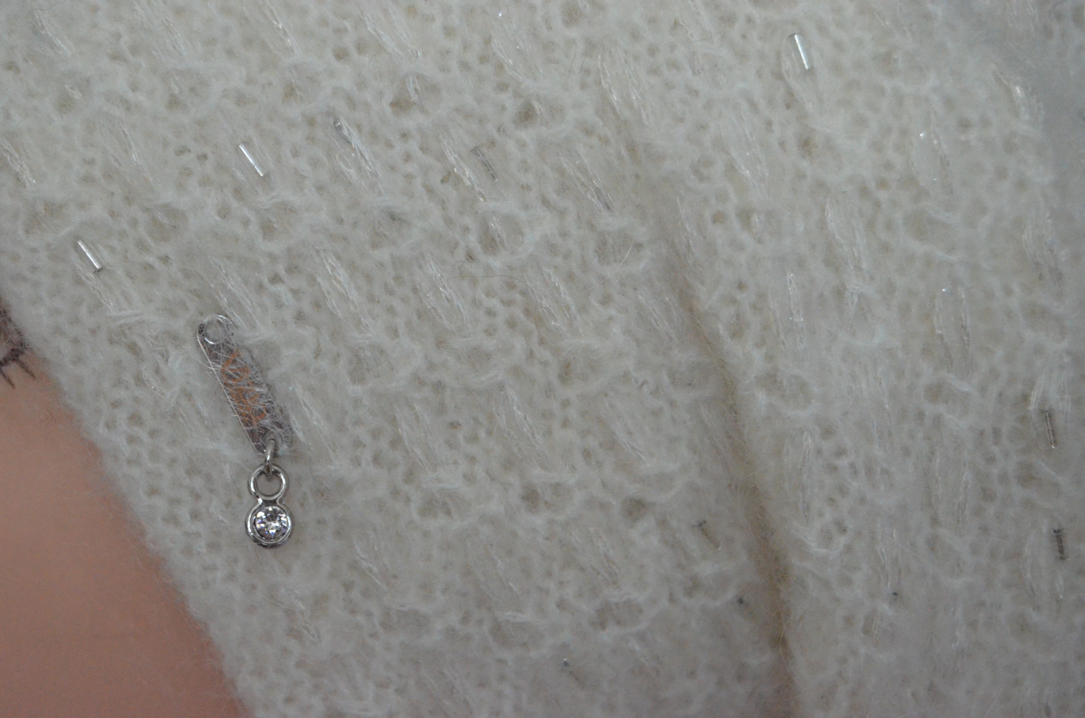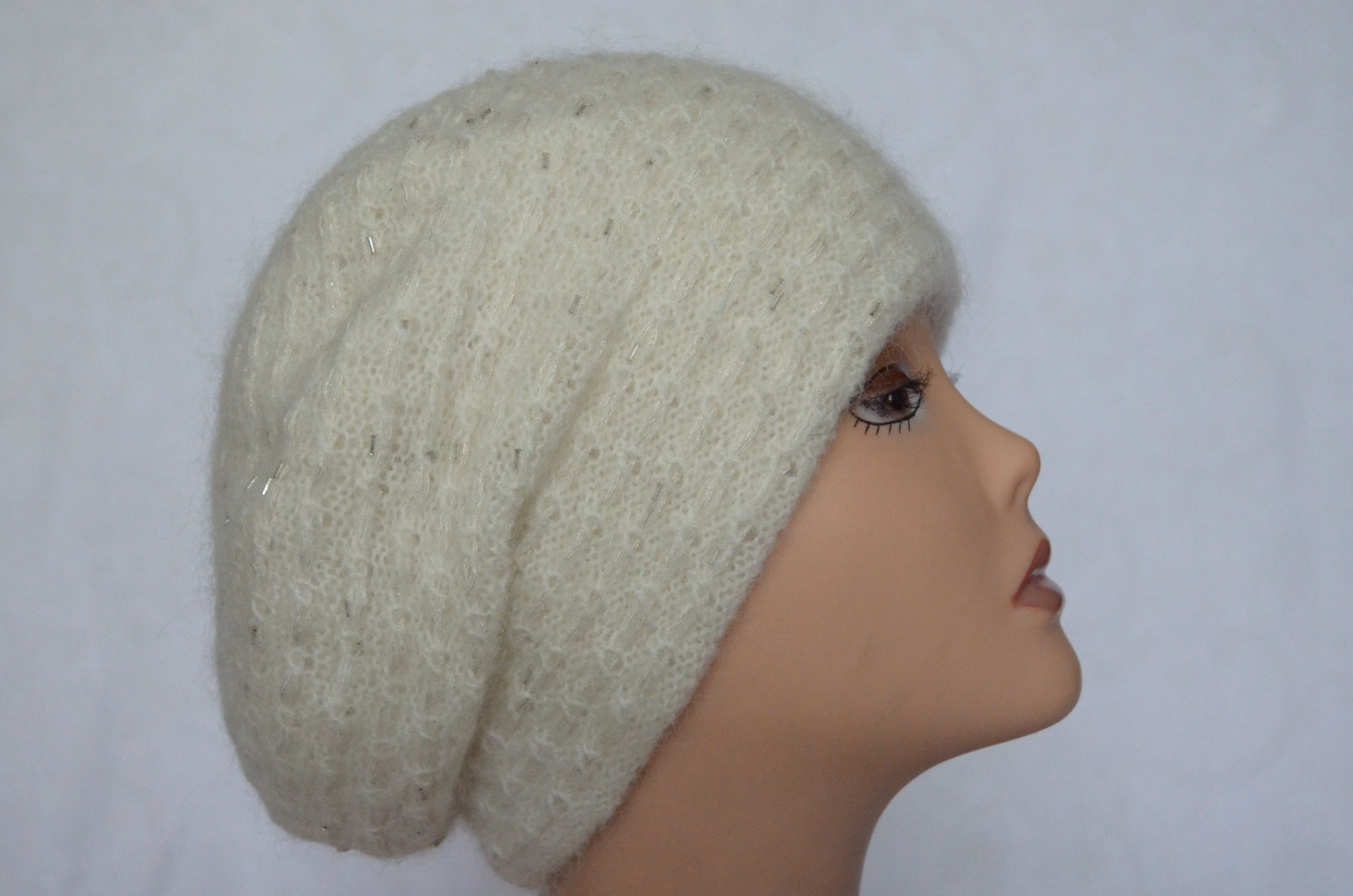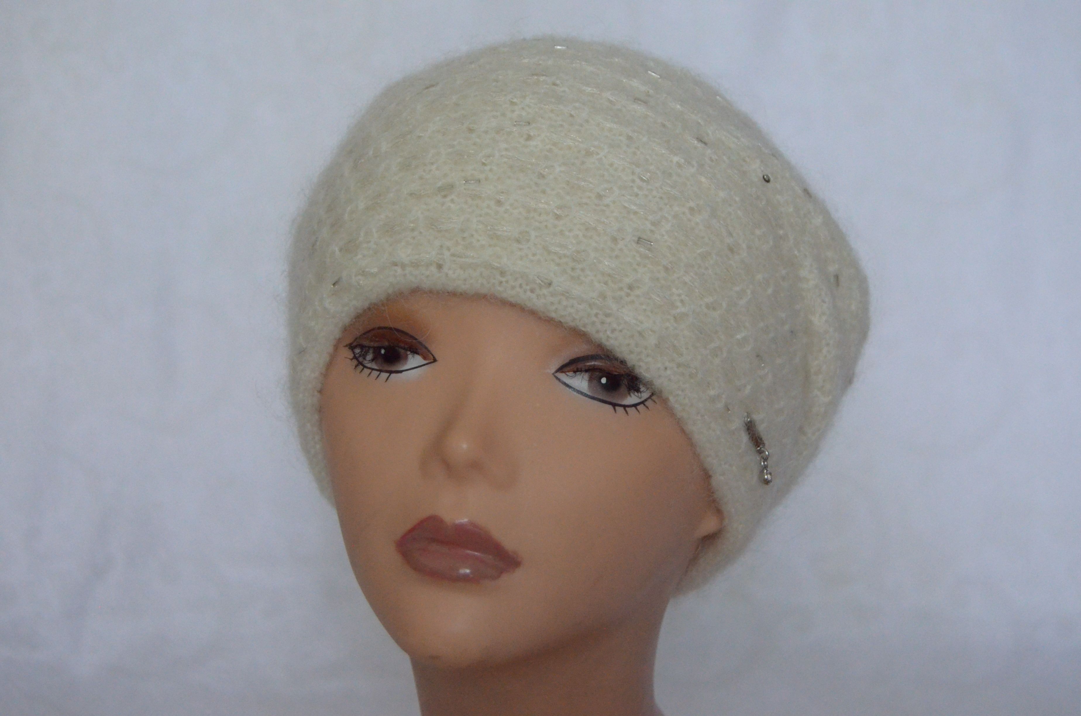 Женский вязаный берет зимний белый со стеклярусом