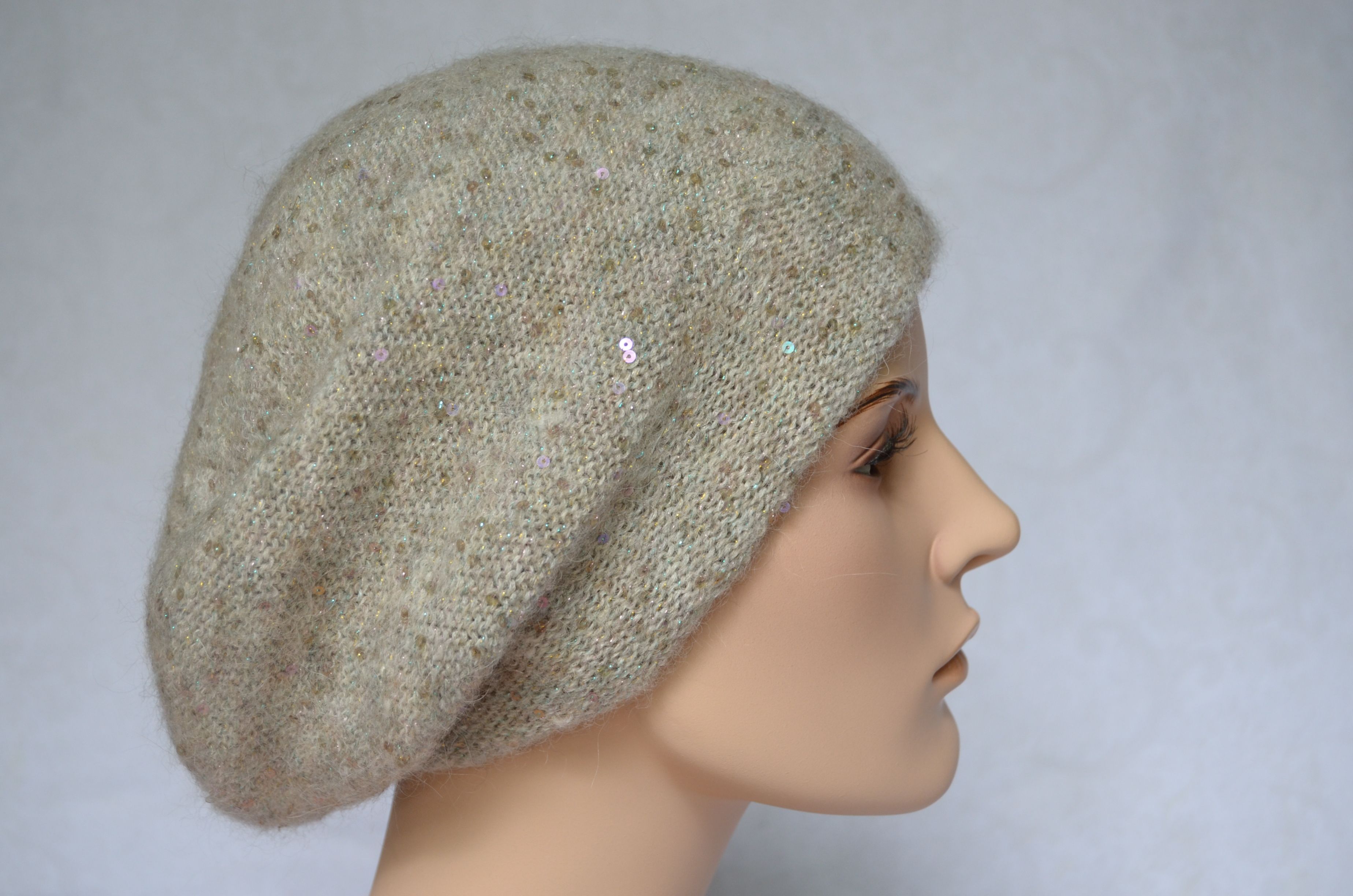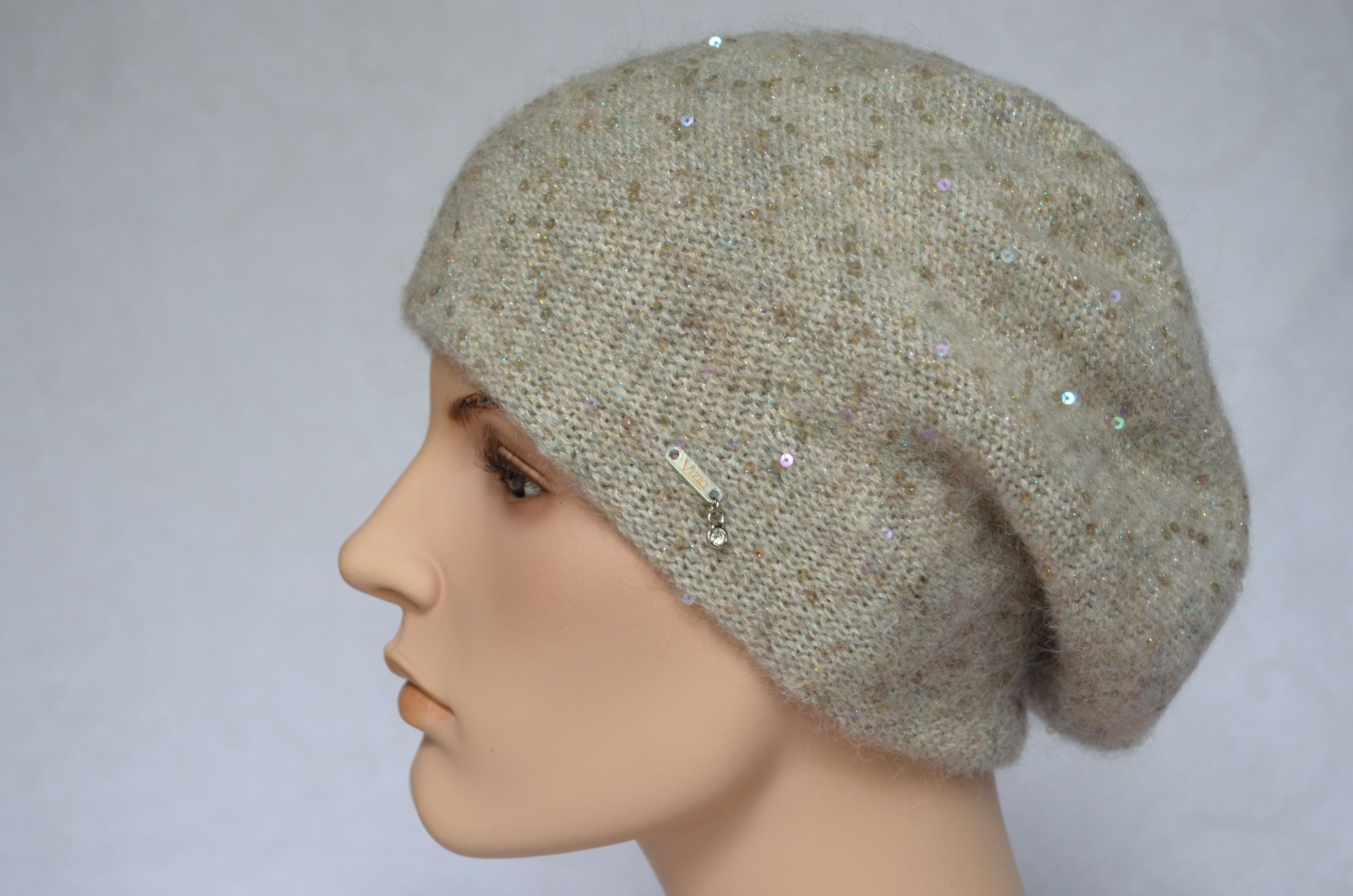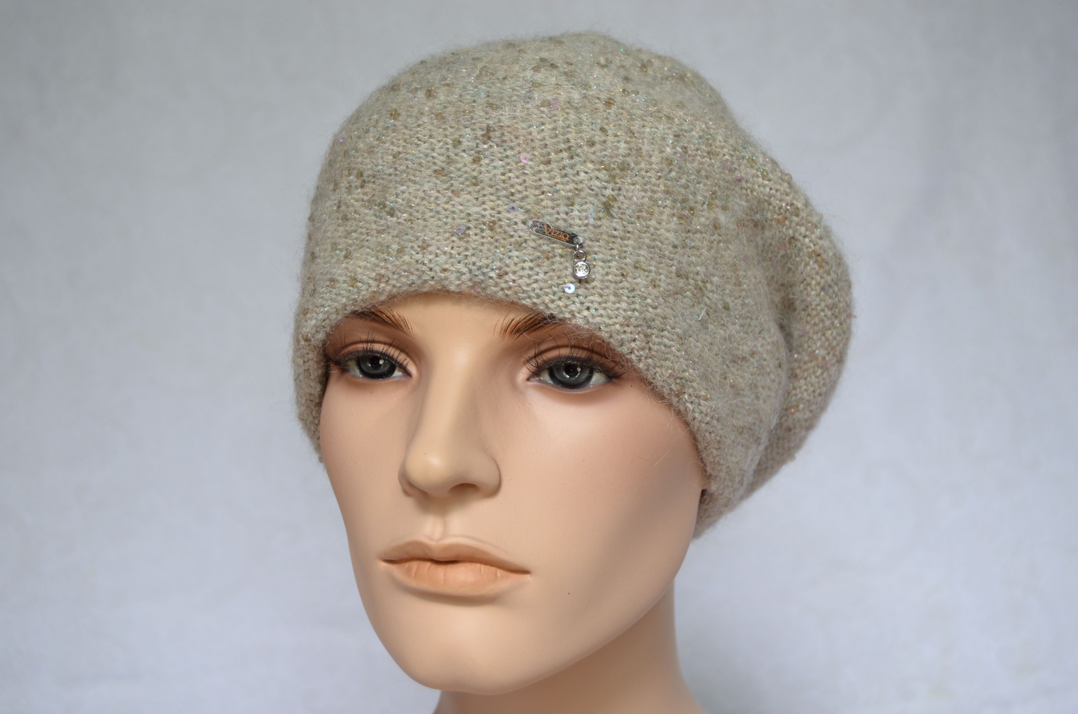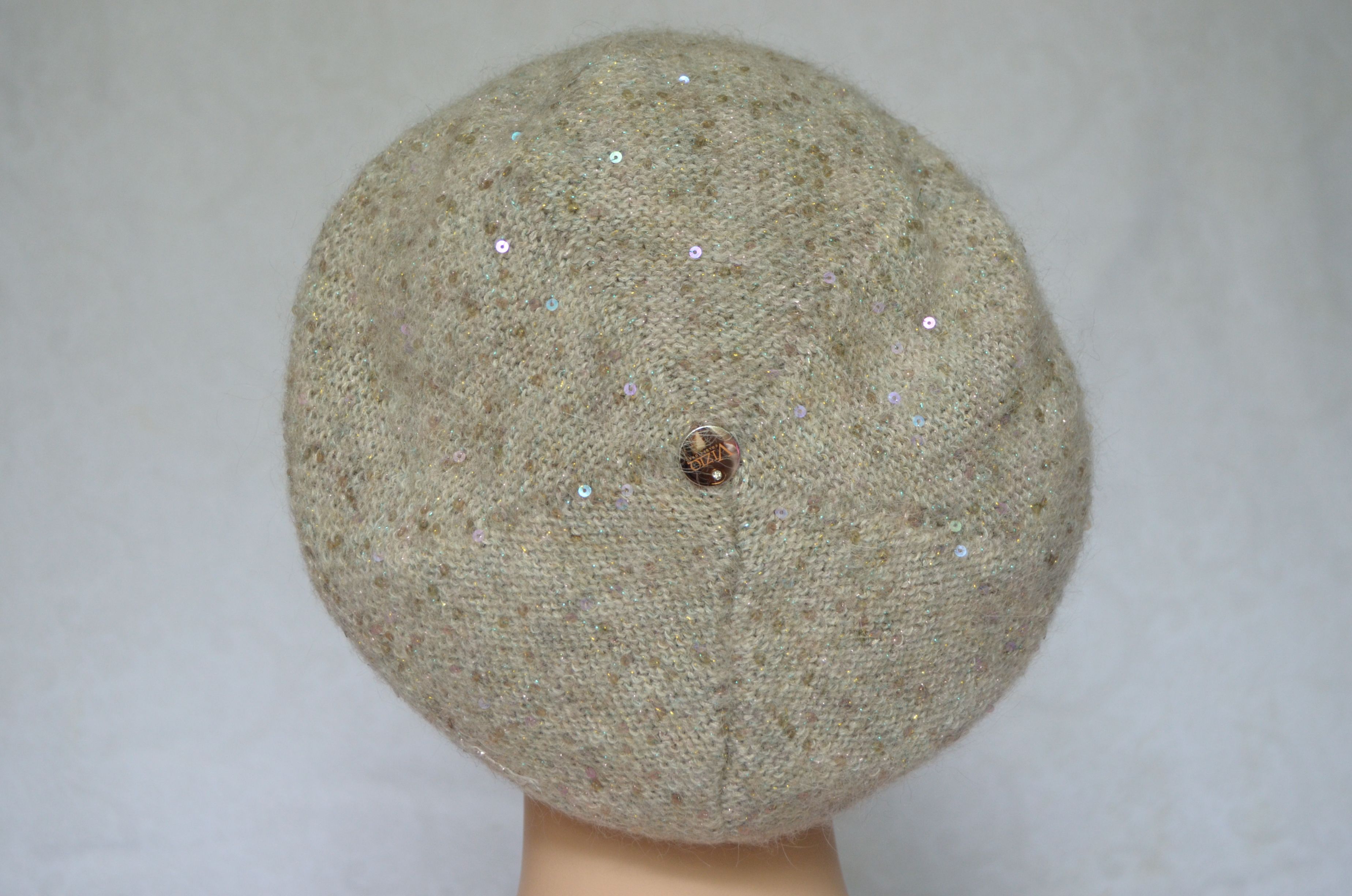 Бежевый вязаный берет с пайетками для женщин Vizio Италия 6917 новая коллекция женских беретов зима 2021 - 2022 купить в интернет магазине итальянских головных уборов для женщин