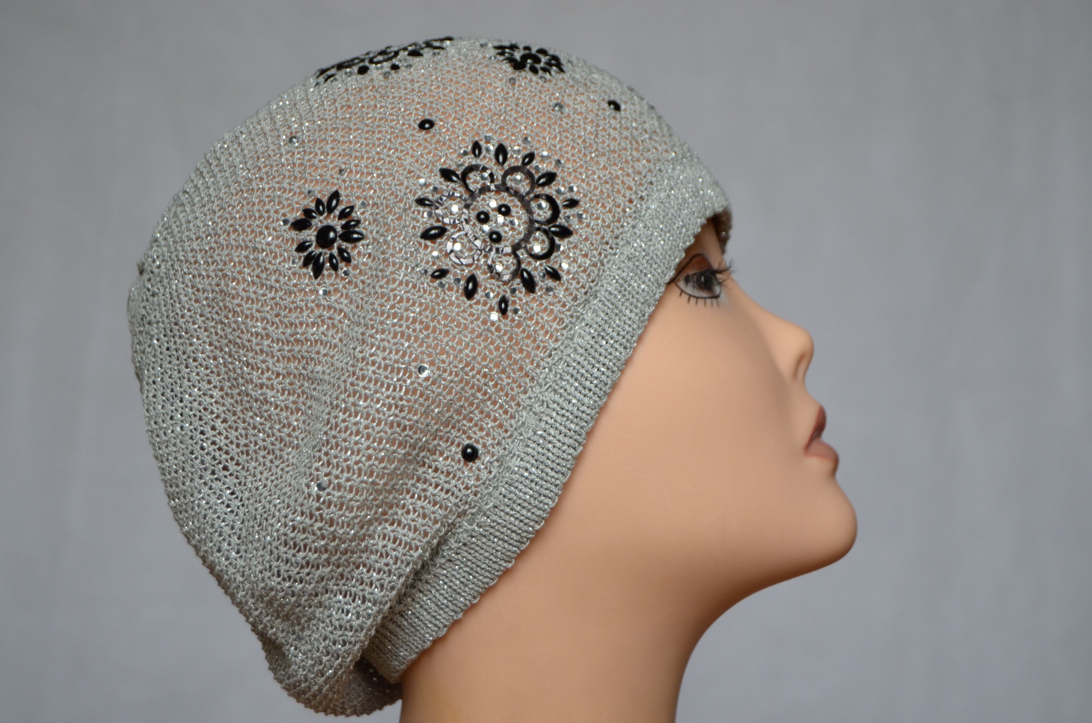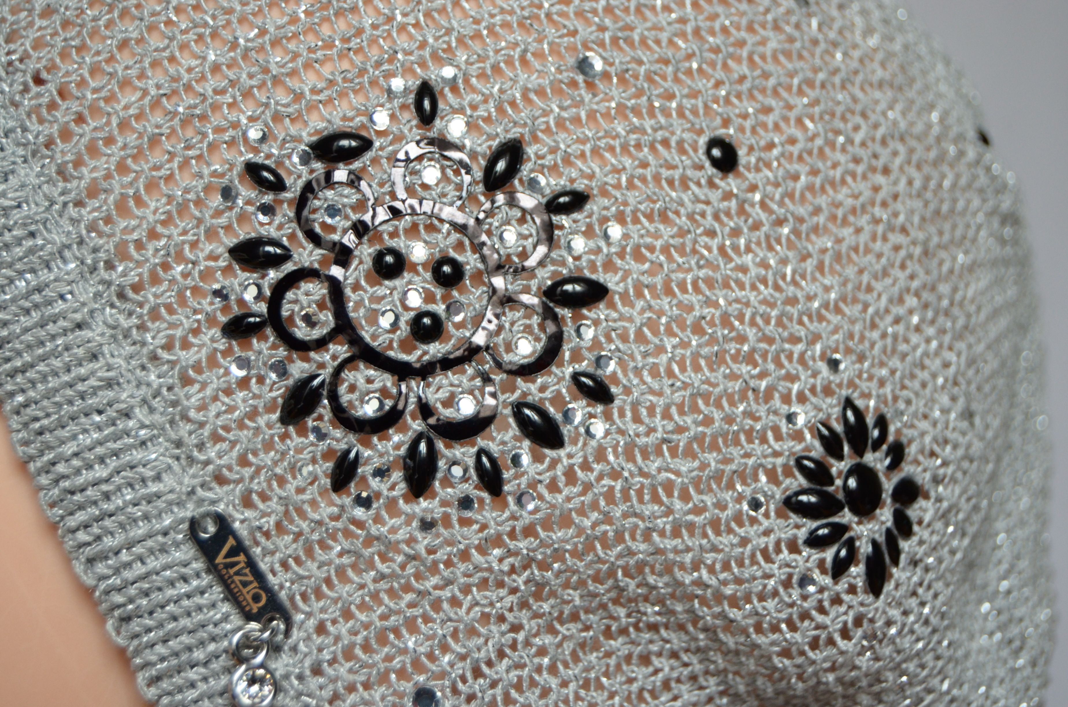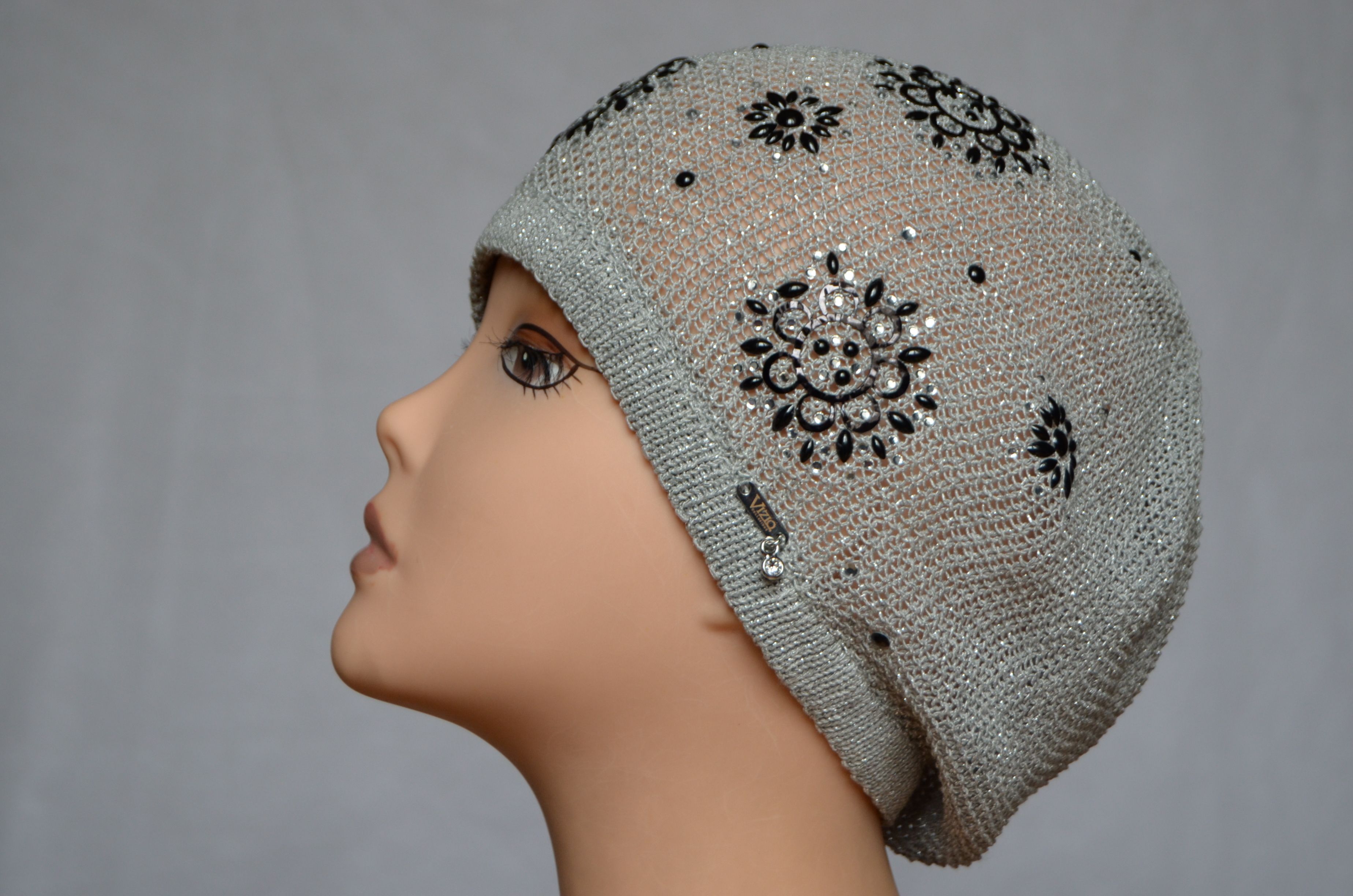 Вязаный летний берет с украшениями Vizio Италия 2234 серого цвета коллекция итальянских летних головных уборов Vizio Collezione в интернет магазине женских шапок и беретов для женщин Визио