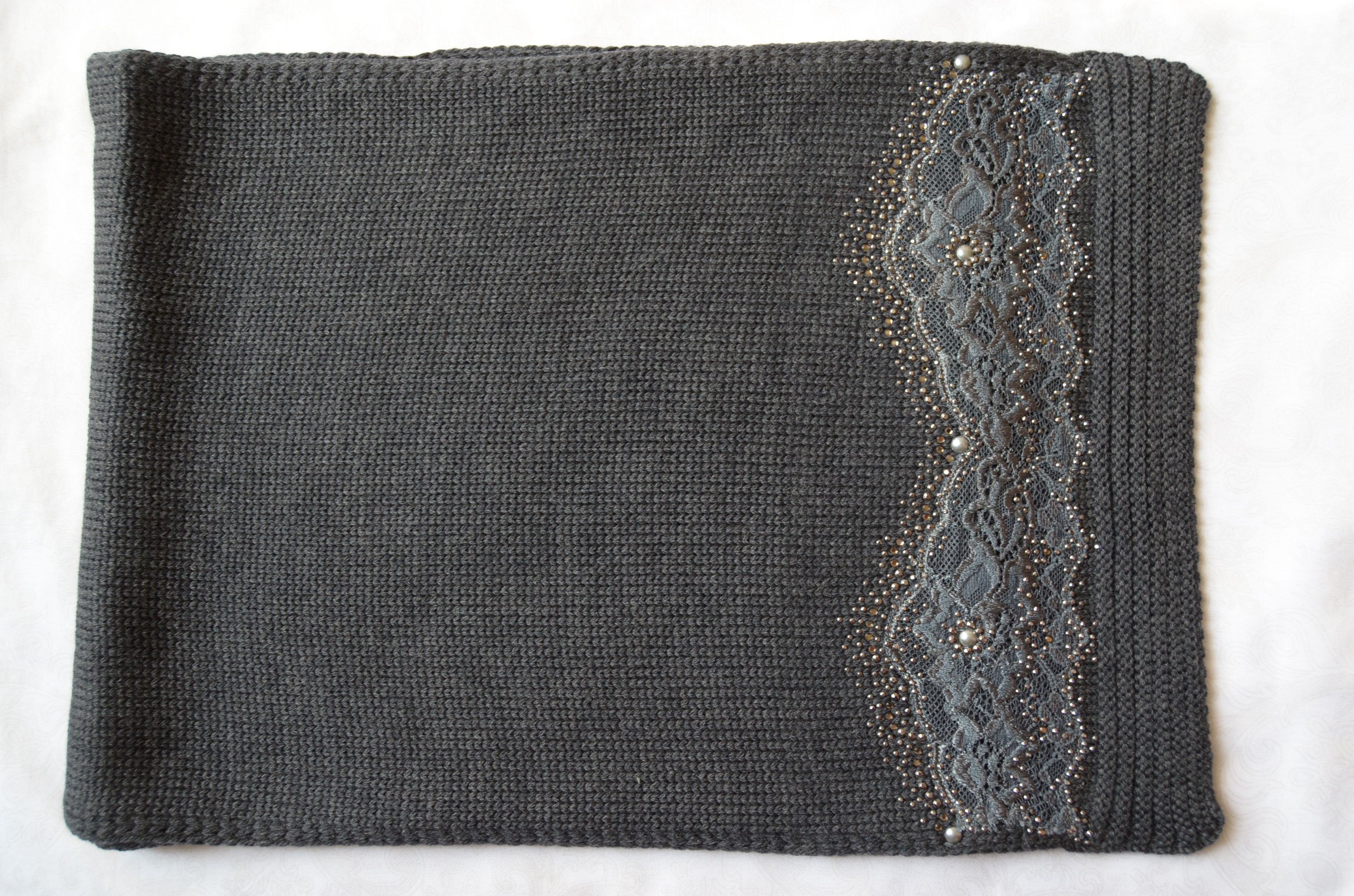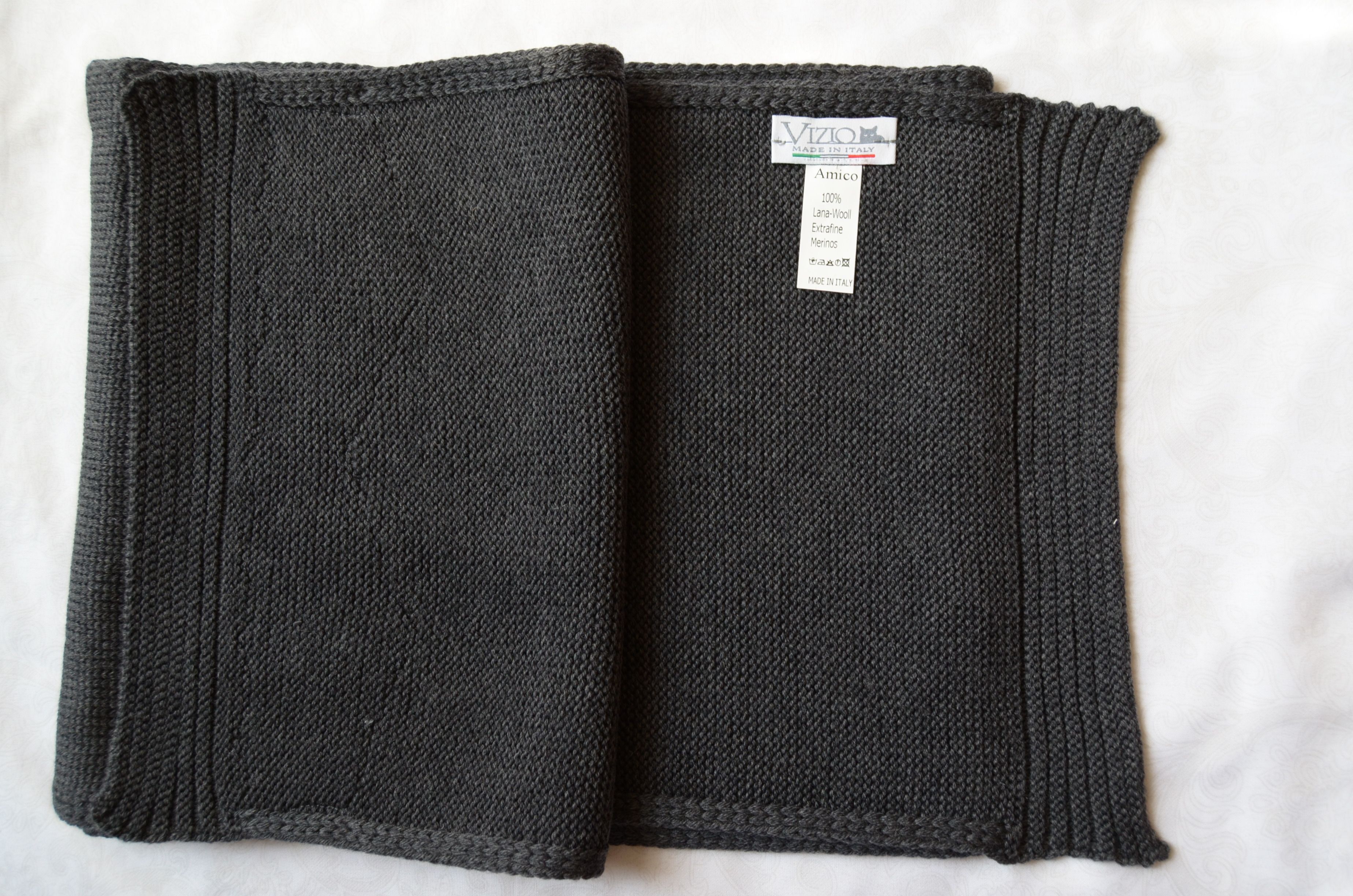 Серый вязаный женский шарф Визио Amico коллекция вязаных головных уборов и шарфов из шерсти мериноса итальянского производителя Vizio Collezione в интернет магазине шапок Италии в Москве и доставкой по России