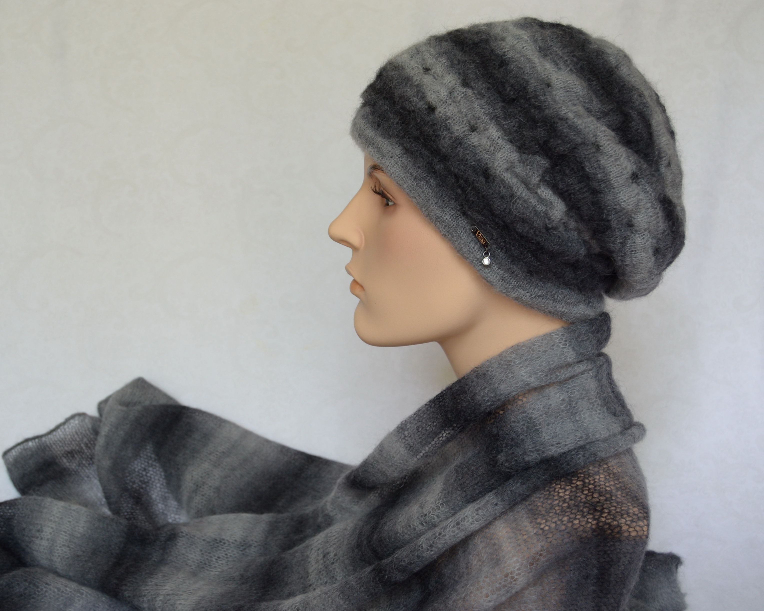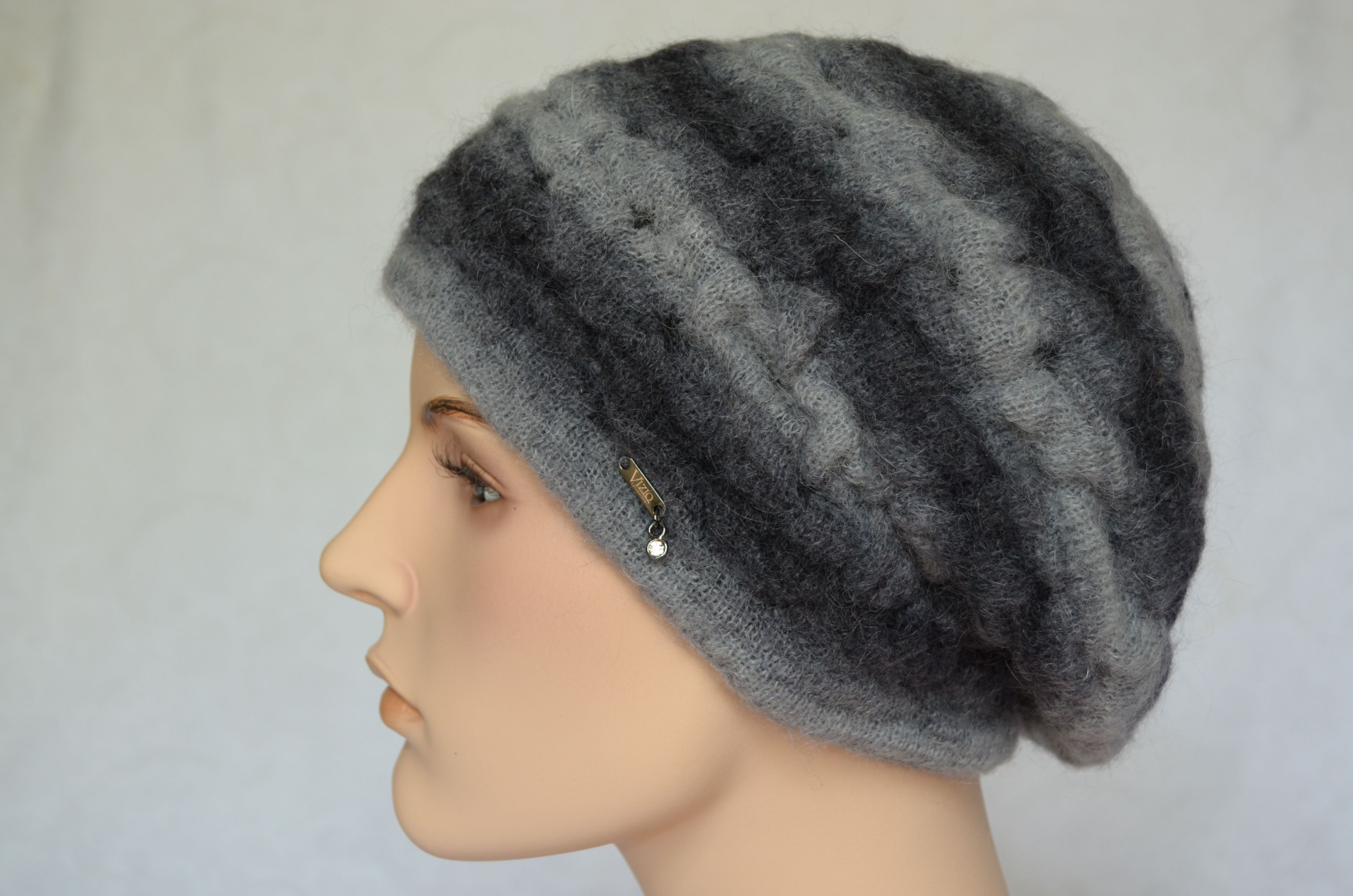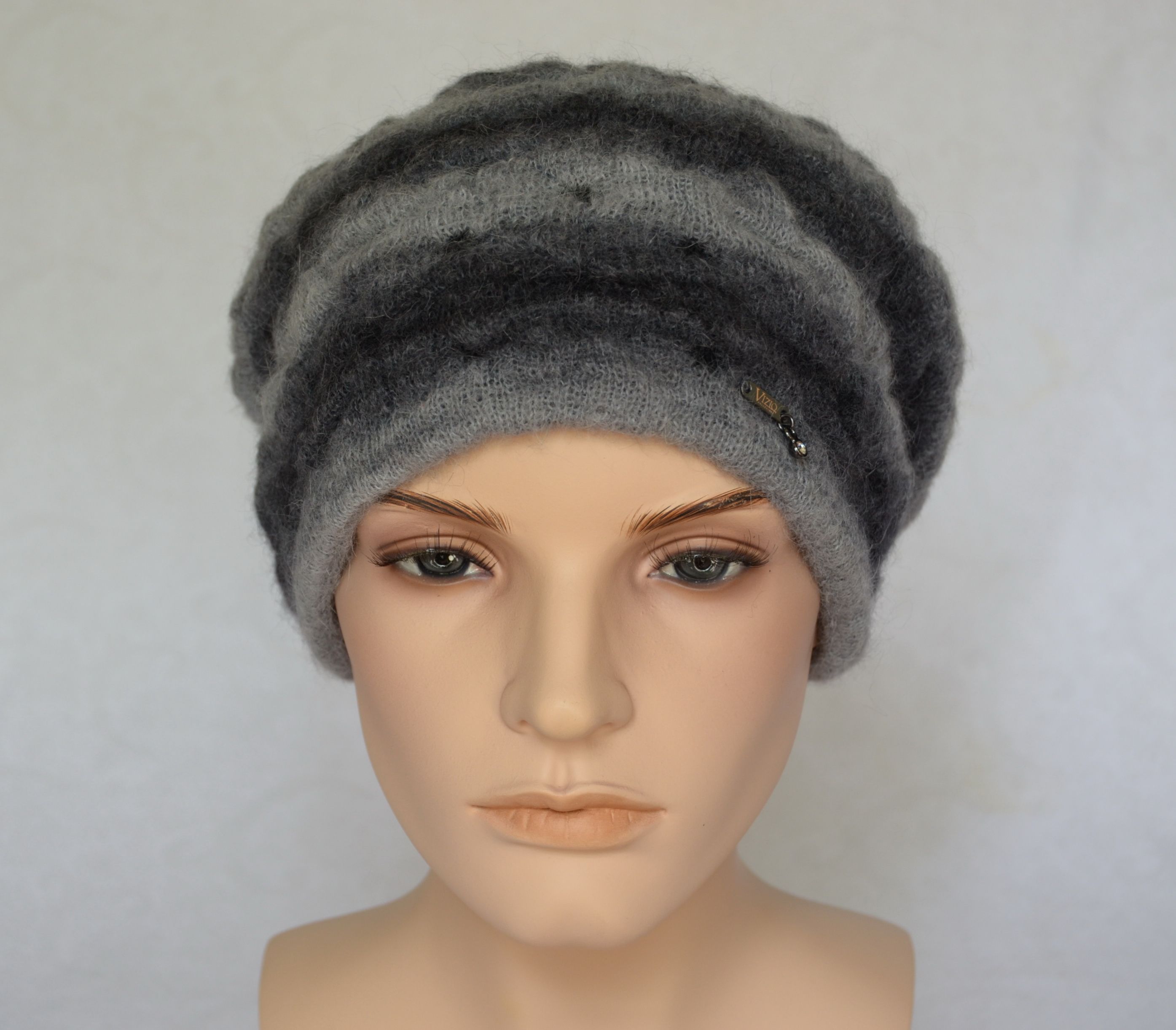 Итальянский темно - серый вязаный берет Vizio Италия 7014 приобрести в интернет магазине головных уборов Италии Визио