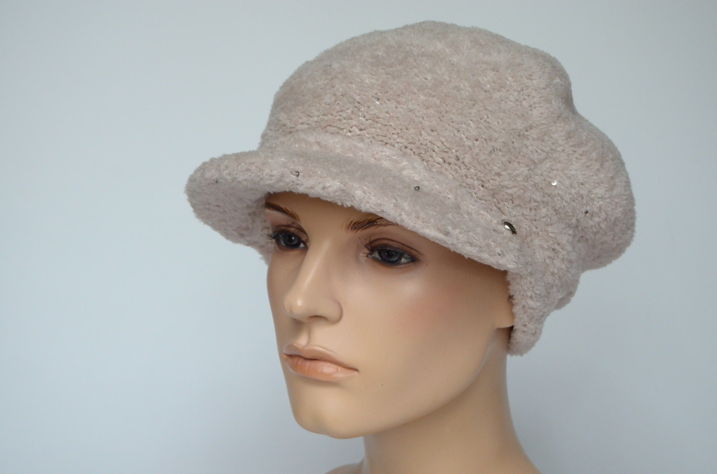 Кепка кашемировая зимняя пудрового цвета с вязаным подкладом для женщин