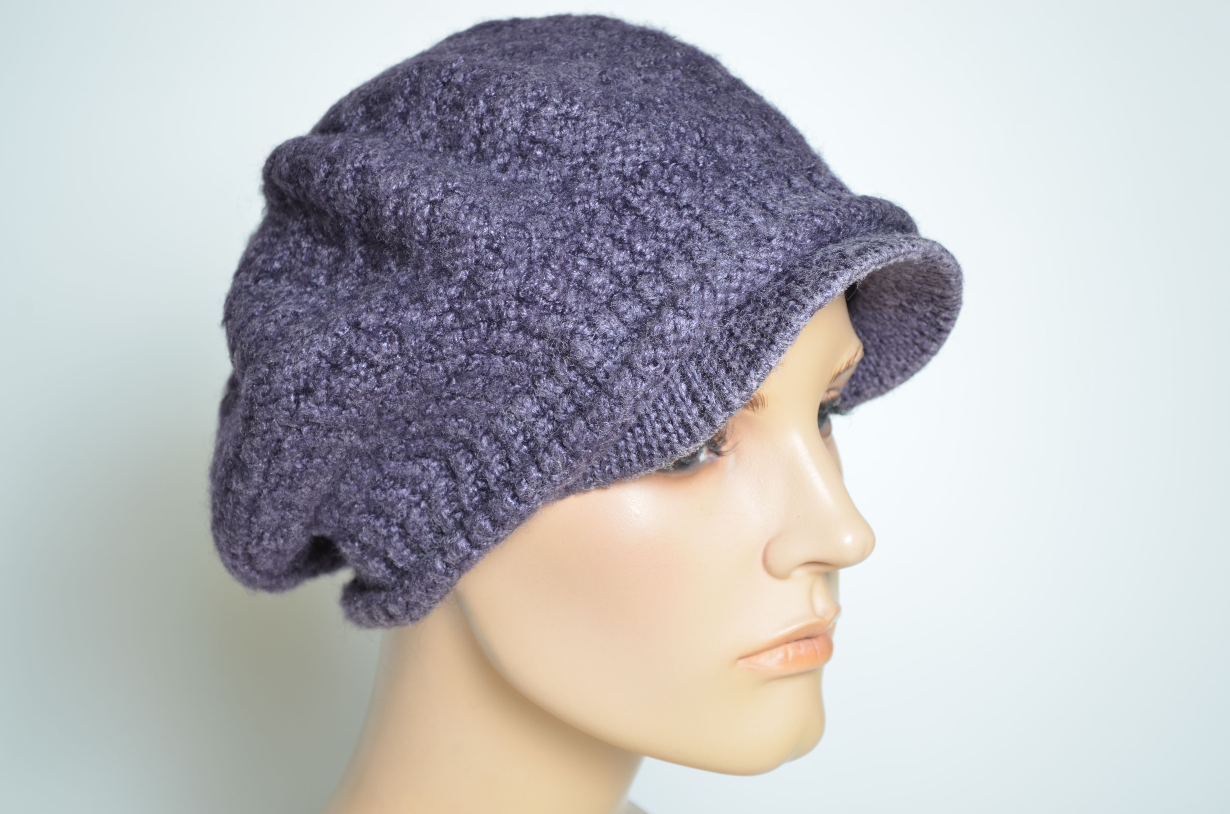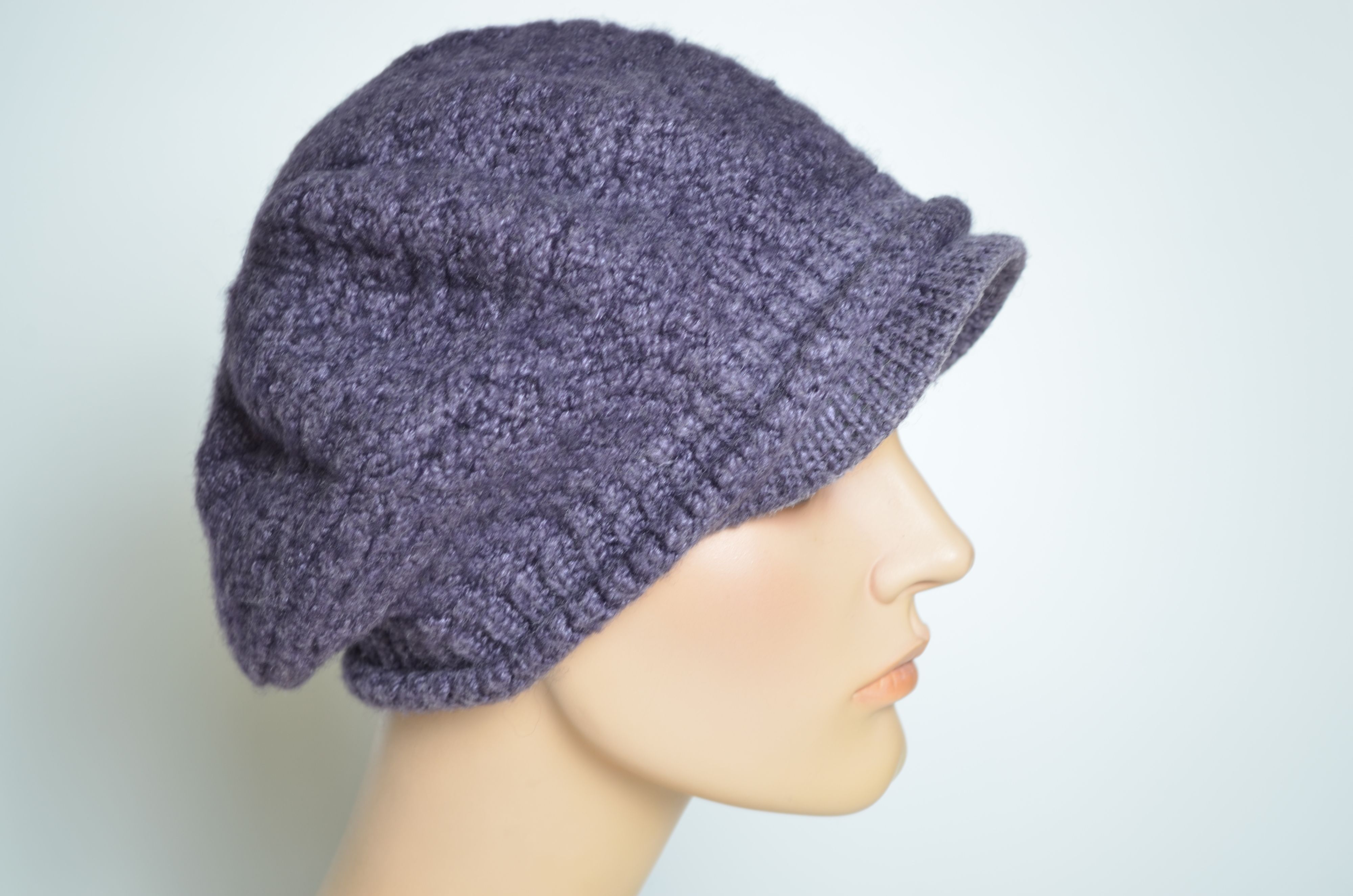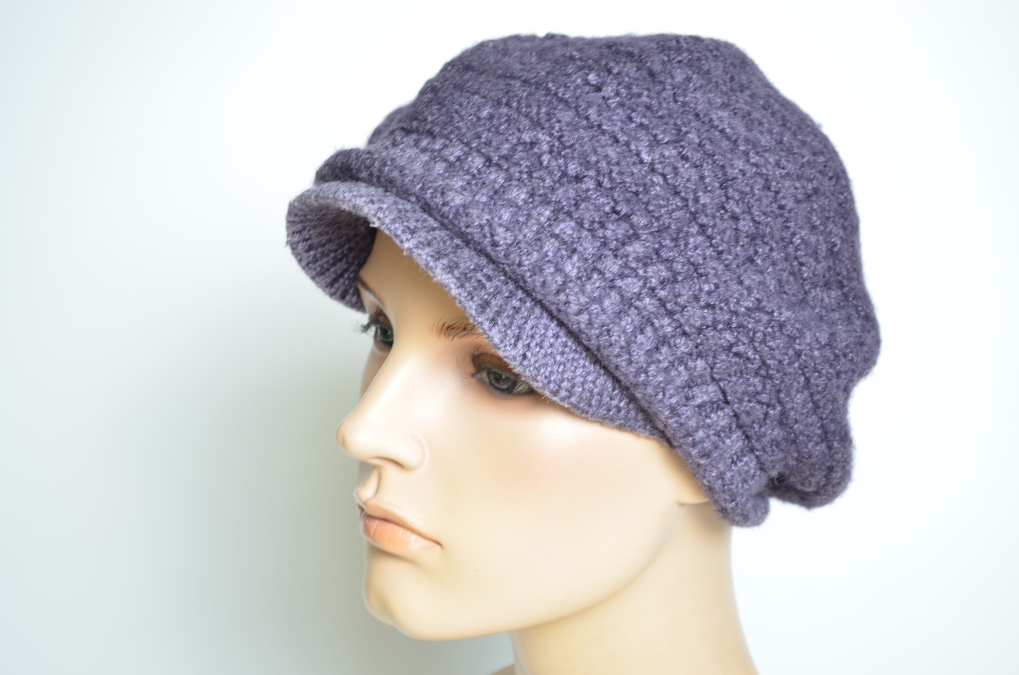 Универсальная сиреневая вязаная кепка берет с козырьком для женщин