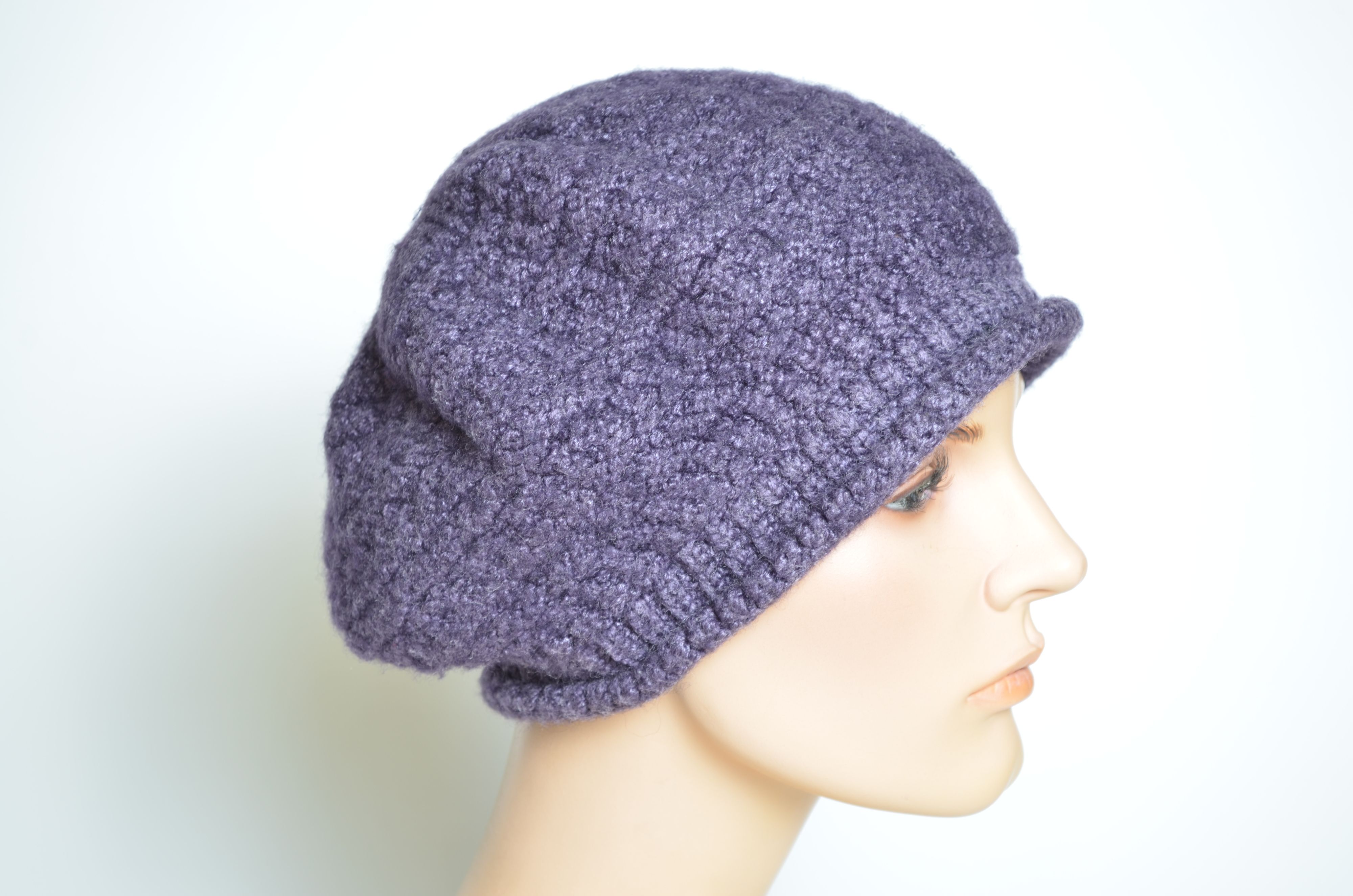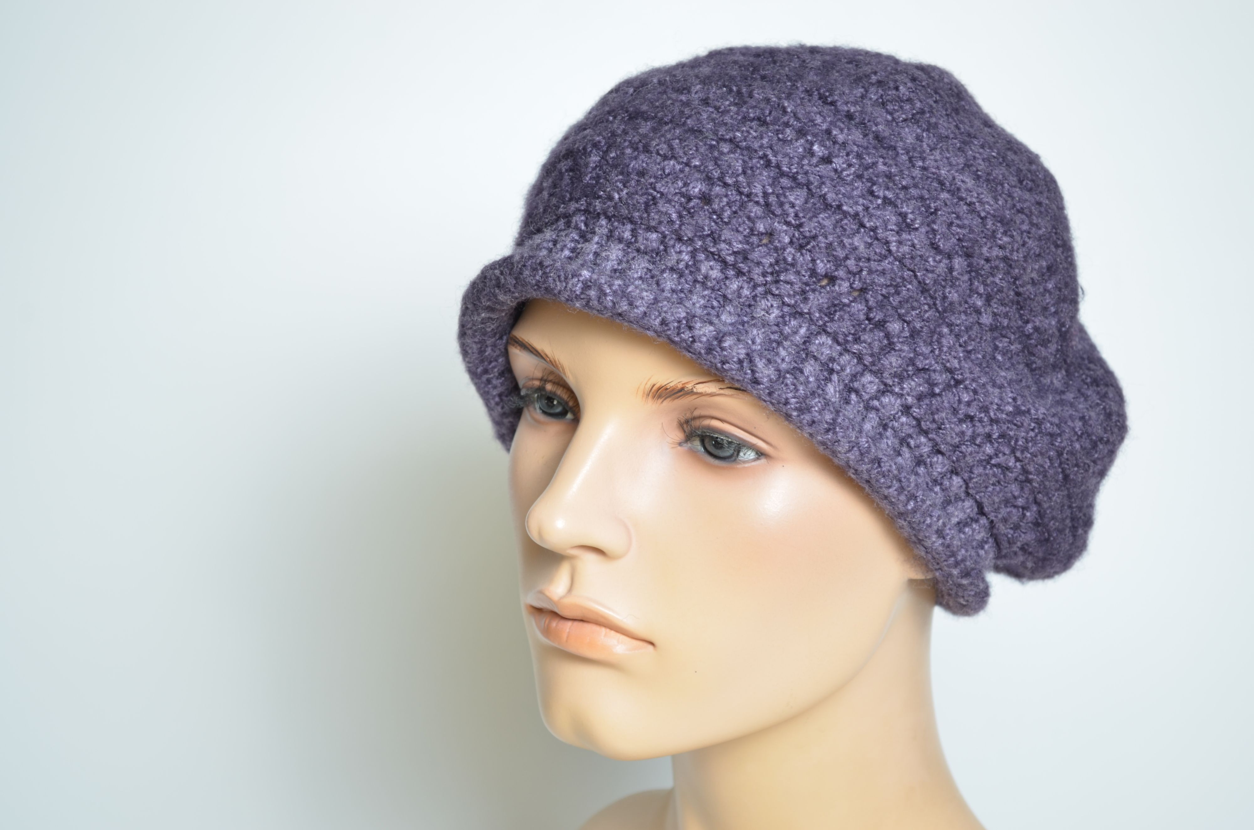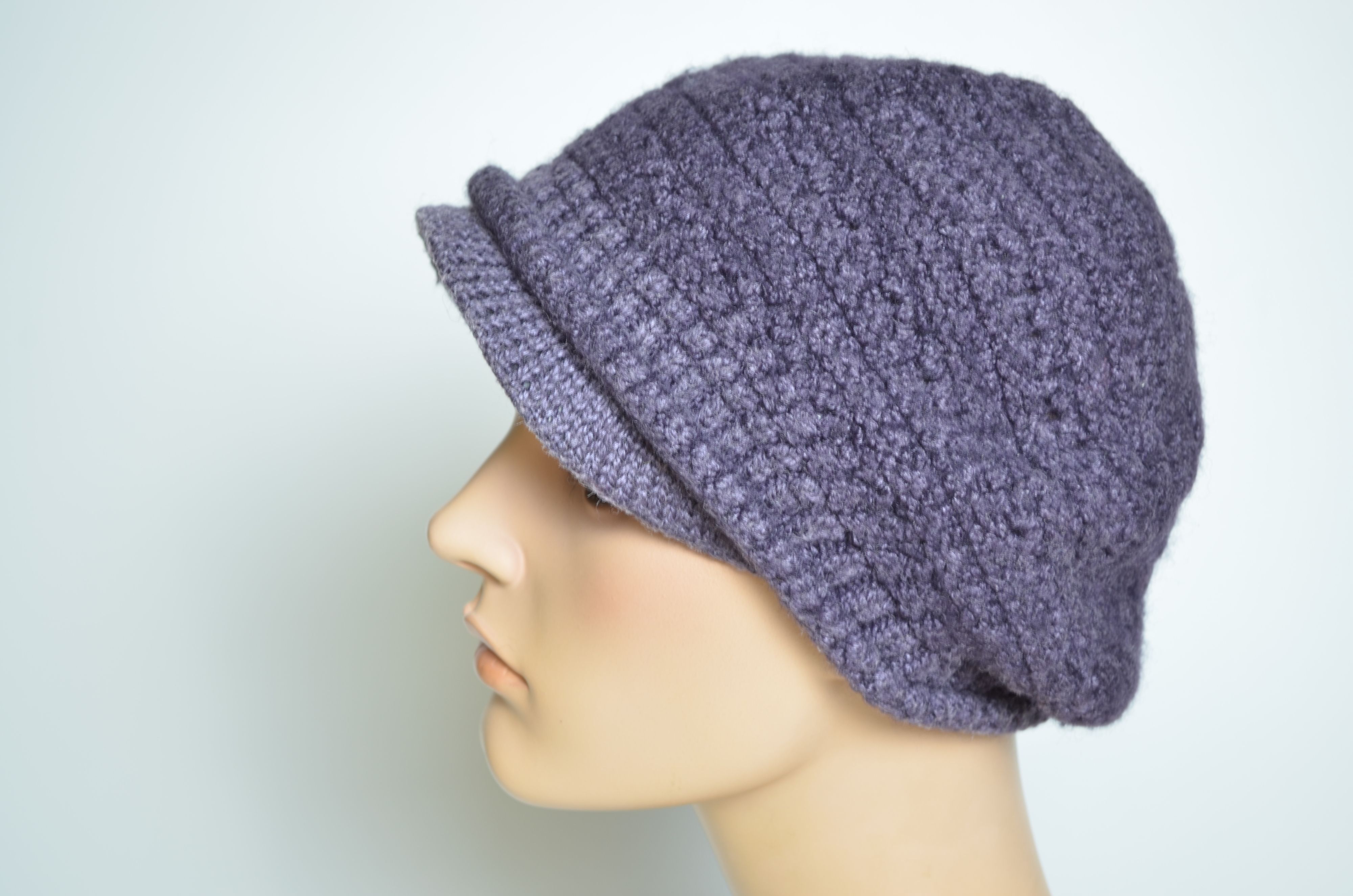 Универсальная сиреневая вязаная кепка берет с козырьком для женщин