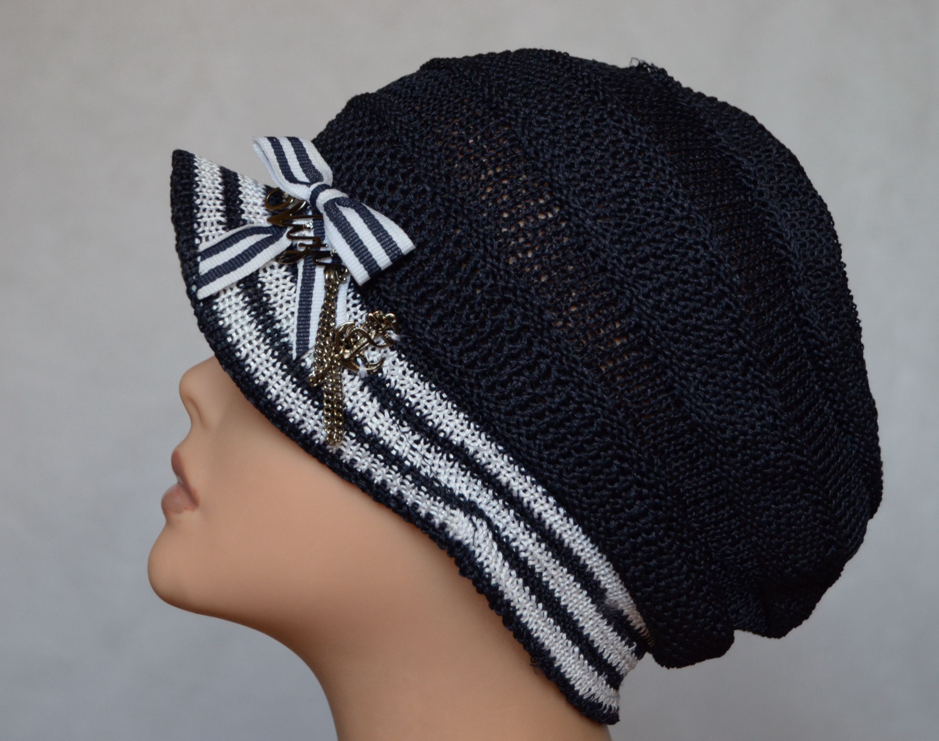 Кепка женская летняя вязаная синяя Vizio Италия 4814 из коллекции вязаных летних кепок от производителя модных головных уборов для женщин Vizio Италия