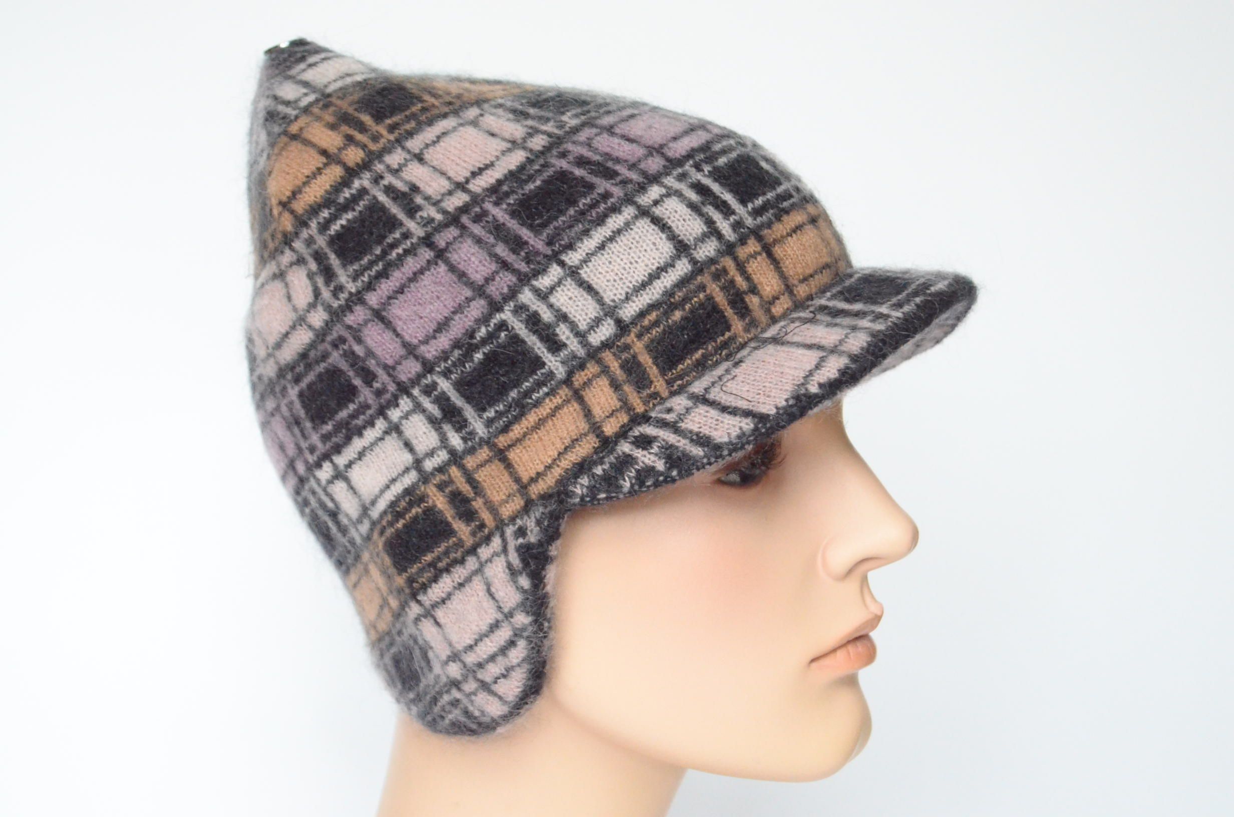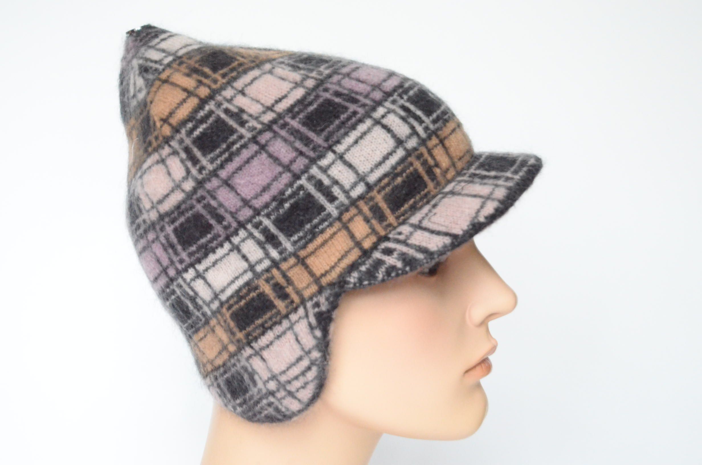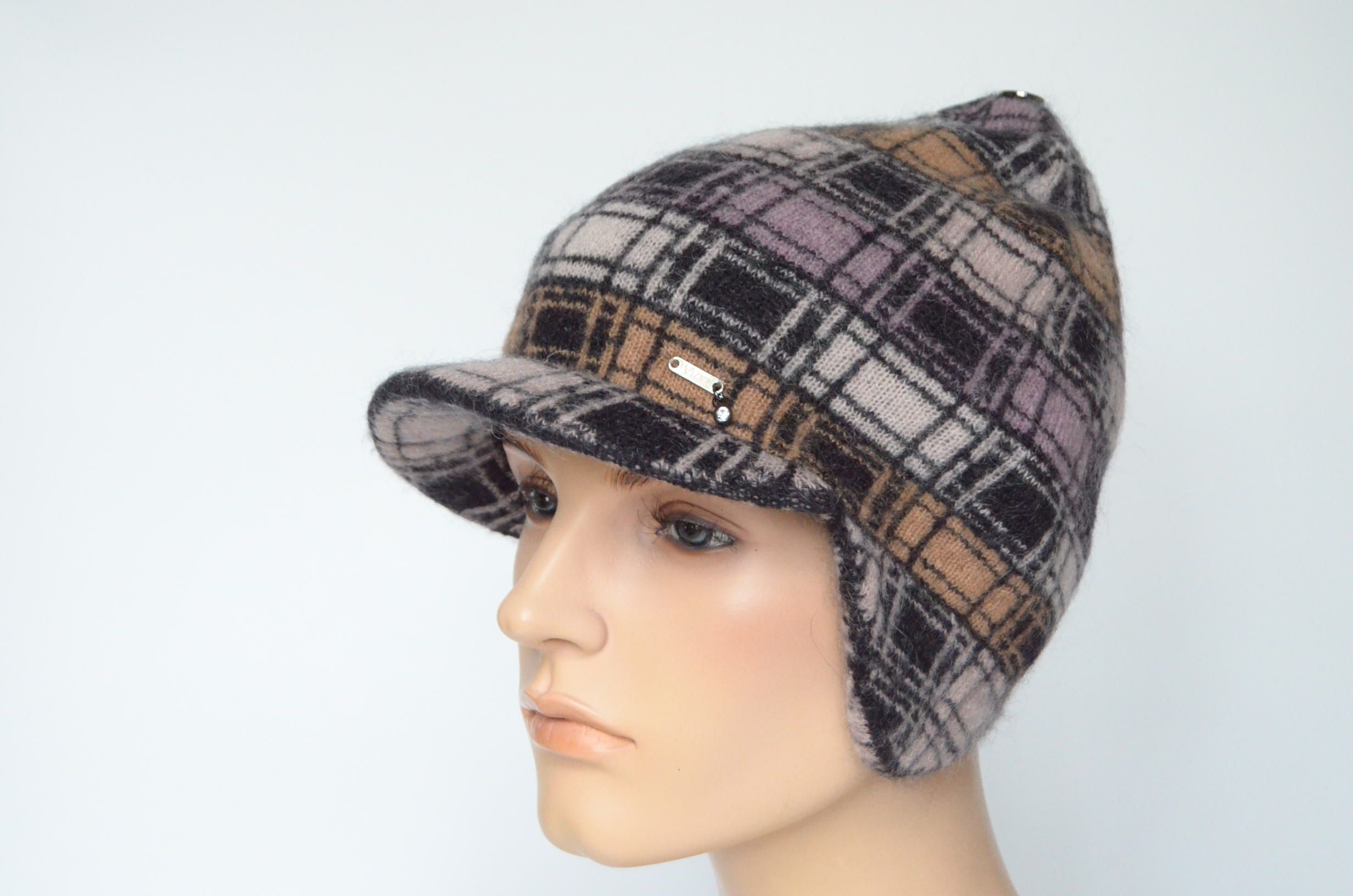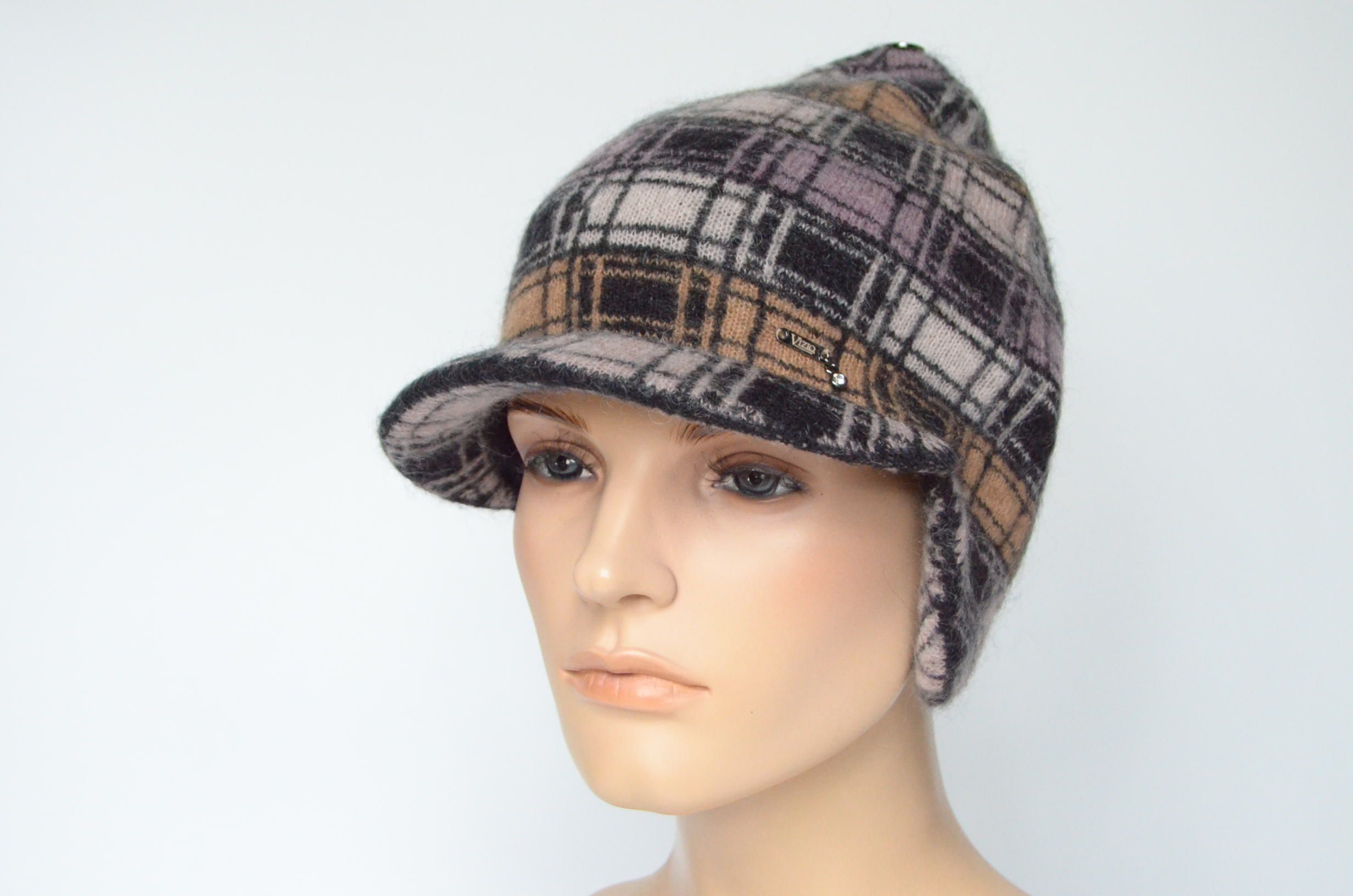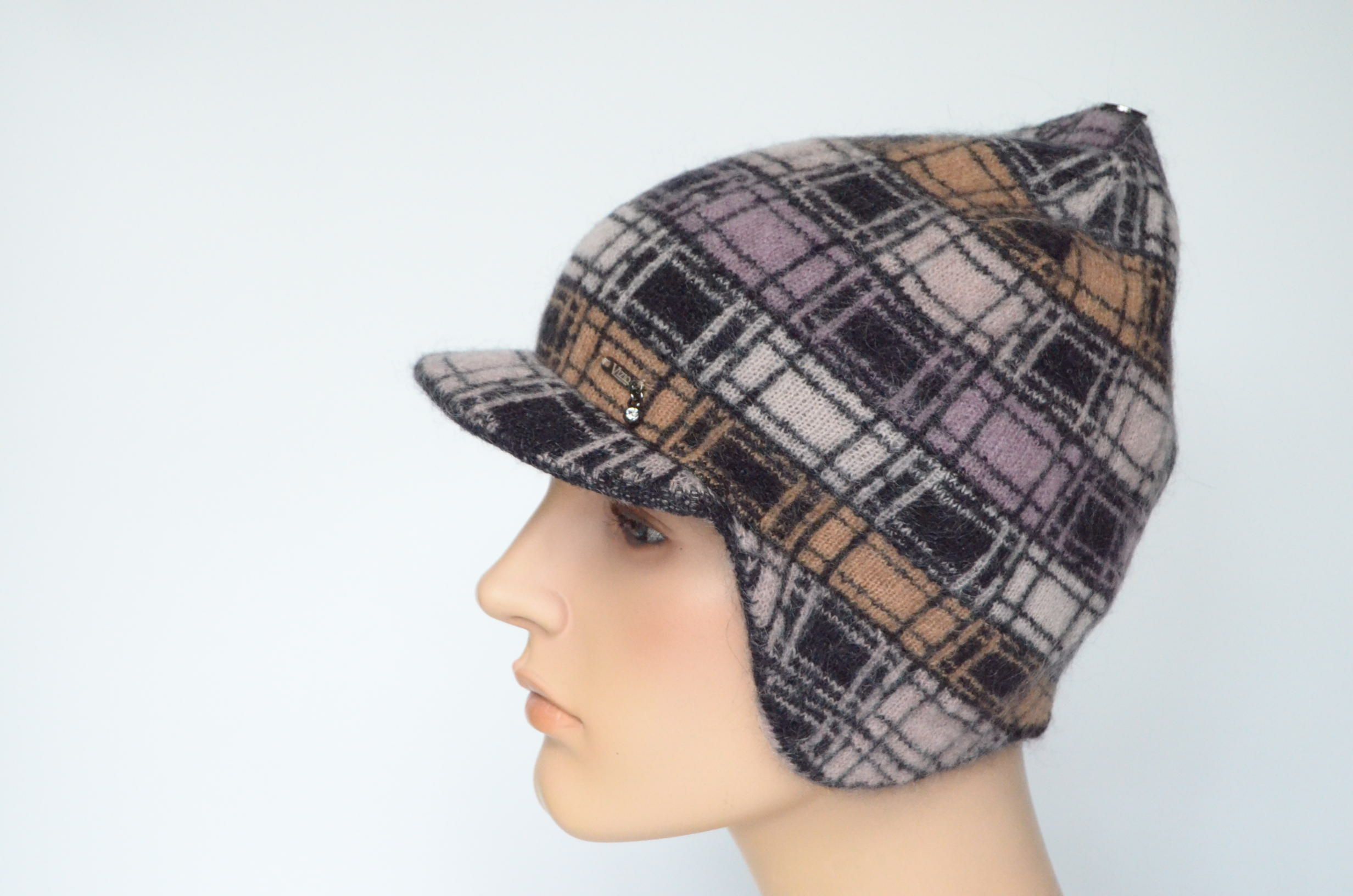 Кепка жокейка зимняя с ушками вязаная для женщин двойная с вязаным подкладом