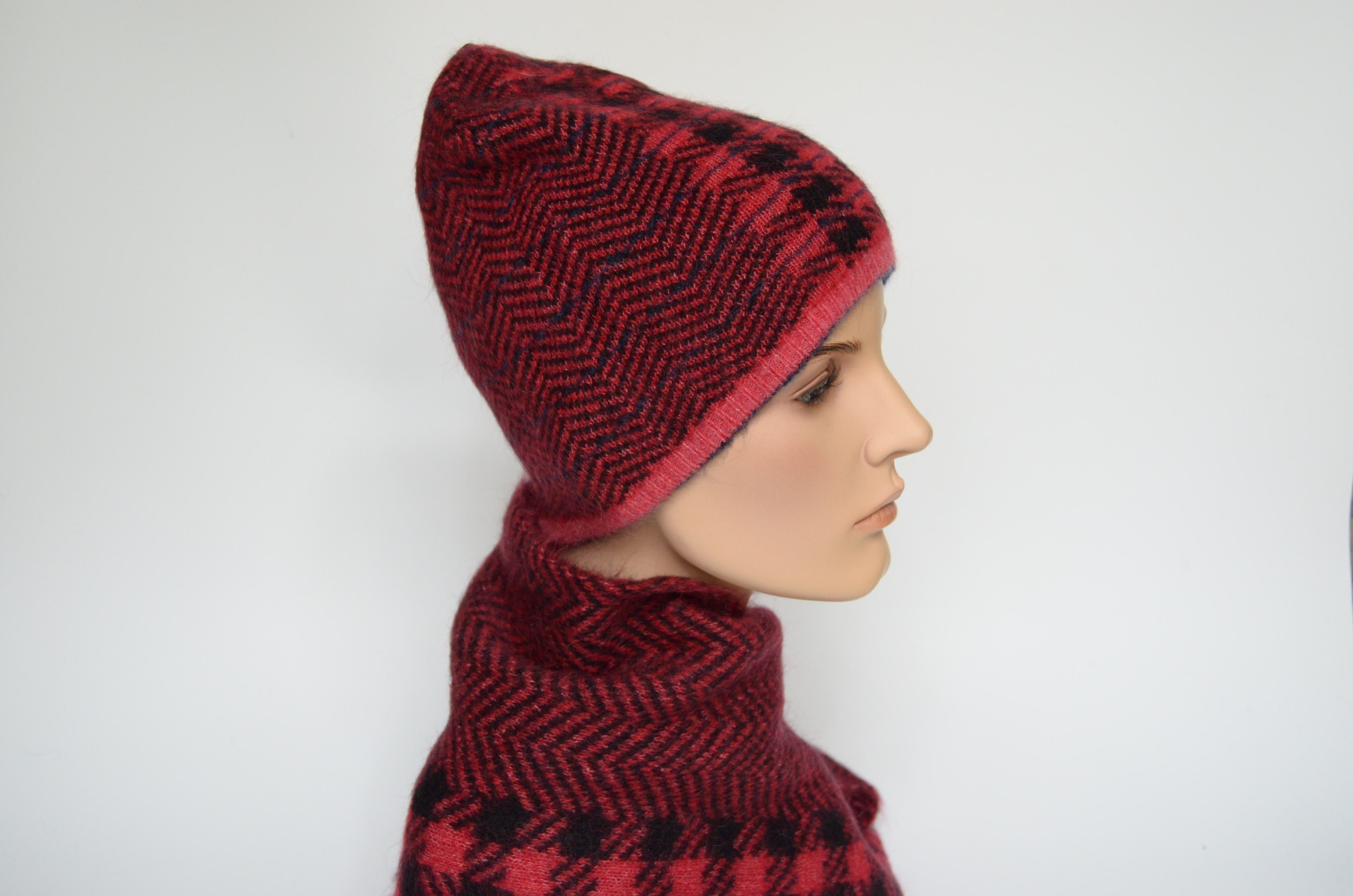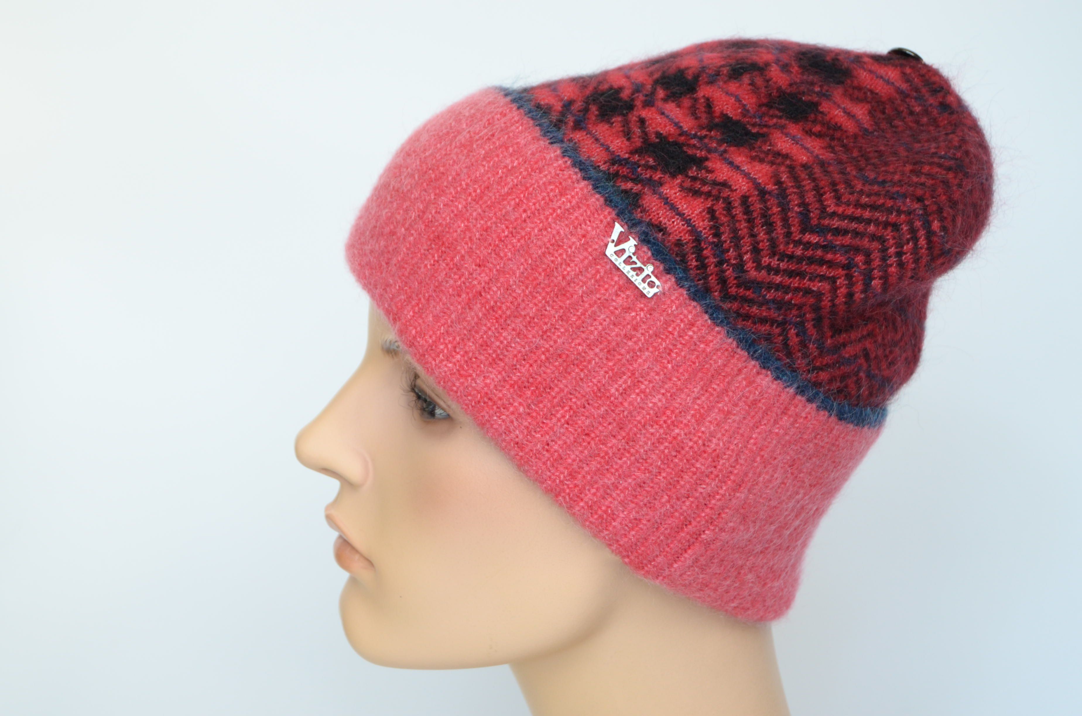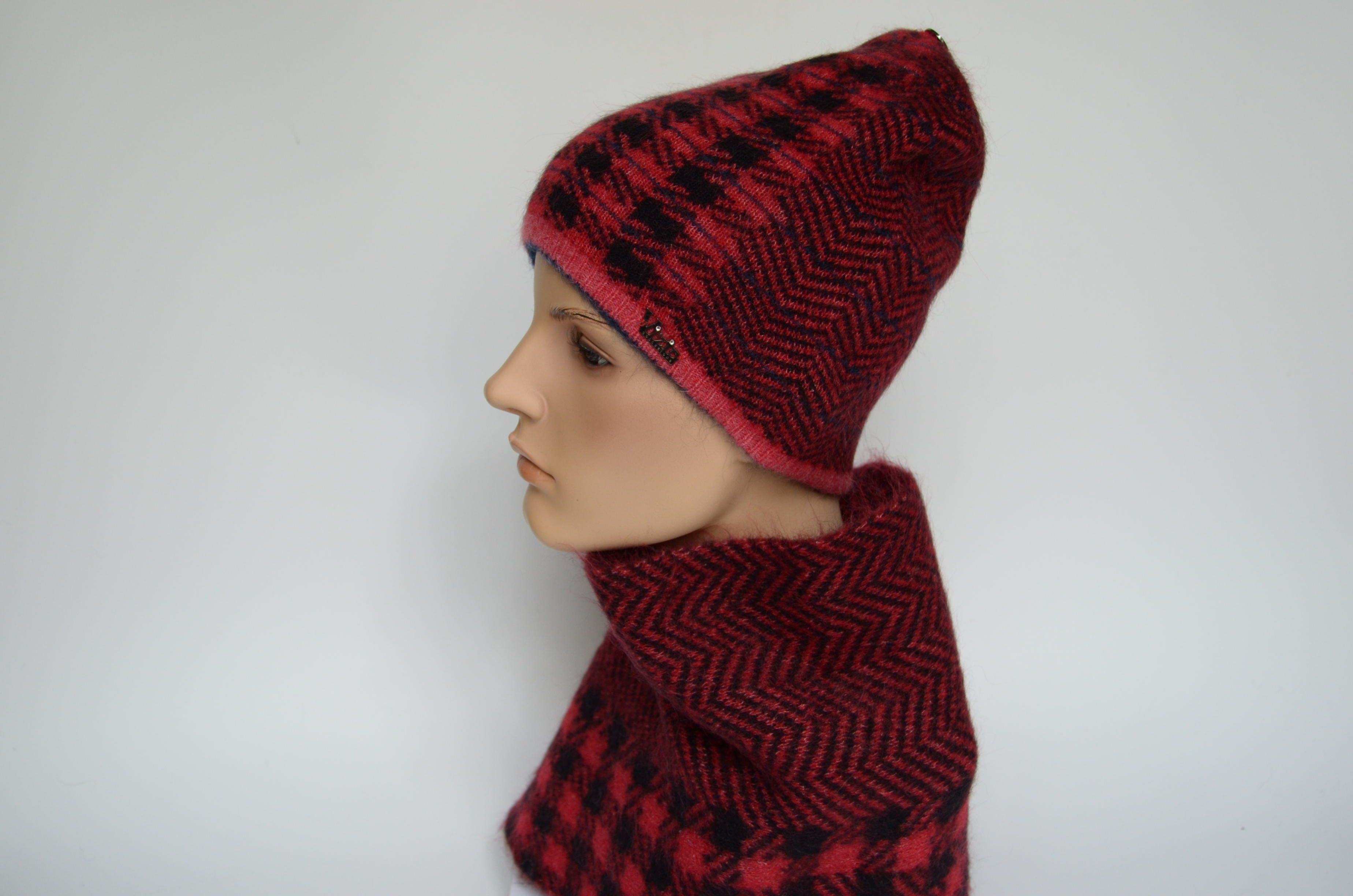 Женский вязаный клетчатый шарф с зигзагом Vizio 8076 красный итальянский зимний шарф под головные уборы Визио зима 2022 - 2023 вязаные с рисунком клетки или зигзага