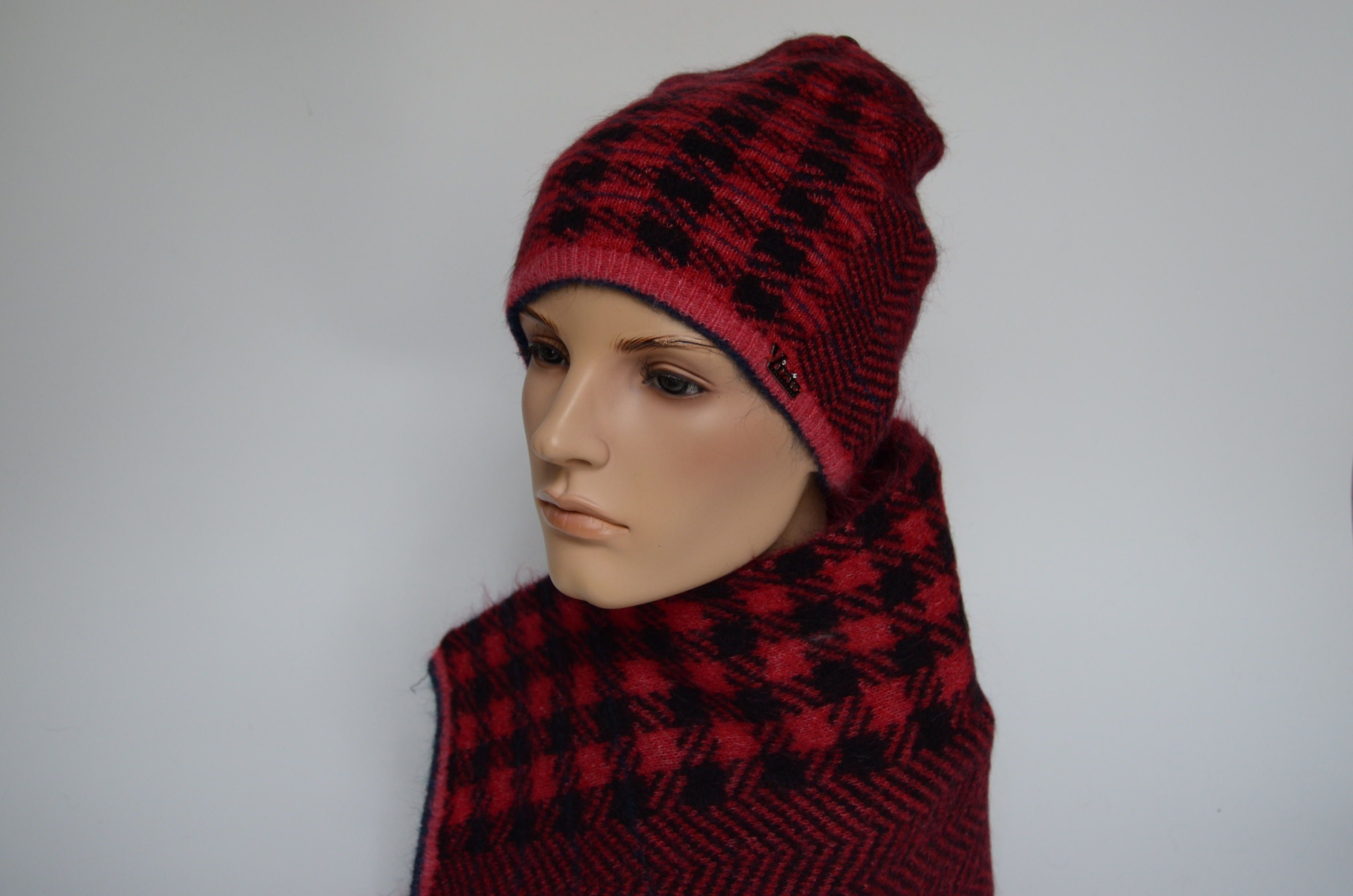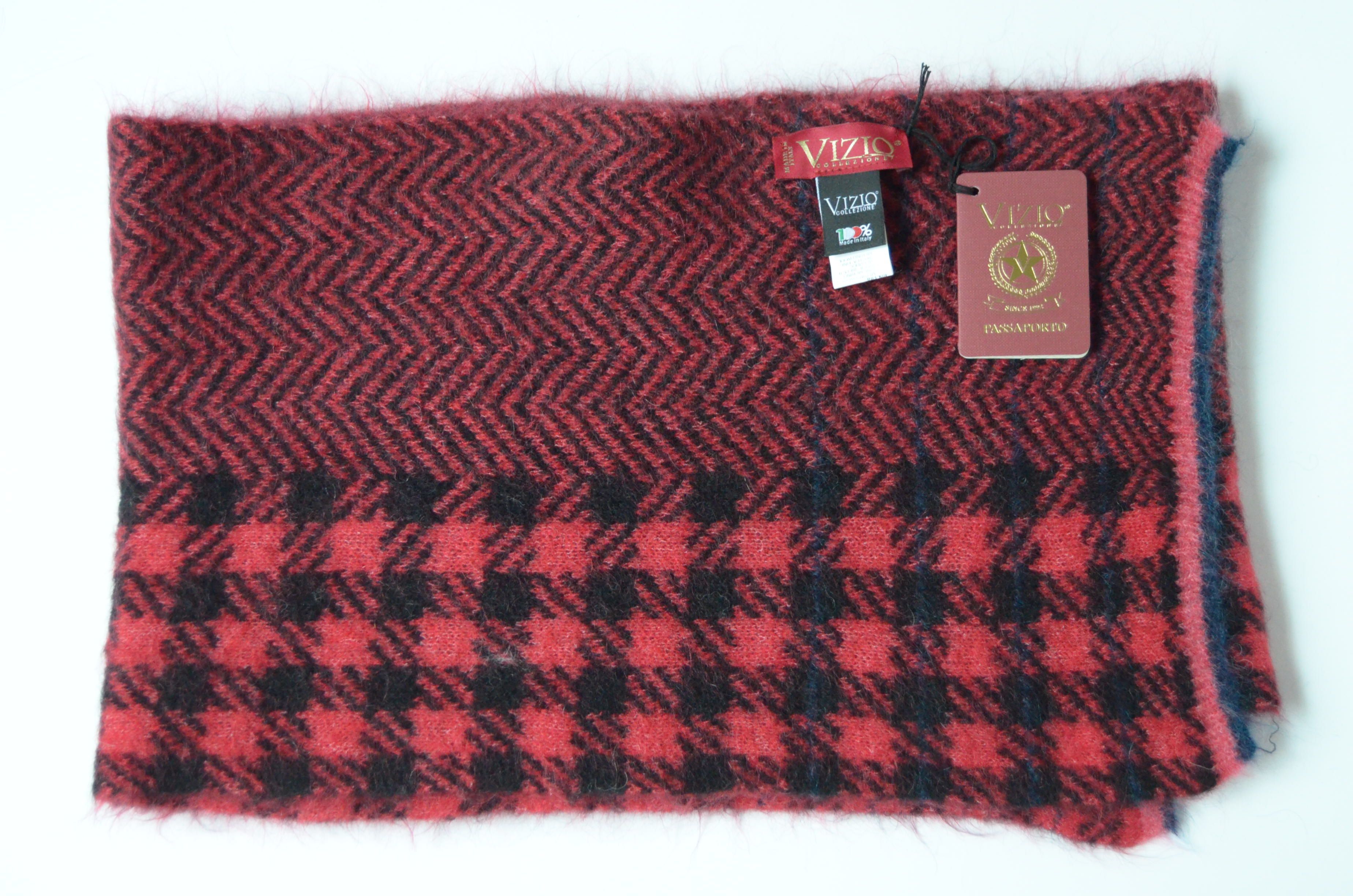 Купить женский клетчатый шарф вязаный из мохера и мериноса Vizio Италия зима 2023 в интернет магазине итальянских шарфов и головных уборов для женщин Vizio Collezione