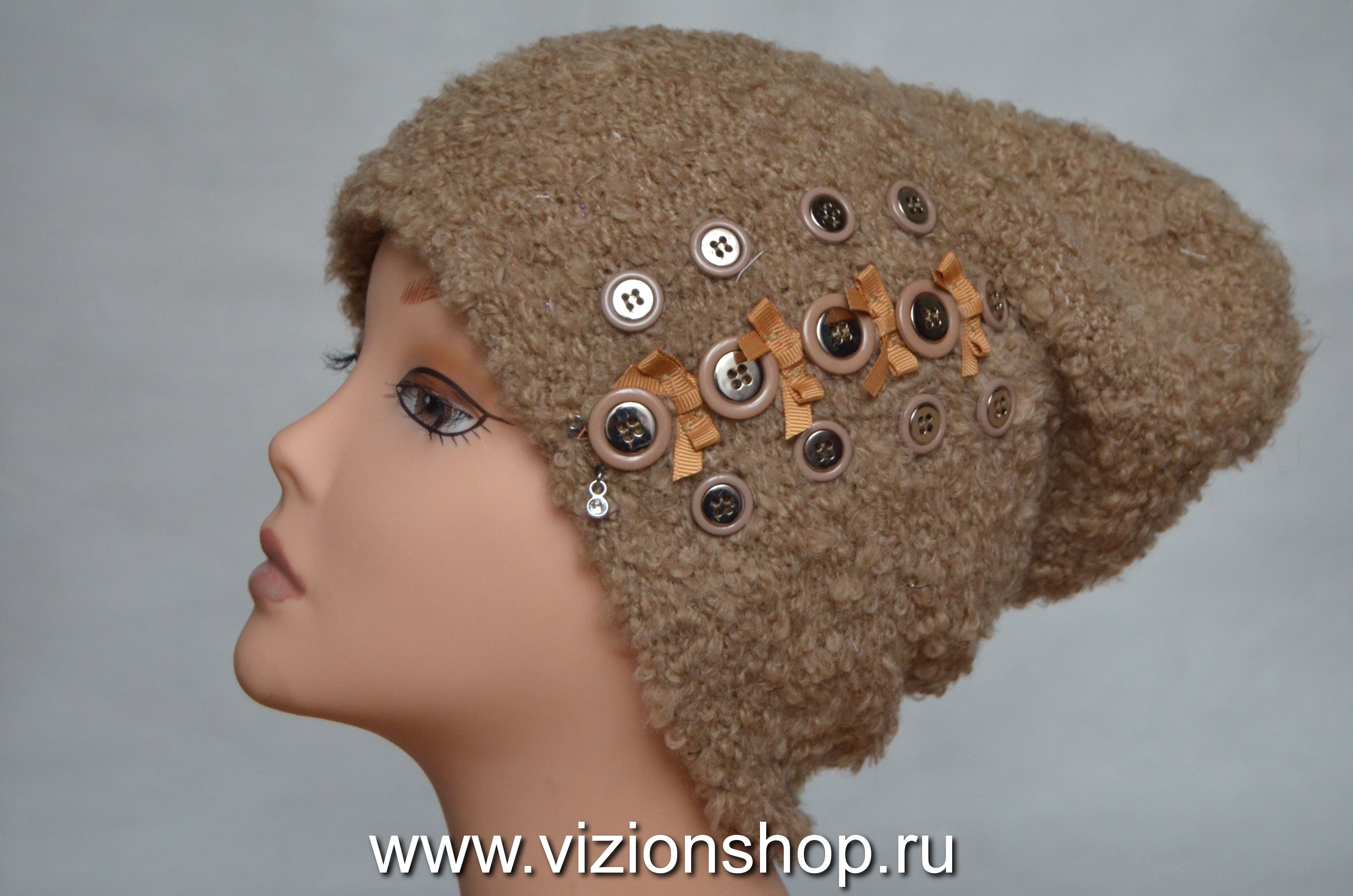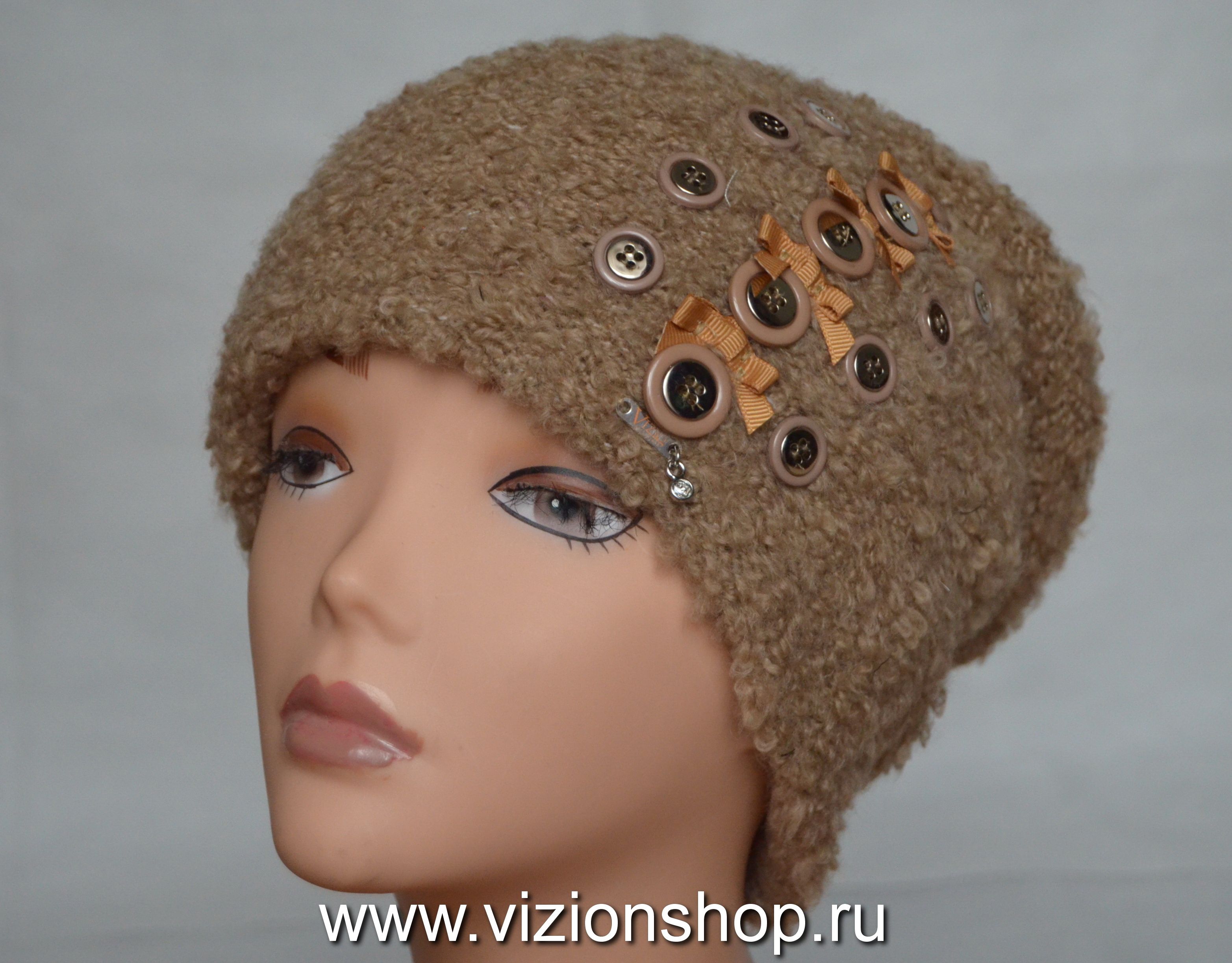 Коричневая пушистая вязаная шапка Италия Визио Vizio 6193 зимняя коллекция итальянских шапок 2019 купить в Белгороде, москве и России интернет магазин головных уборов италии