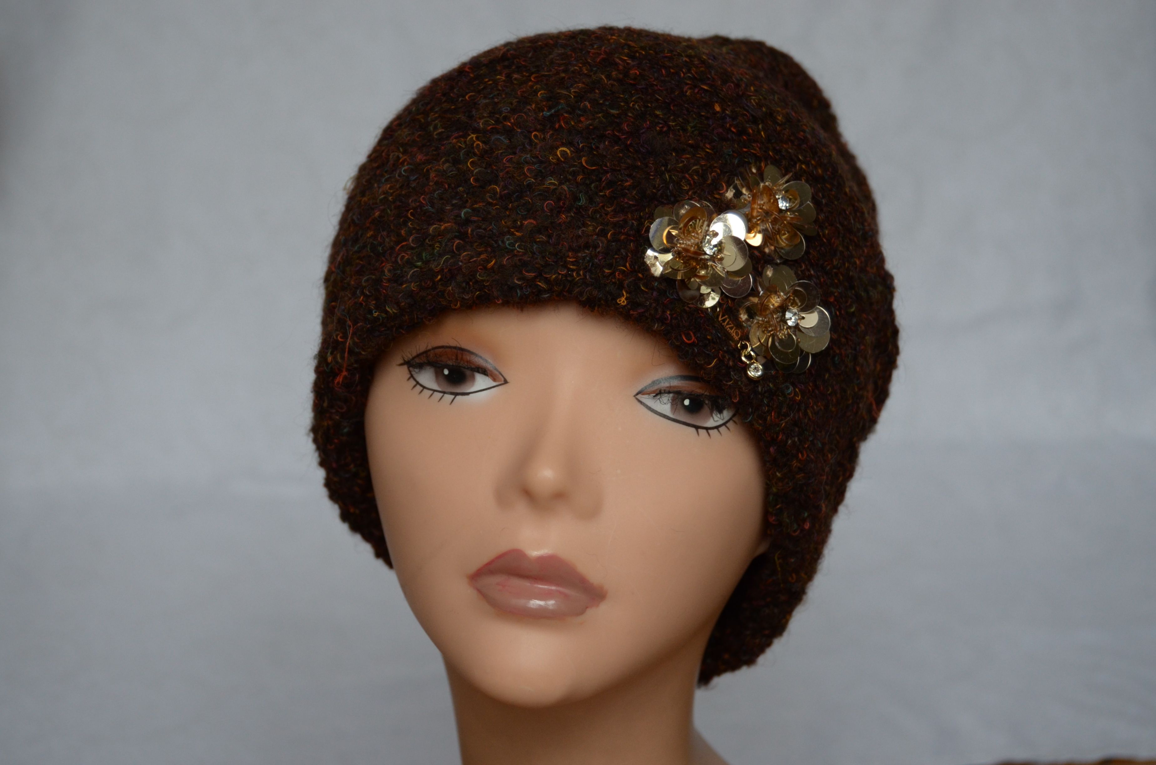Шапка меланжевой пряжи коричневого цвета Vizio Collezione коллекция зимних шапок в интернет магазине женских головных уборов Италии в Москве