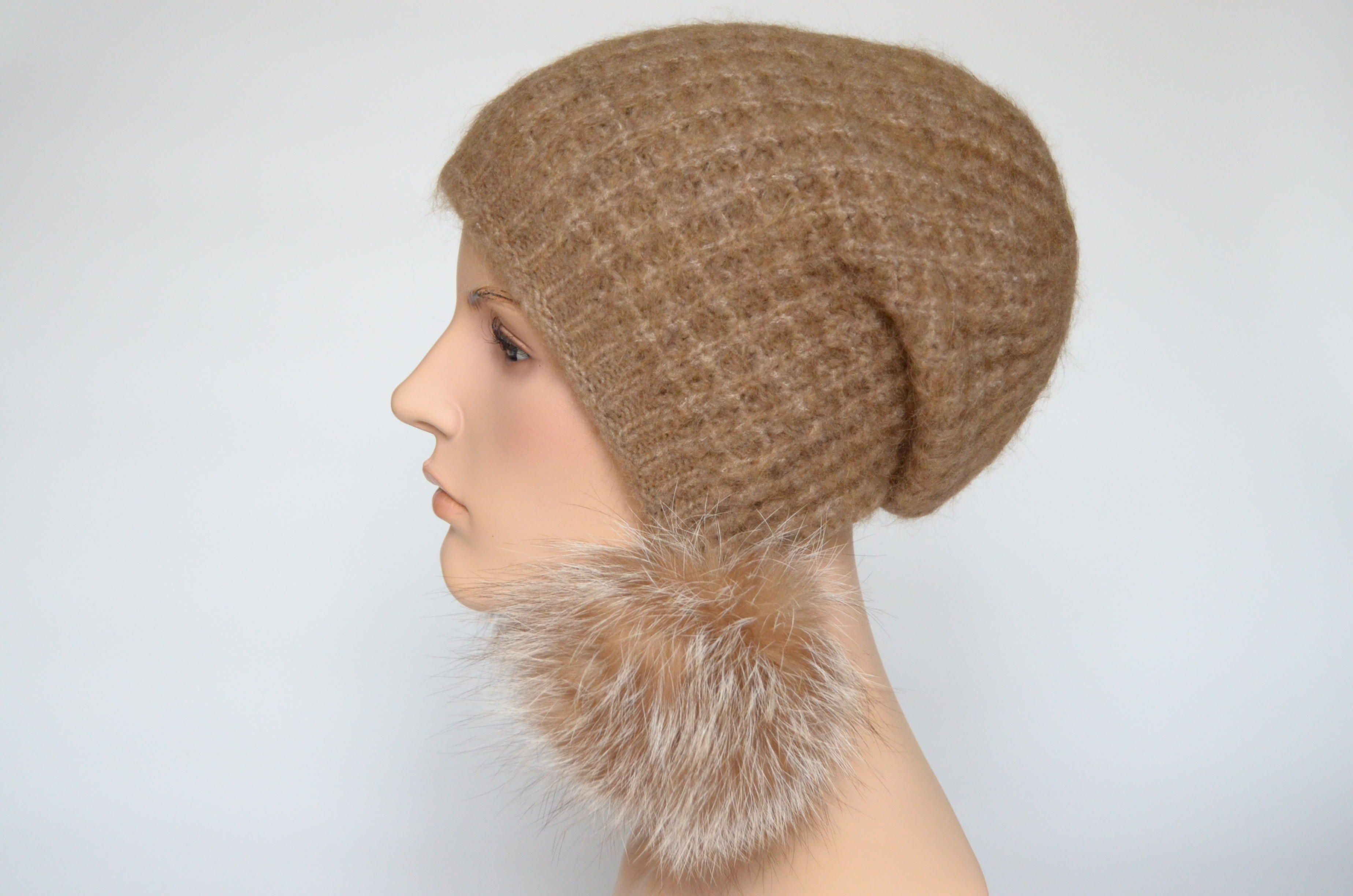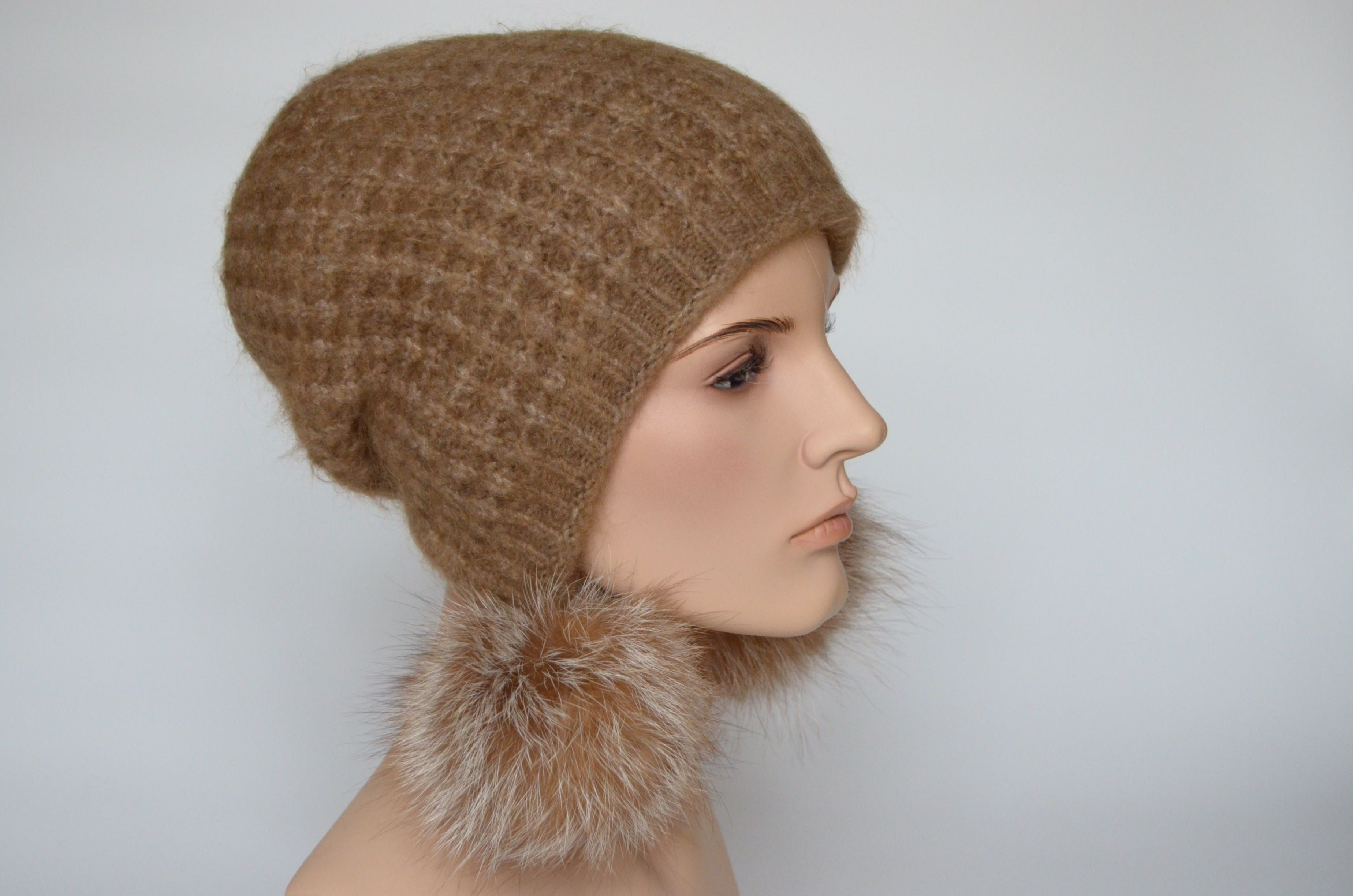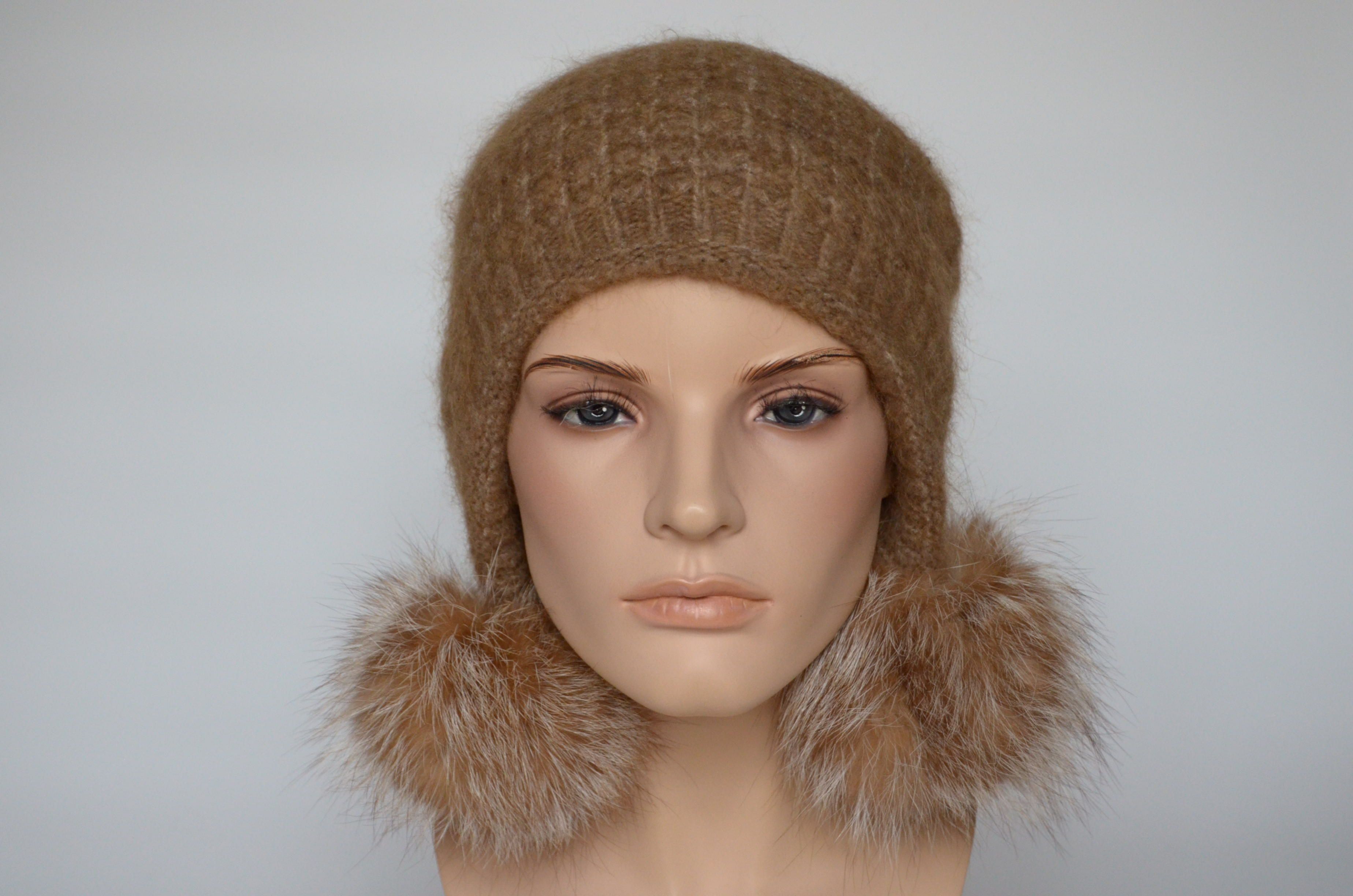 Купить коричневую шапку капор с помпонами для женщин Вы можете в интернет магазине женских головных уборов Италии