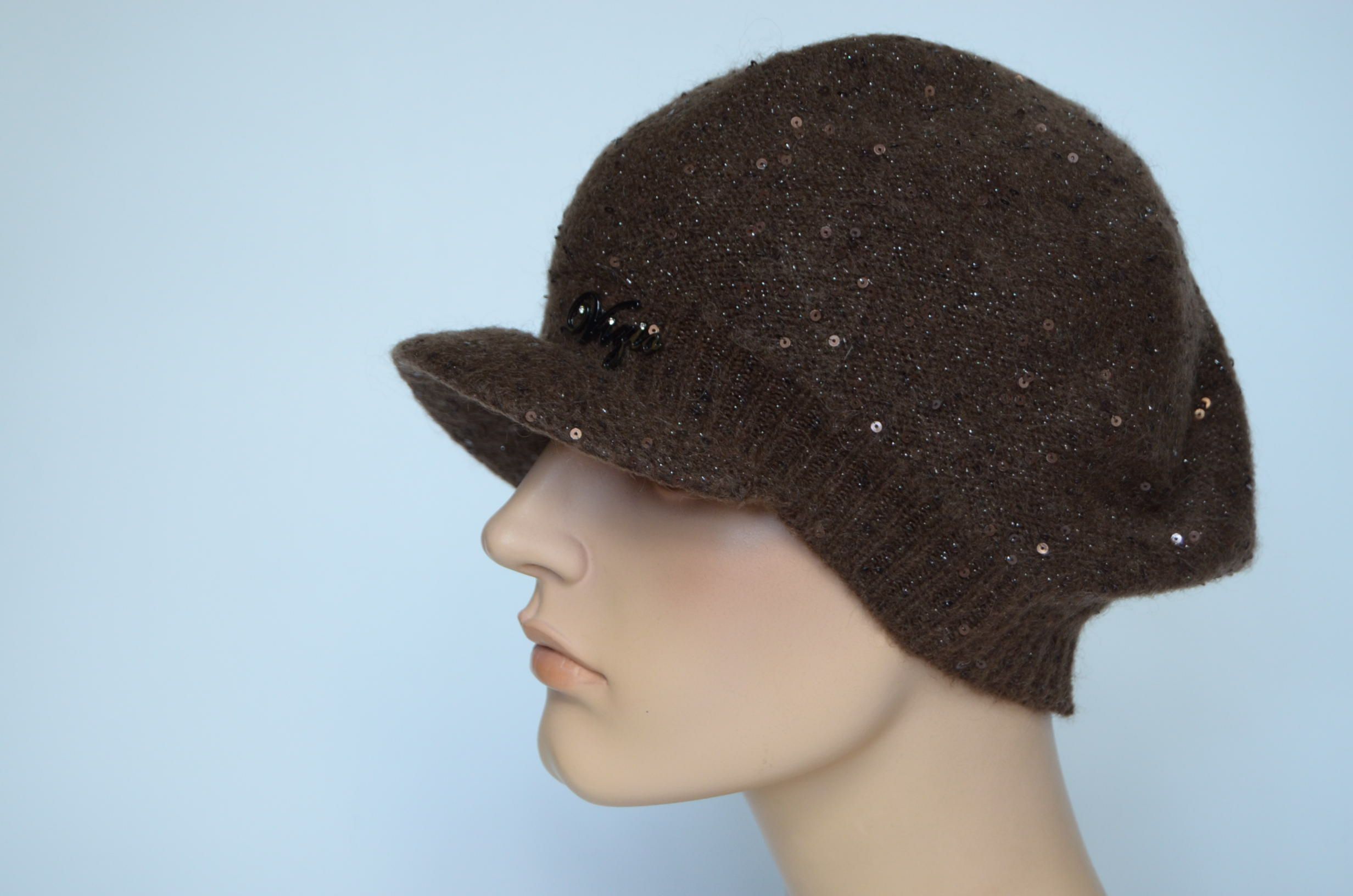 Кепка тонкая вязаная зимняя с пайетками для женщин Vizio 5219 коричневого цвета итальянского производителя Vizio Collezione купить в интернет магазине
