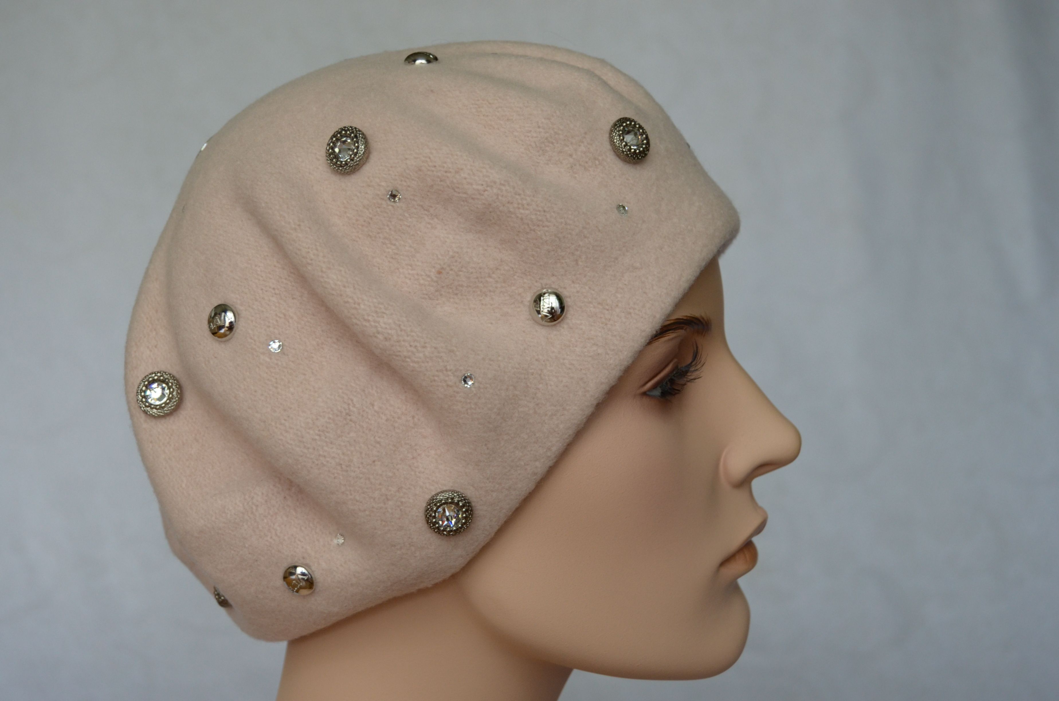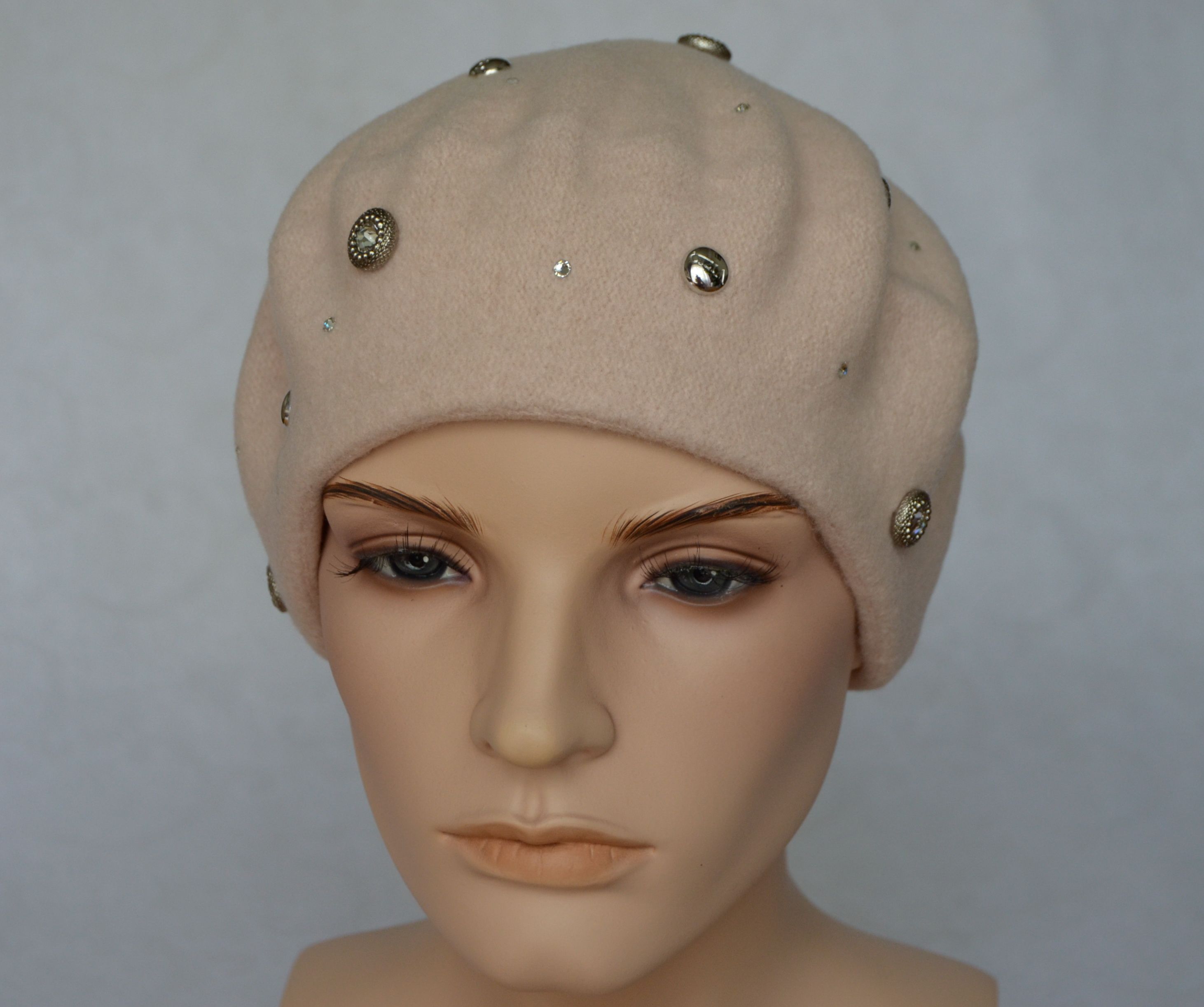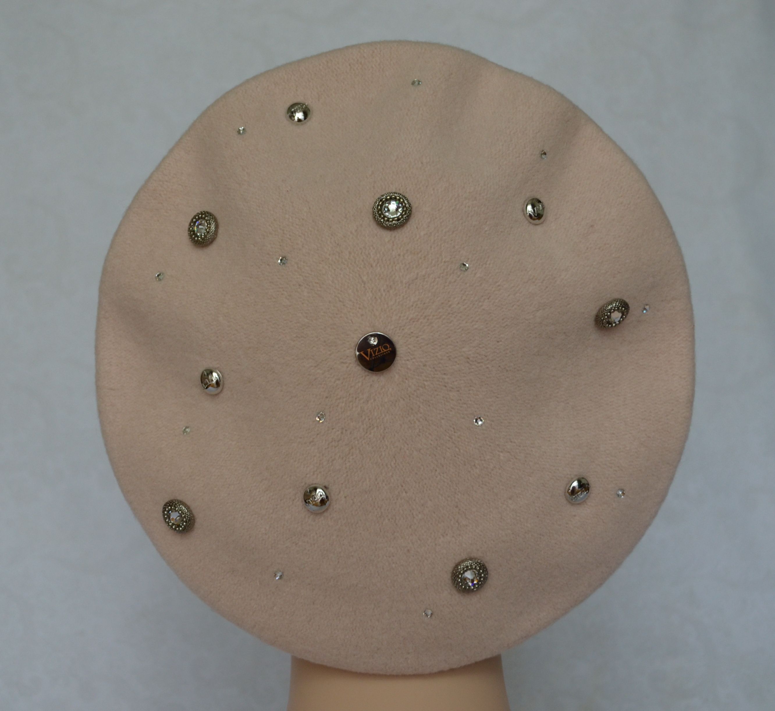 Фетровый берет со стразами сваровски кремового цвета для женщин Vizio Италия 3633 в интернет магазине купить с доставкой по Москве и России