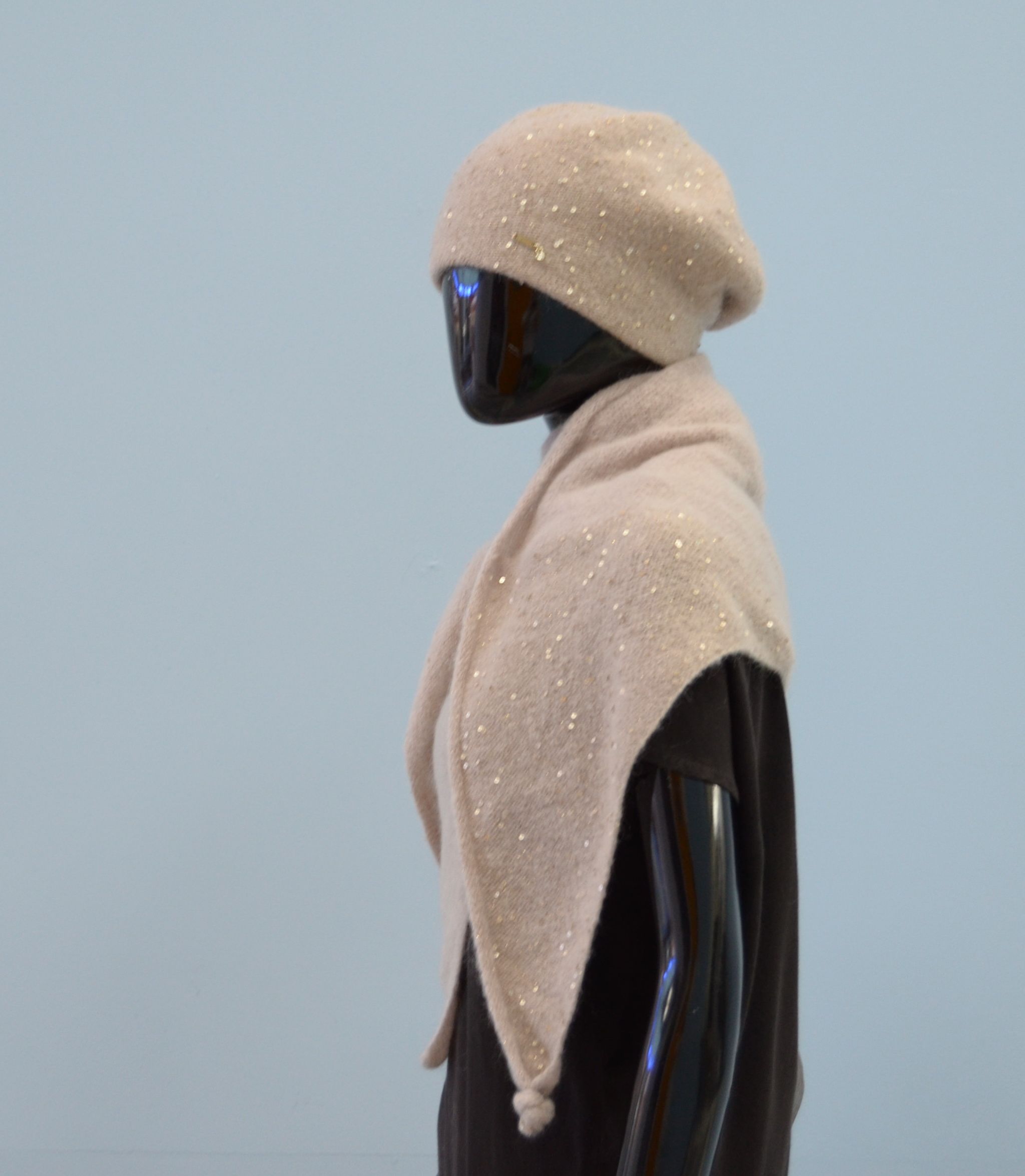 Состав берета: мохер 35 %, полиамид 25 %, шерсть 32 %, пайетки, полиэстер 6 %, эластан 2 %