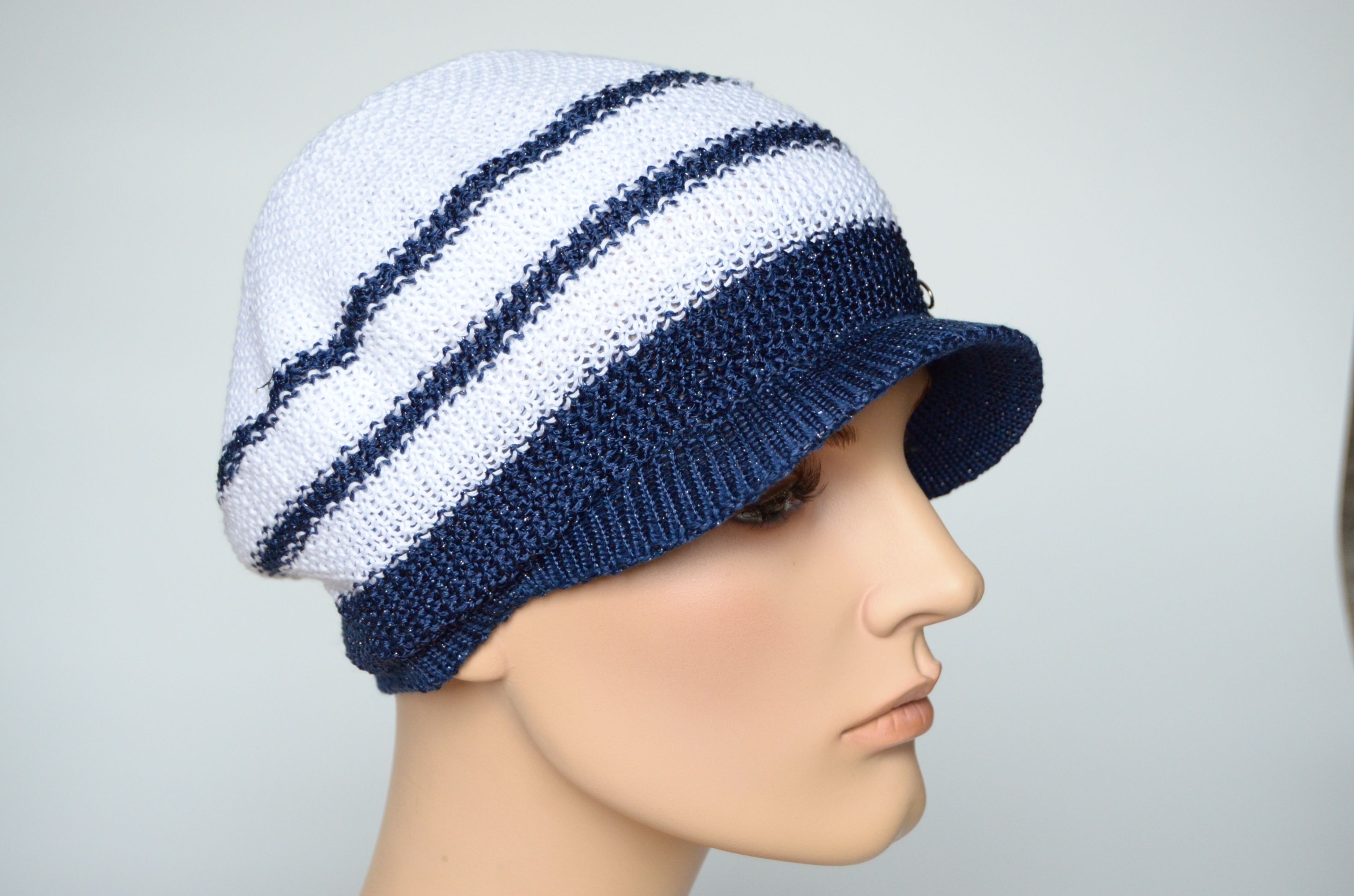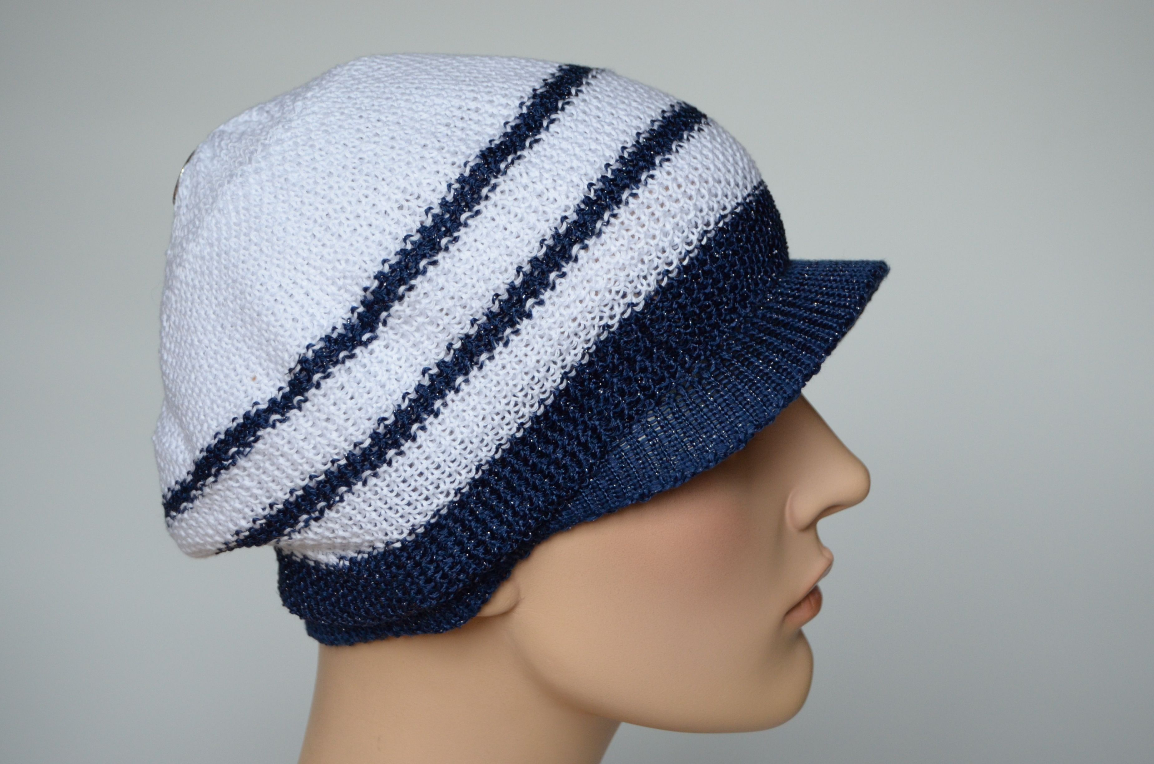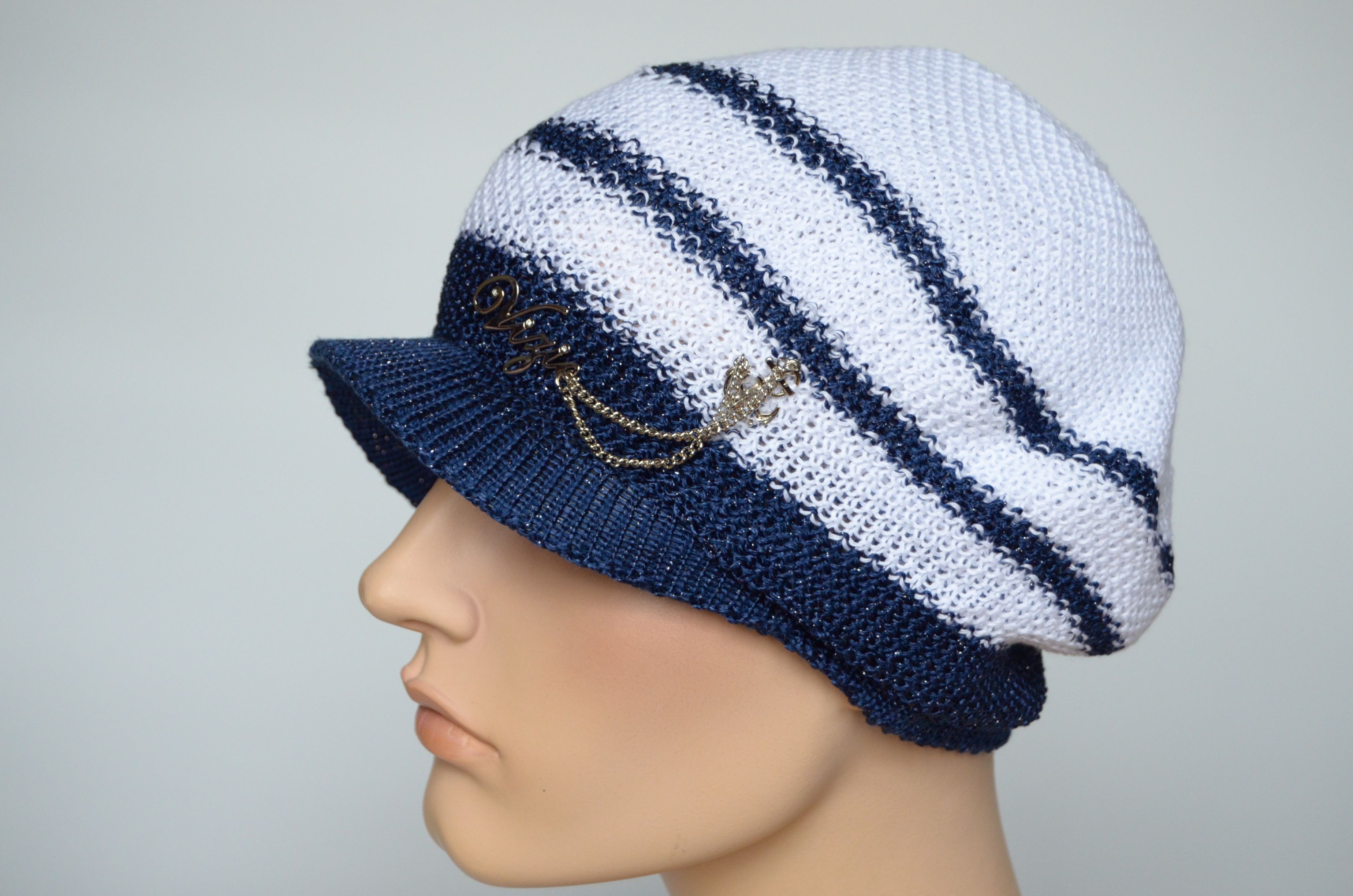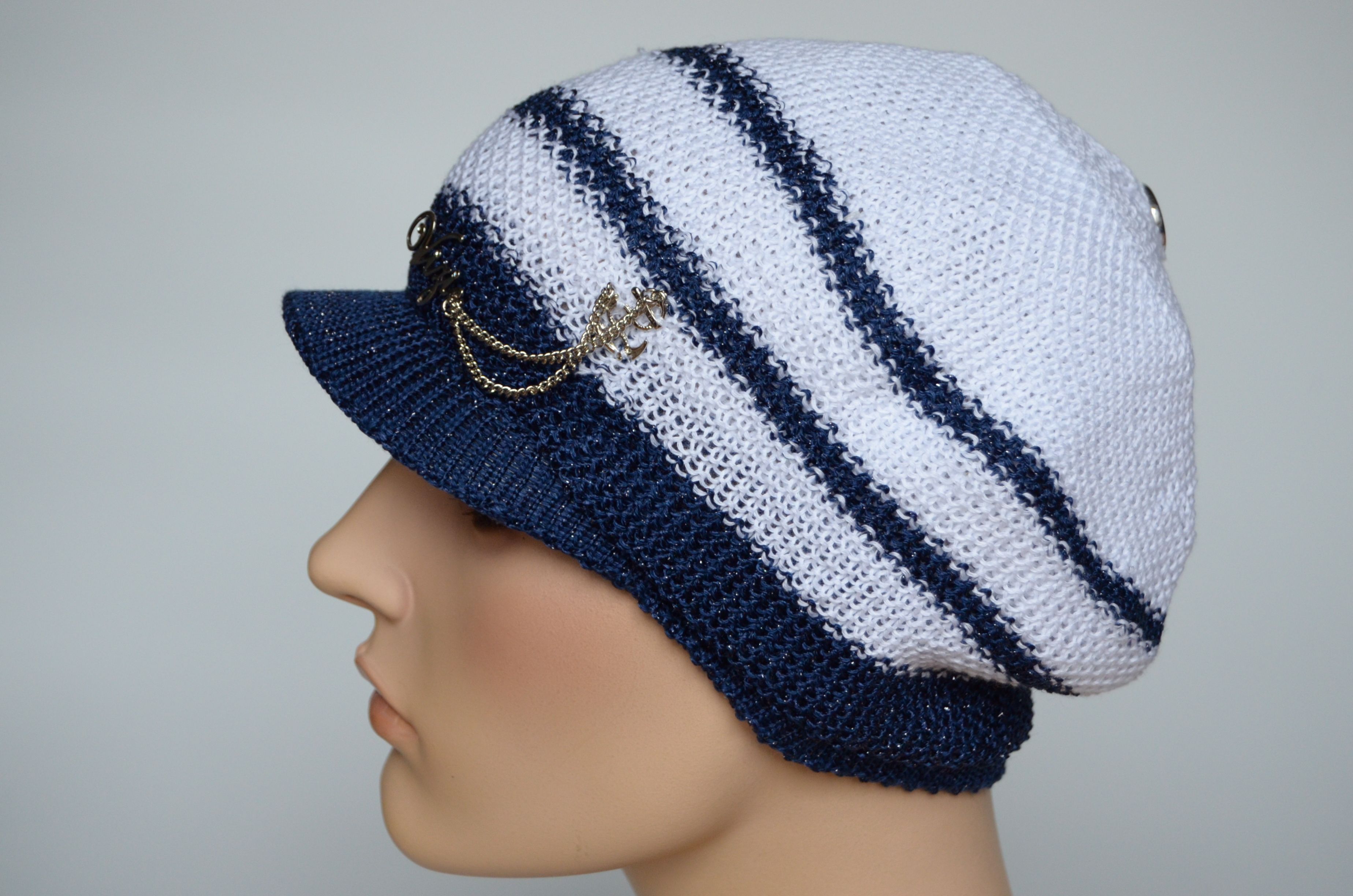 Вязаная летняя кепка Vizio Италия 5038 белая с синим купить в магазине итальянских головных уборов Визио
