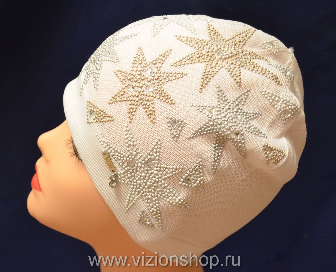 Белая летняя шапка со звездами Vizio Италия 5449 купить в интернет магазине женских шапок и беретов