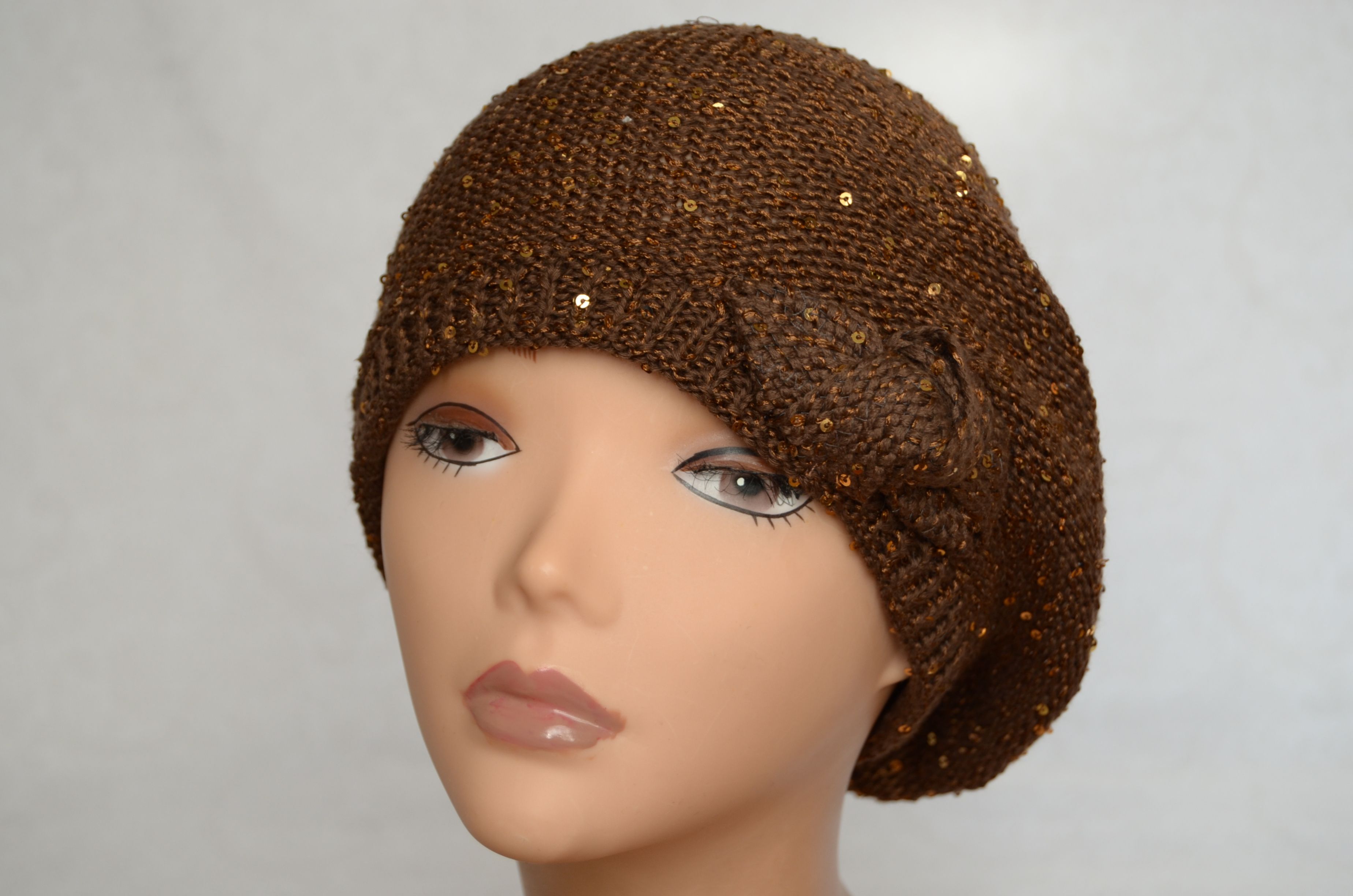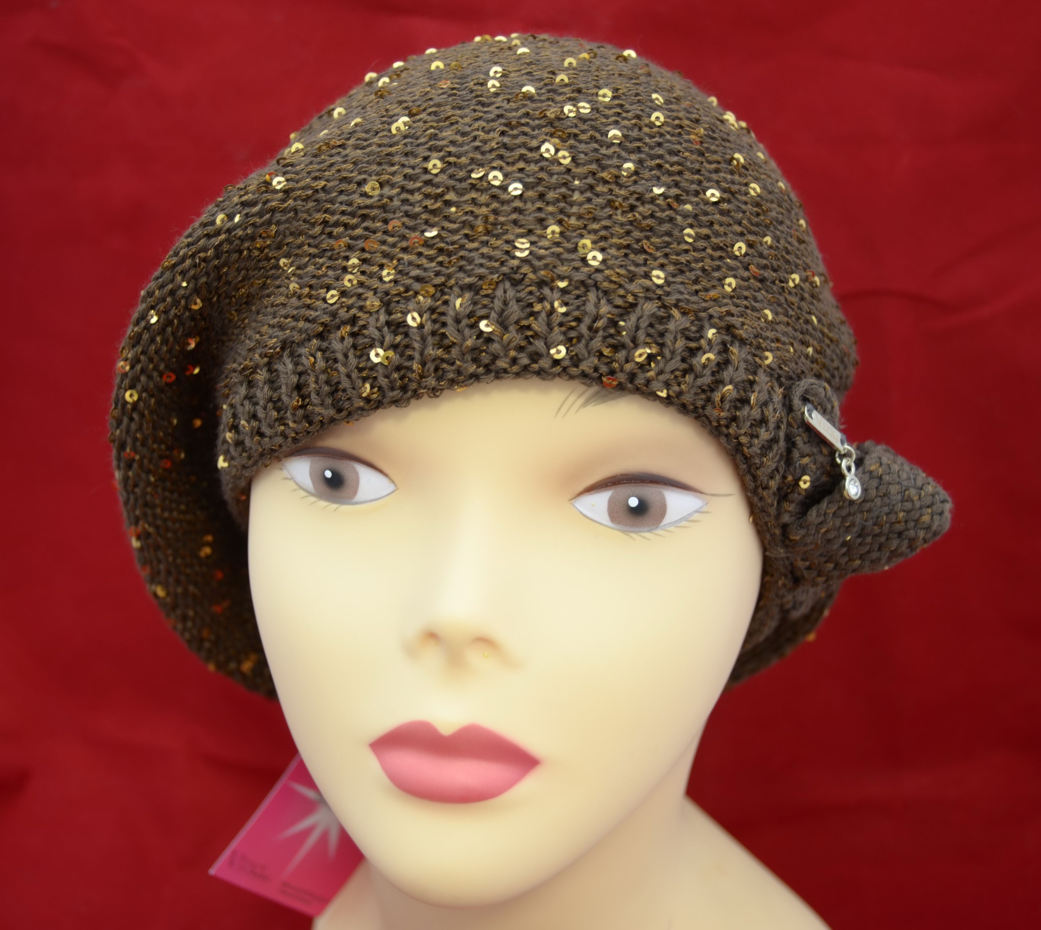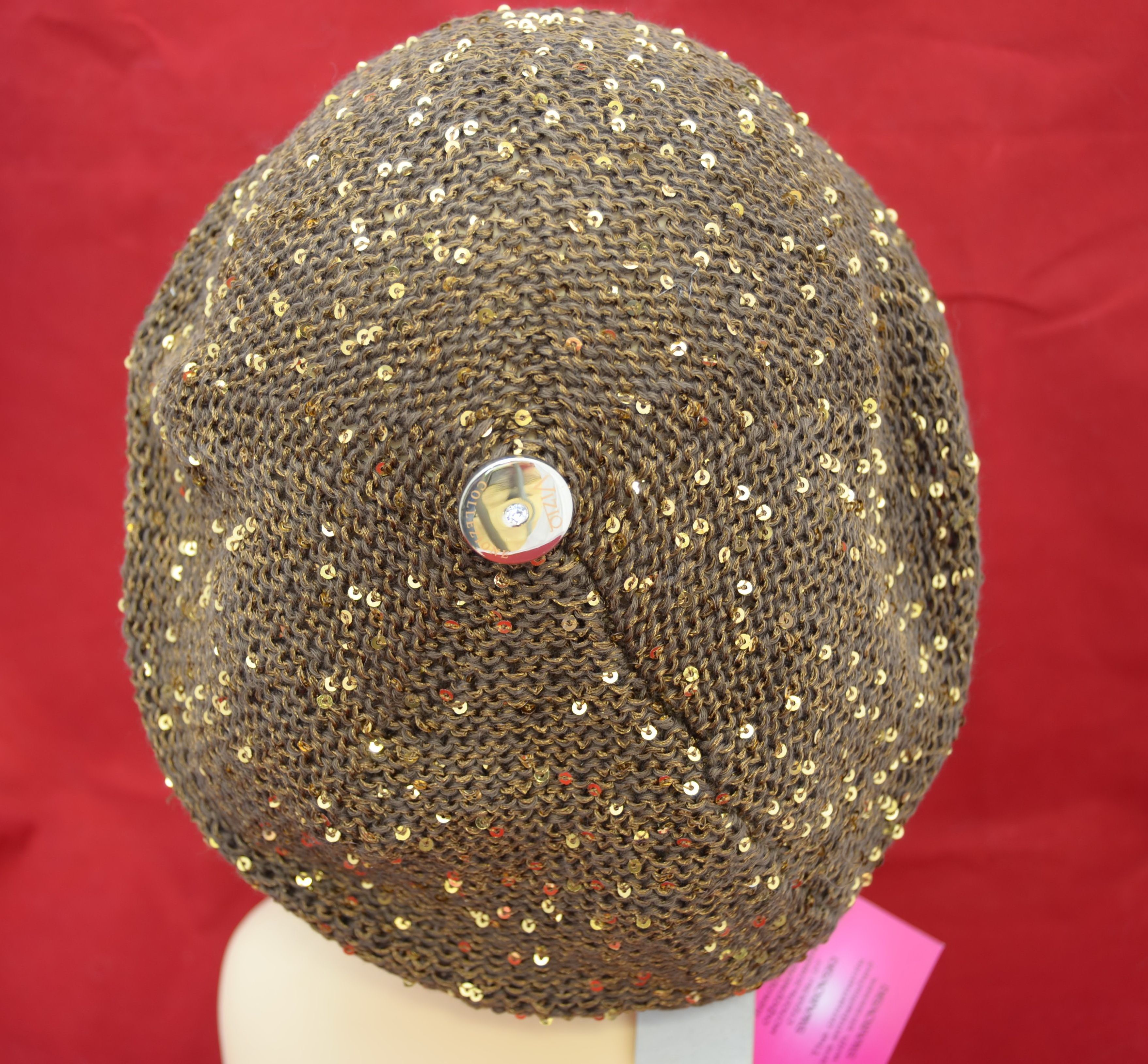 Коричневый летний берет Италия Vizio 5050 вязаный берет с пайетками для женщин купить в магазине итальянских головных уборов бренда Vizio Collezione
