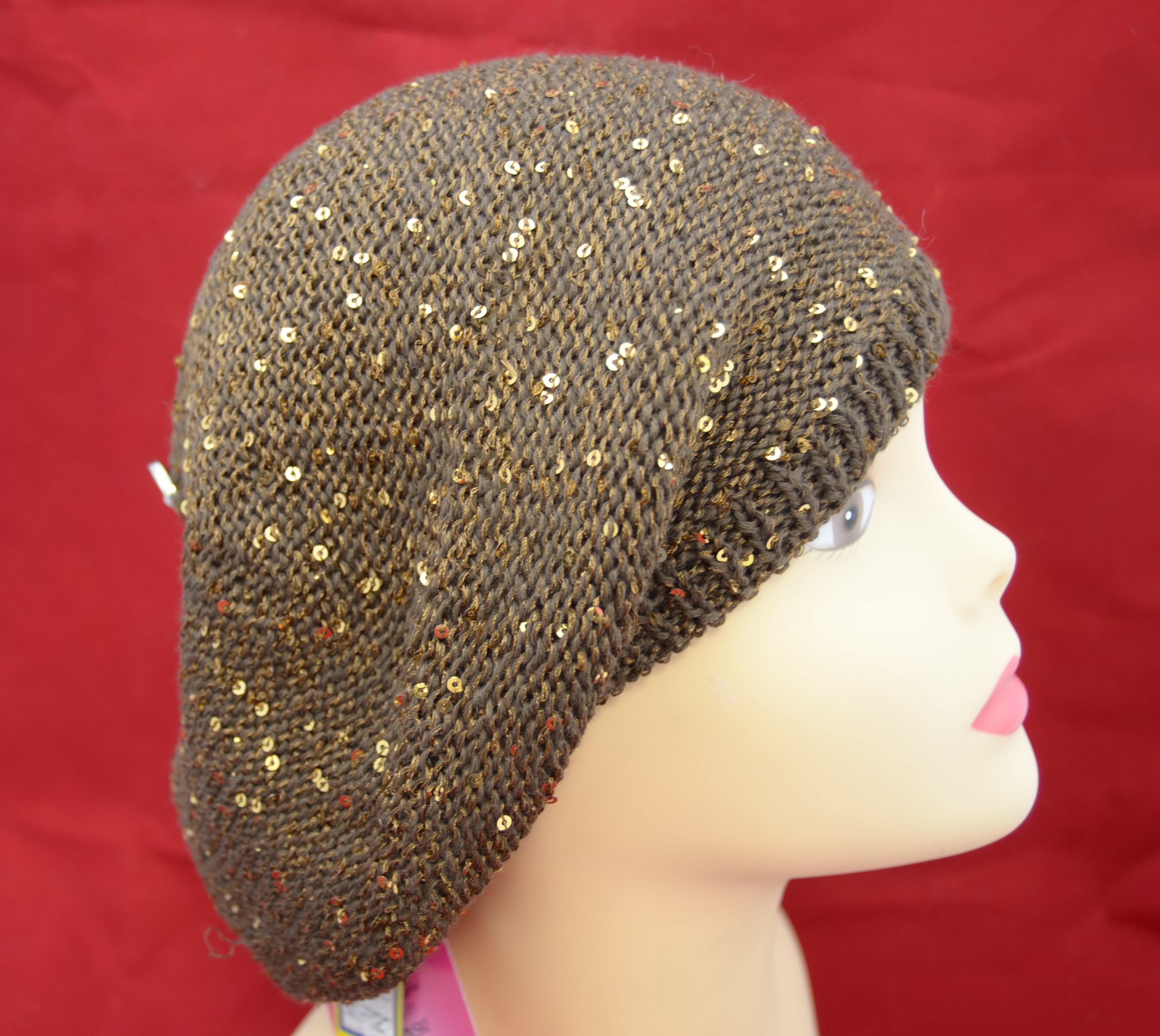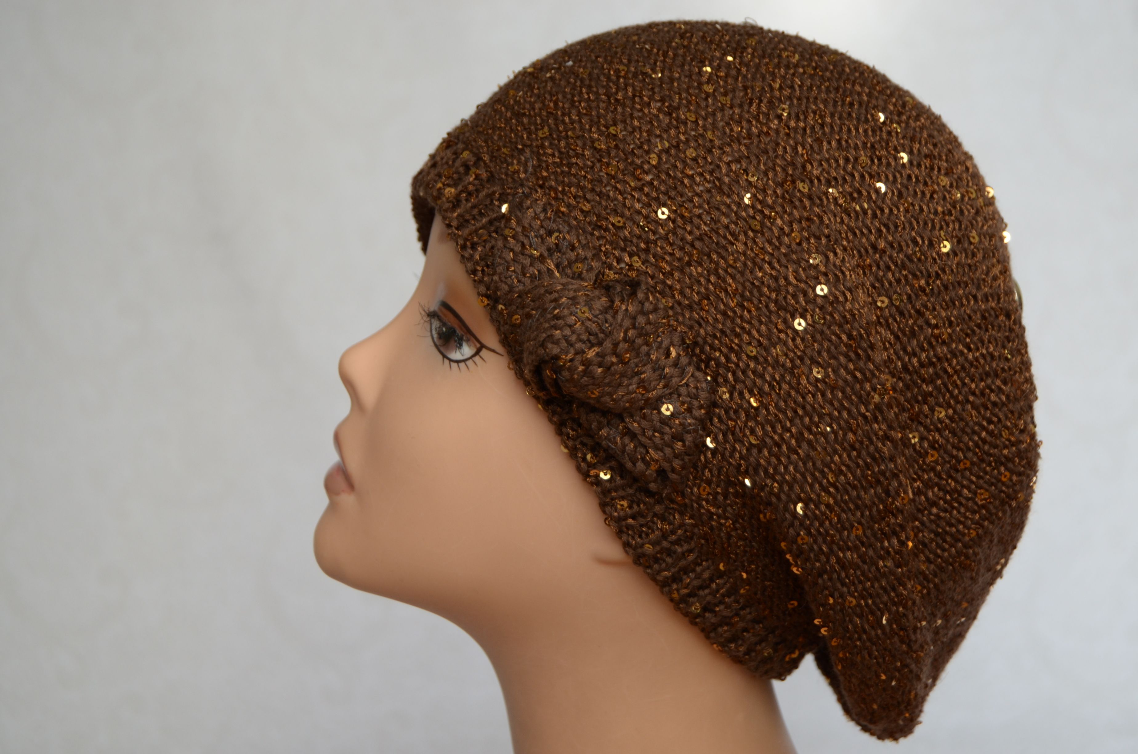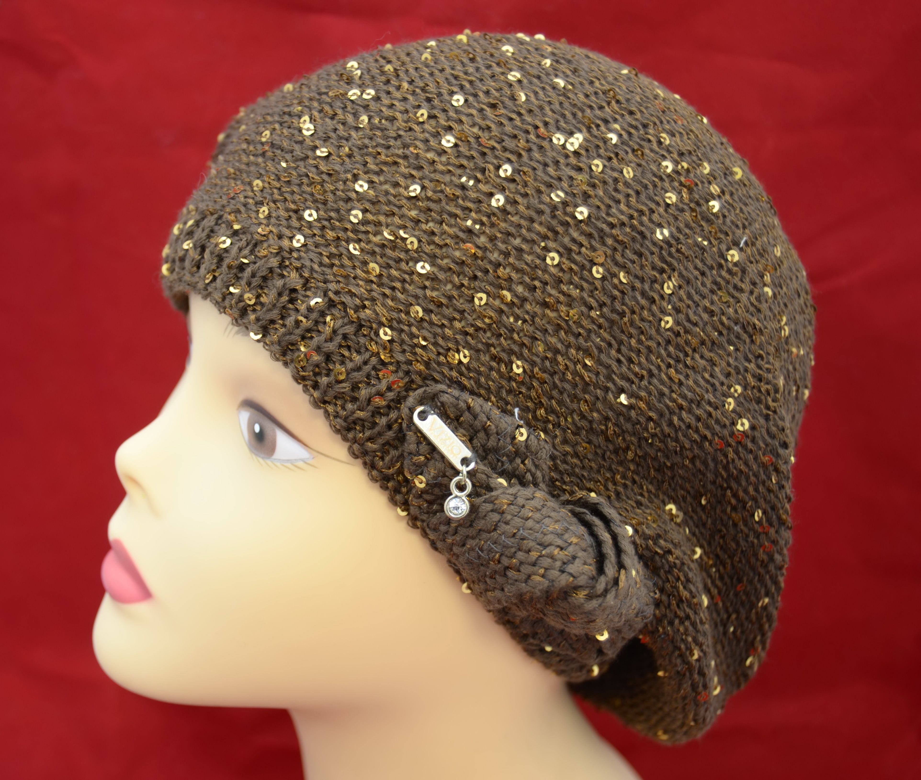 Коричневый летний берет Италия Vizio 5050 вязаный берет с пайетками для женщин купить в магазине итальянских головных уборов бренда Vizio Collezione