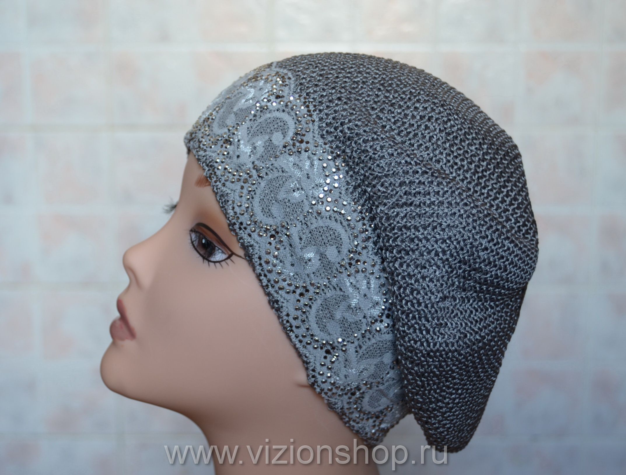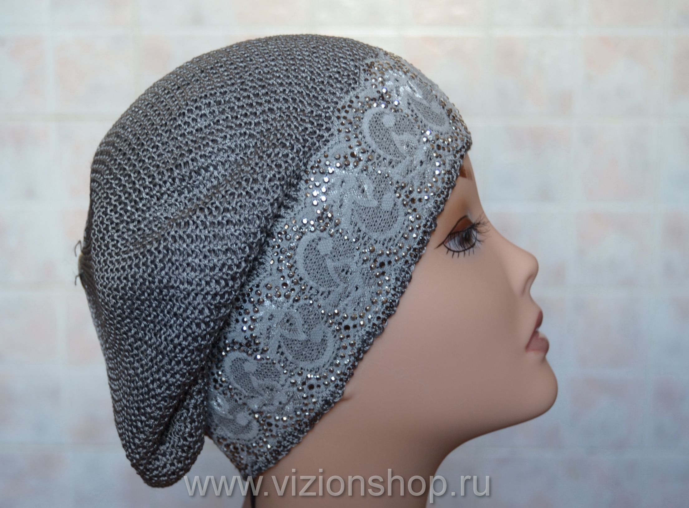 Vizio Визио 4813 женский вязаный берет с кружевом серый купить в интернет магазине итальянских головных уборов