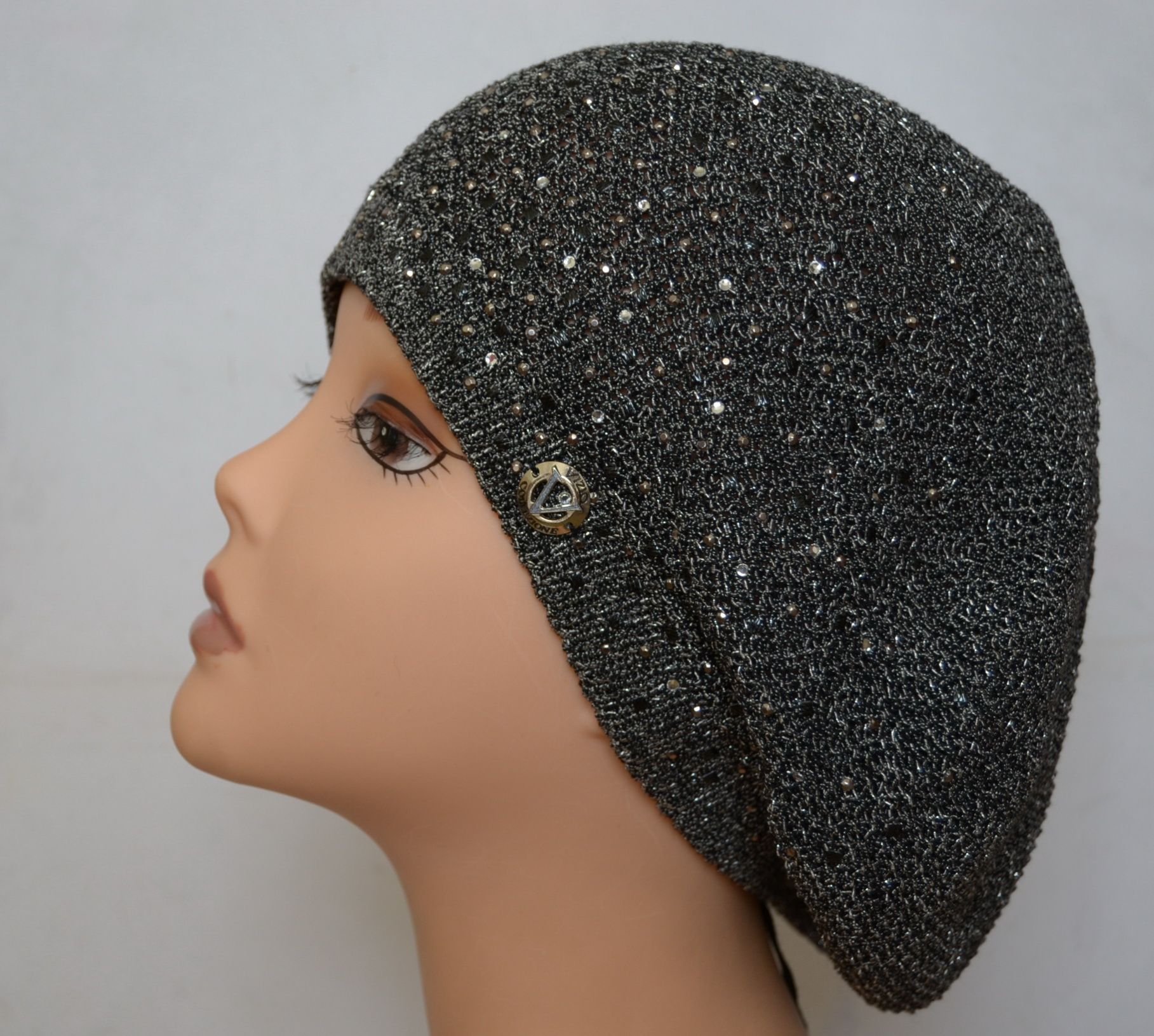 Серый летний берет Визио Италия A3BO вязаный из хлопка серого цвета от итальянского дизайнера вязаных головных уборов Vizio Collezione в магазине модных шапок и беретов из Италии