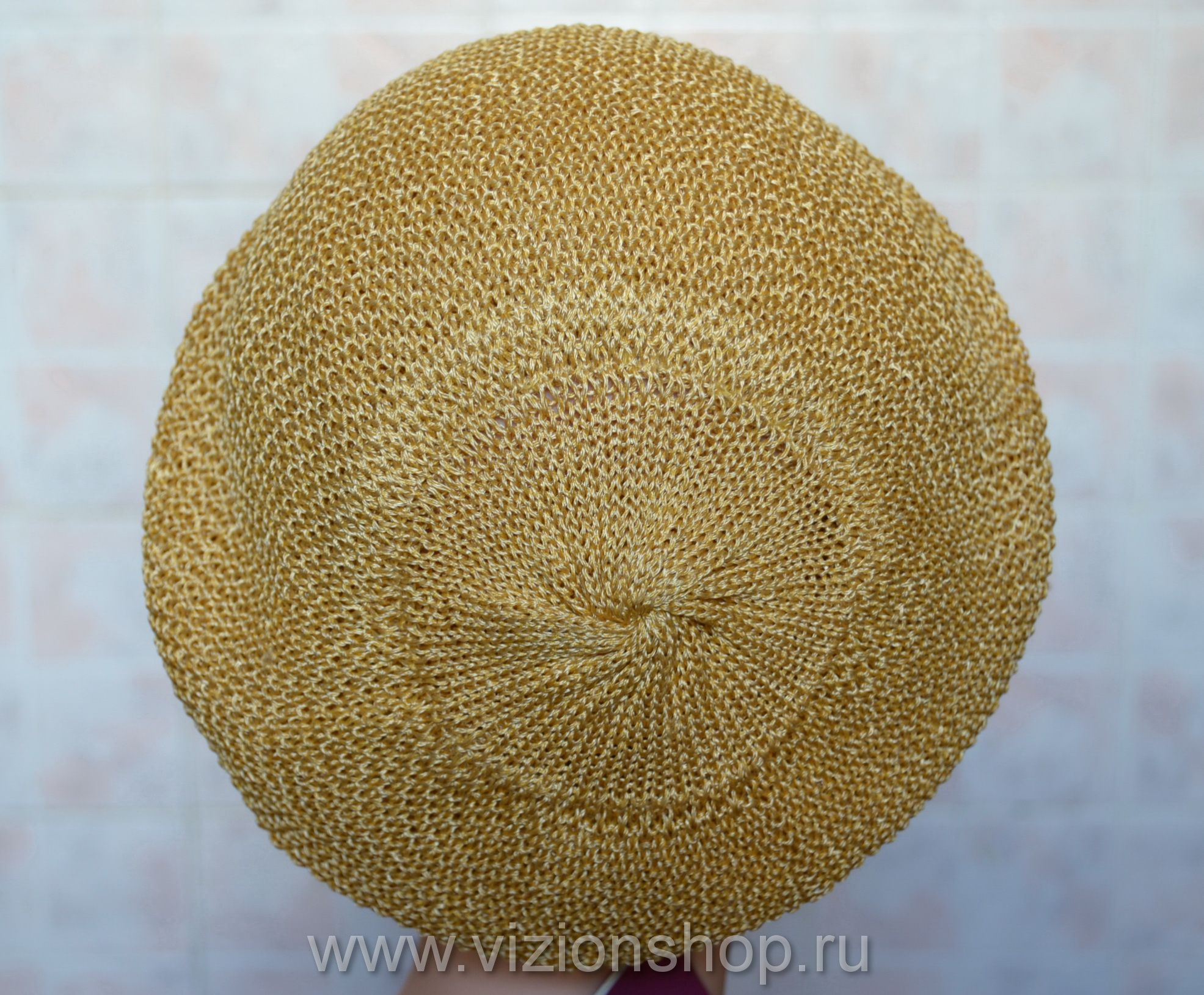 Летний вязаный берет Vizio италия 4813 песочный из коллекции вязаных головных уборов лето